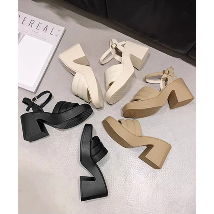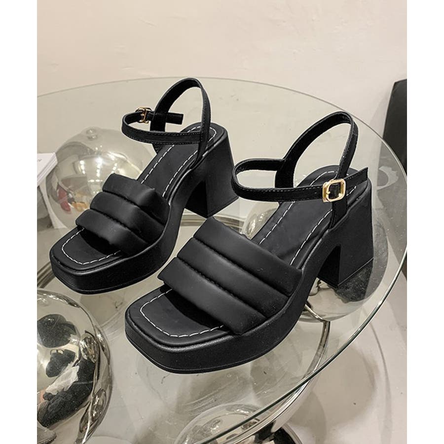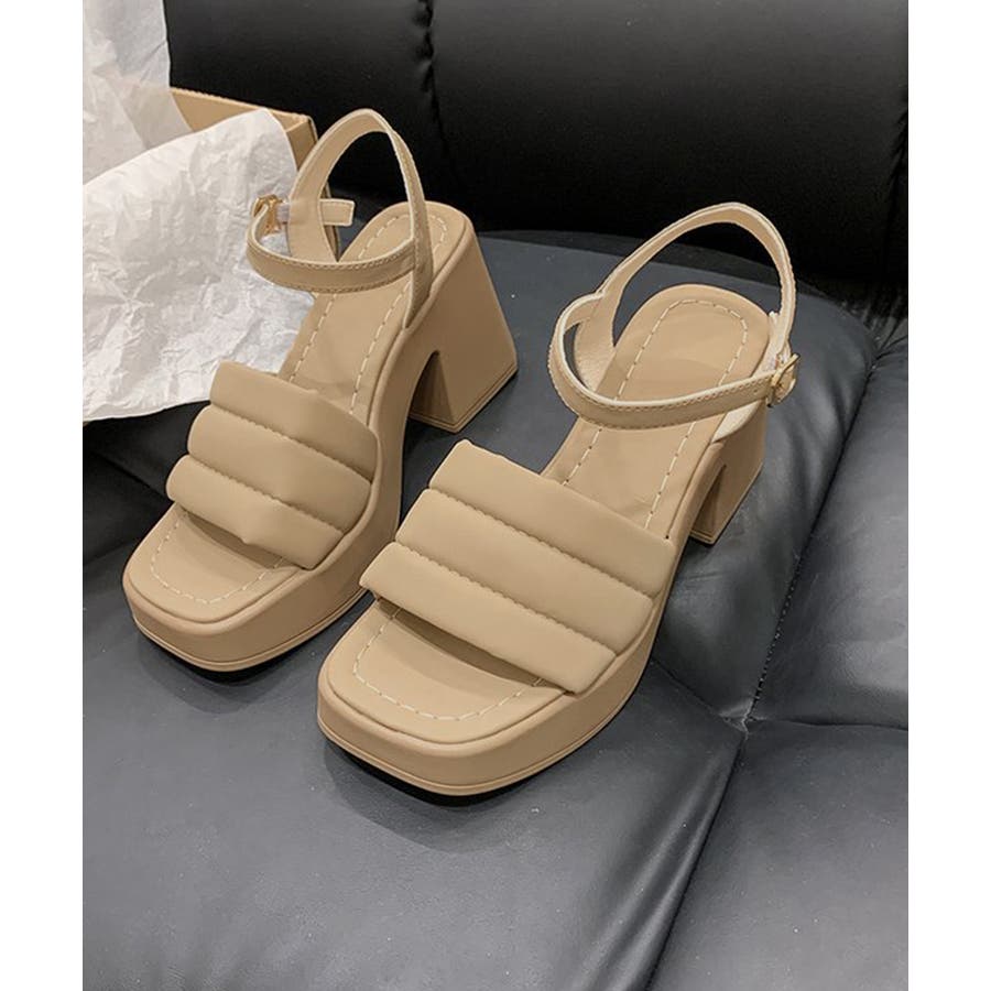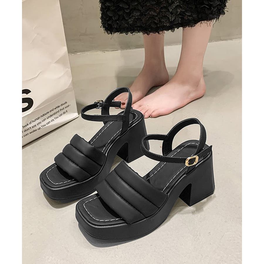 カジュアルはもちろん、きれいめなコーディネートにも馴染むシンプルなスクエアトゥハイヒールサンダル