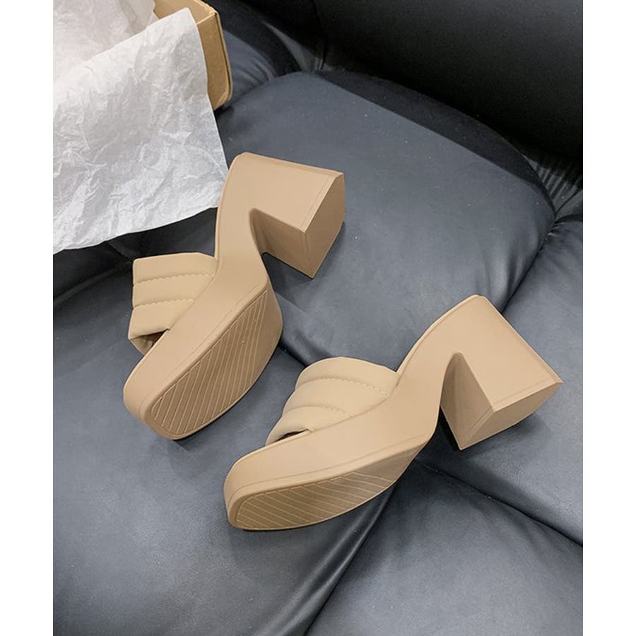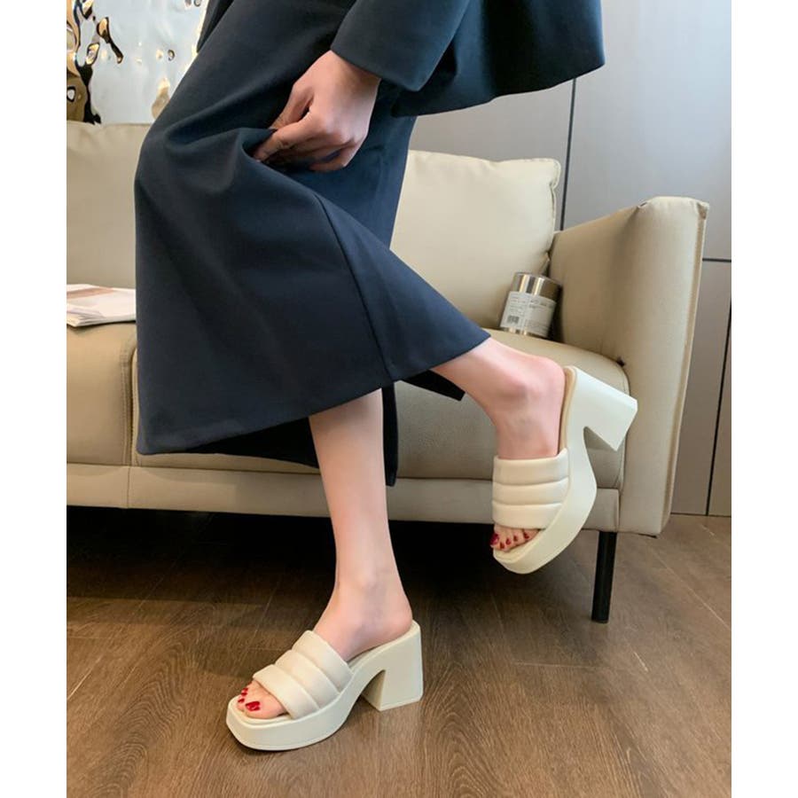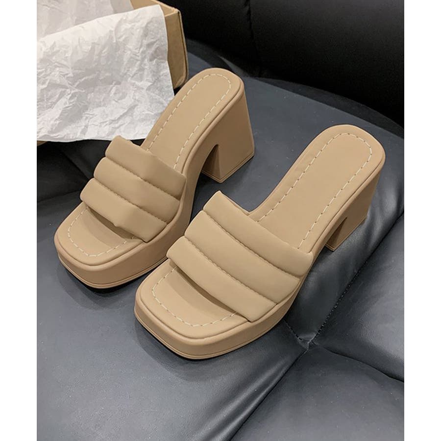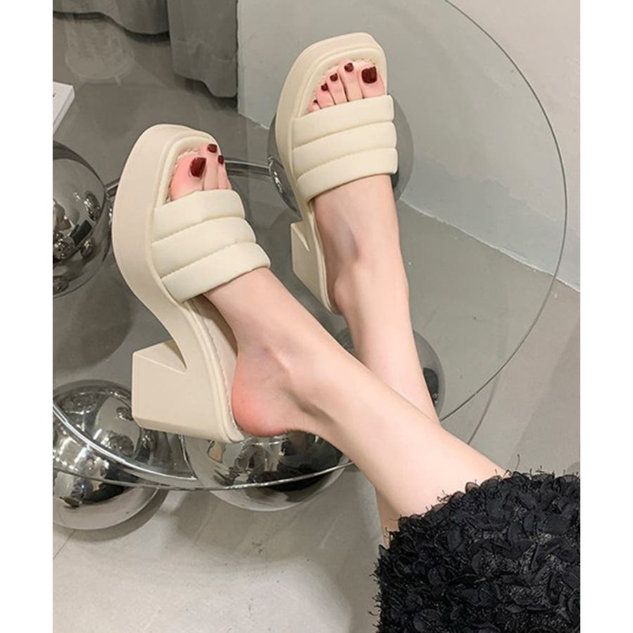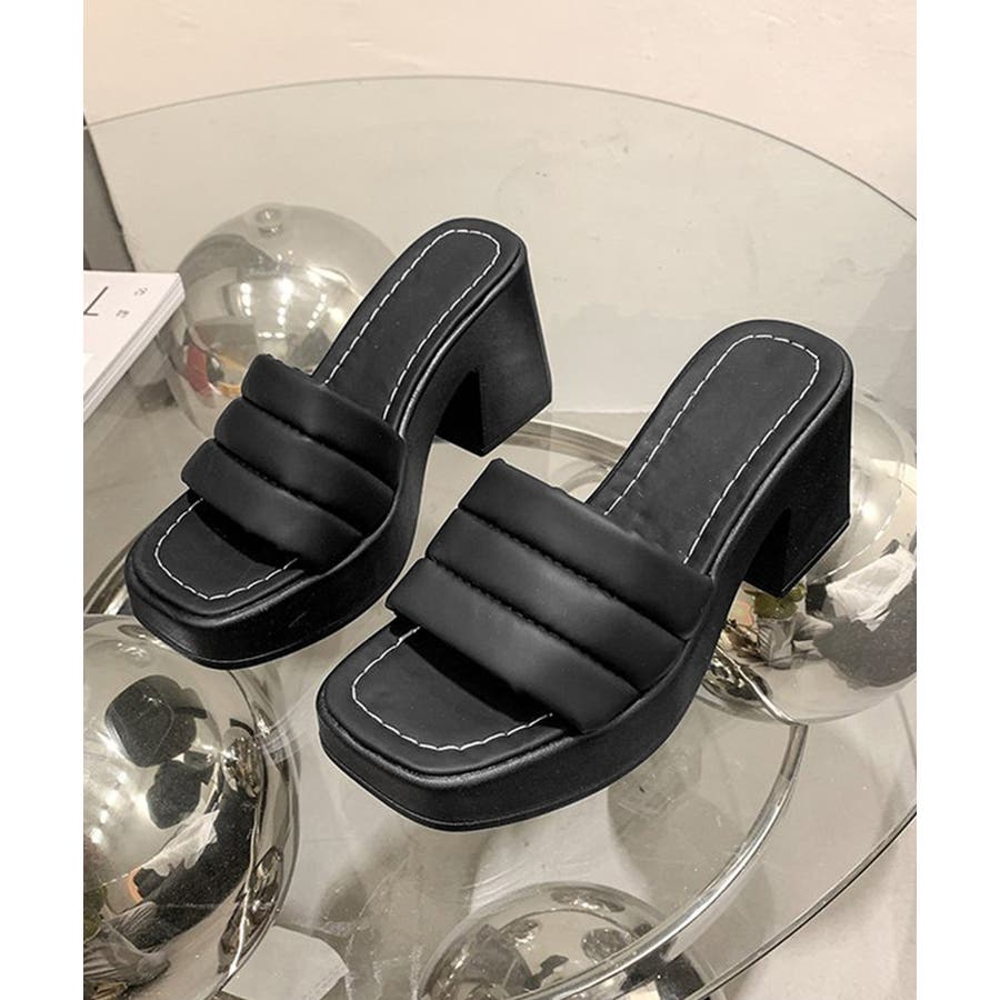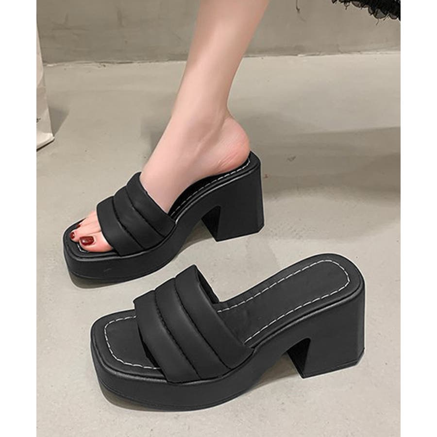 ミュール厚底サンダルスクエアトゥ 韓国風