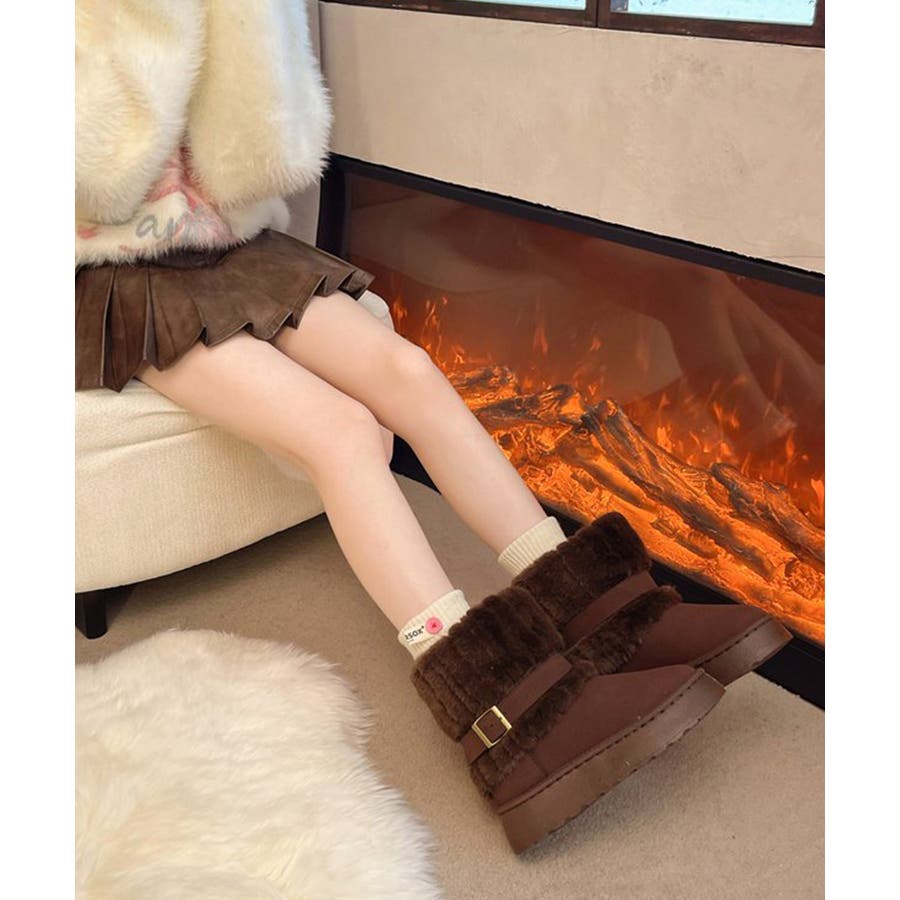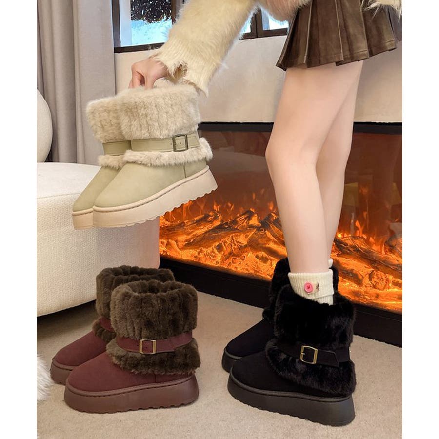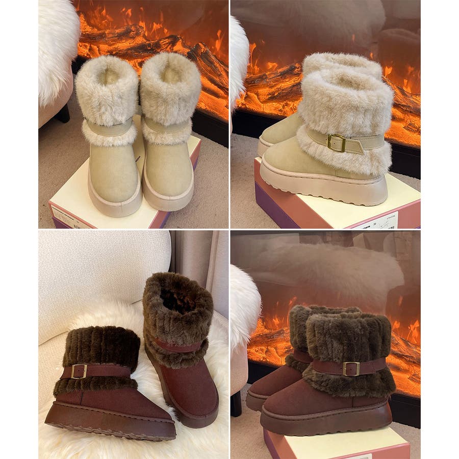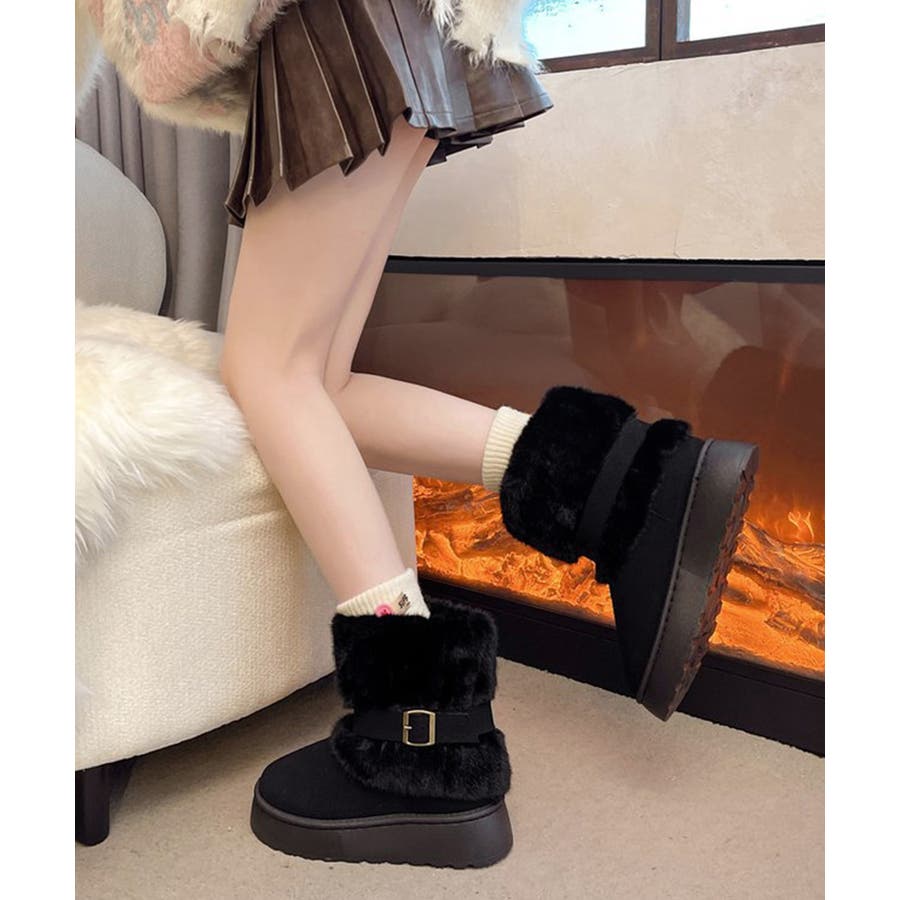 厚底ムートンブーツベルト付き裏起毛ブーツ