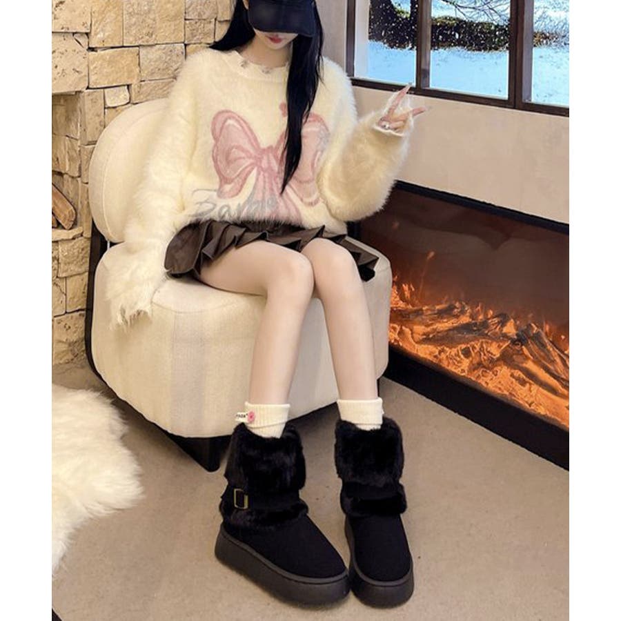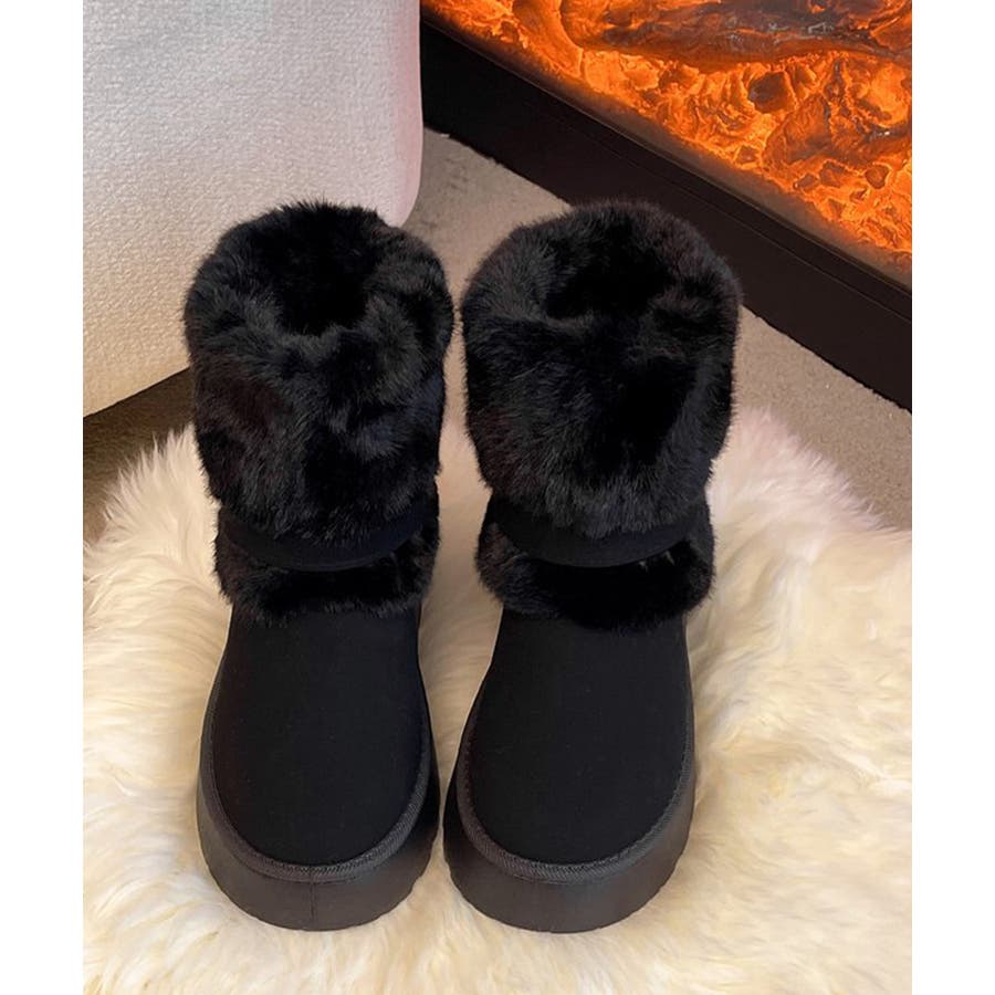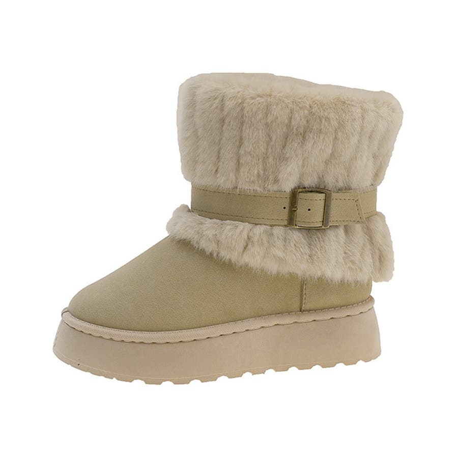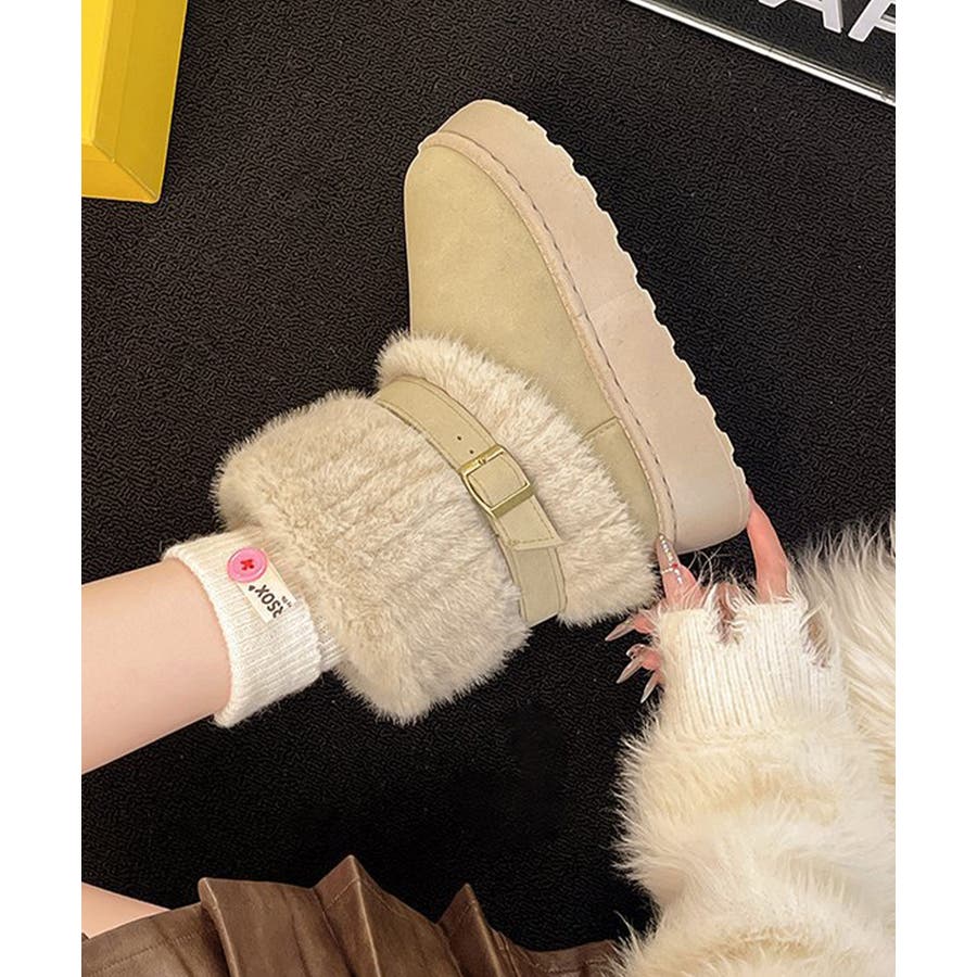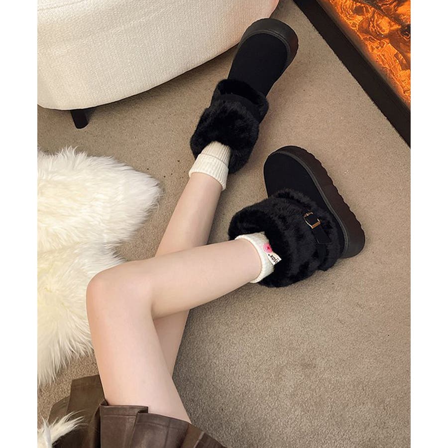 厚底ムートンブーツベルト付き裏起毛ブーツ