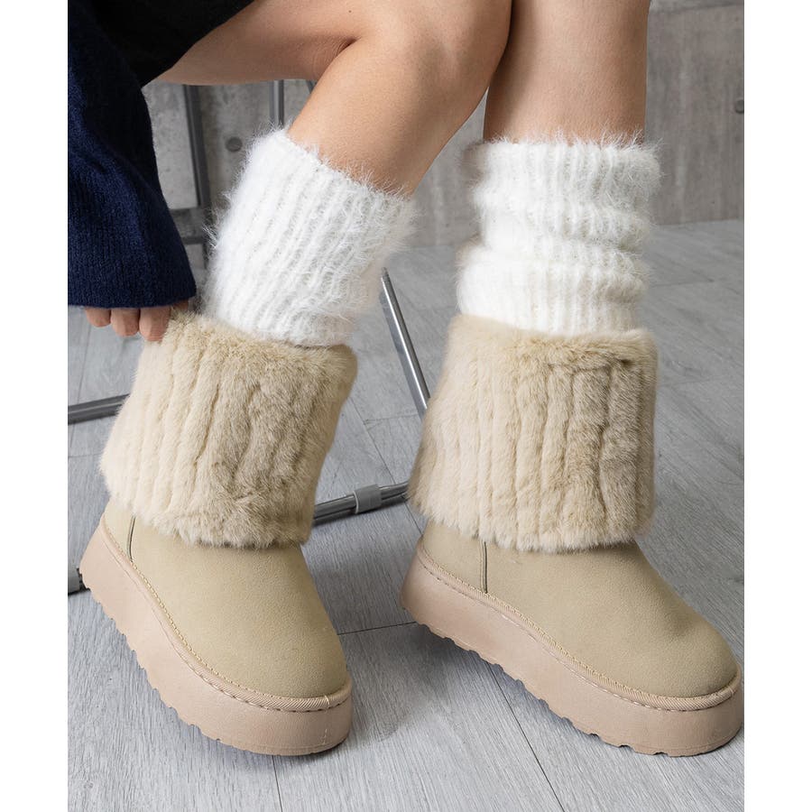 ふわふわのファーが贅沢にあしらわれた、あたたかみのあるムートンブーツ。