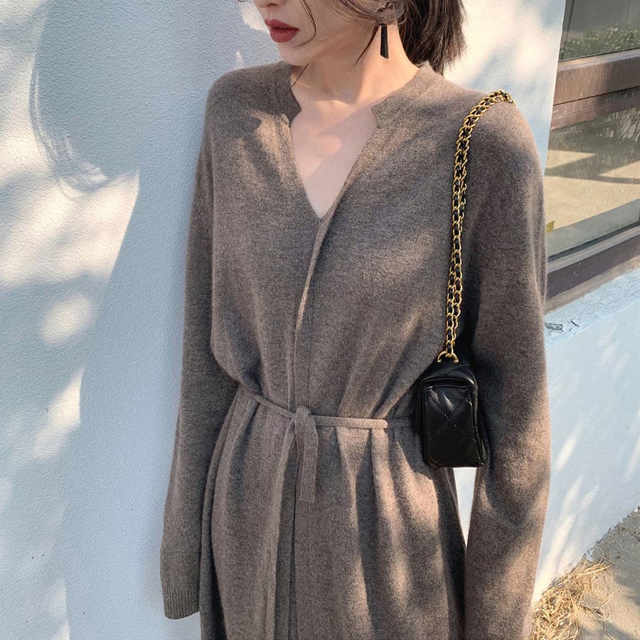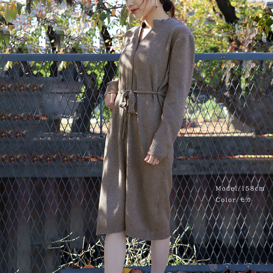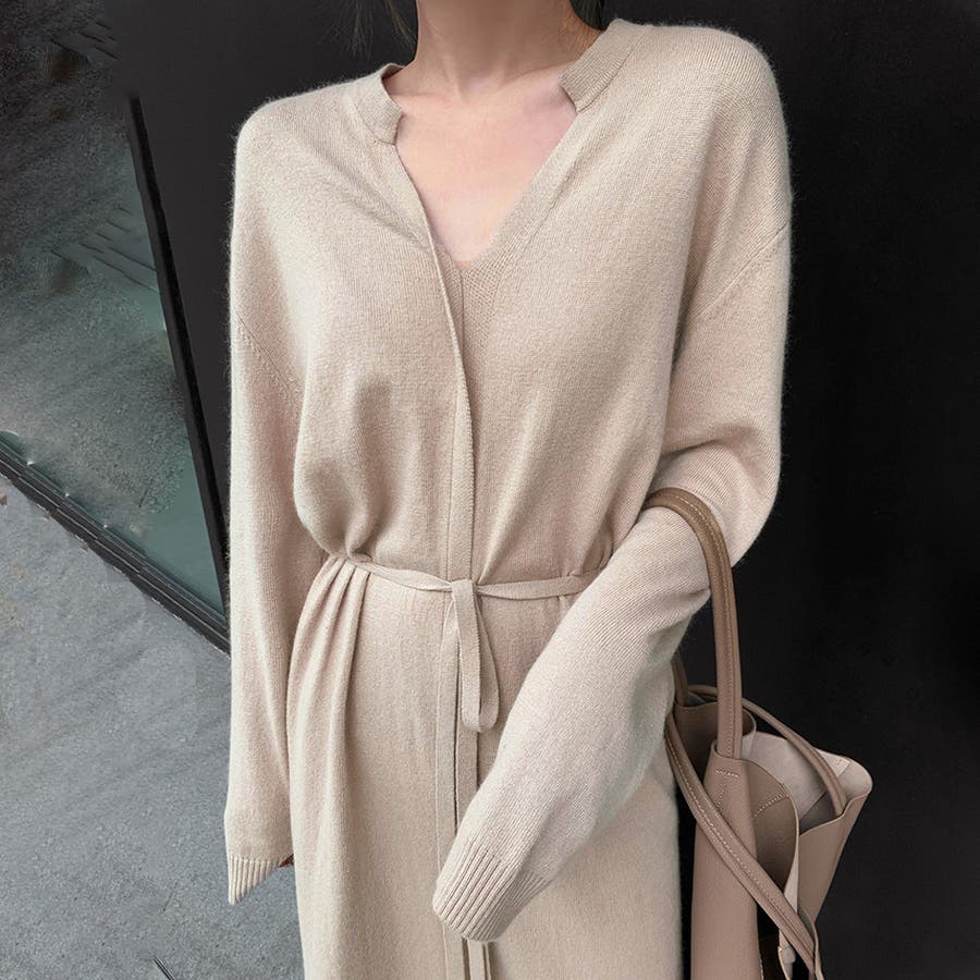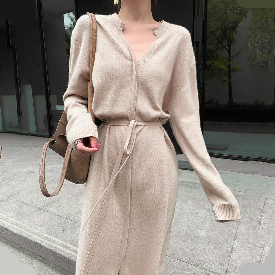 キーネック ニットワンピース レディース