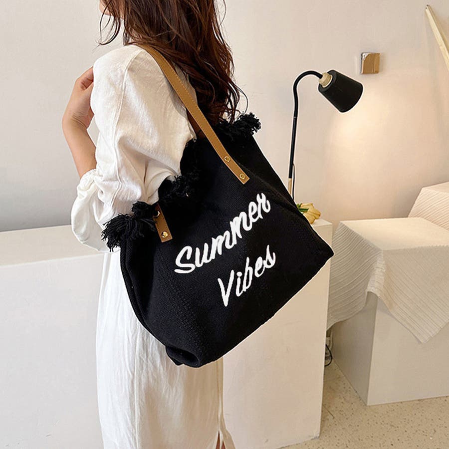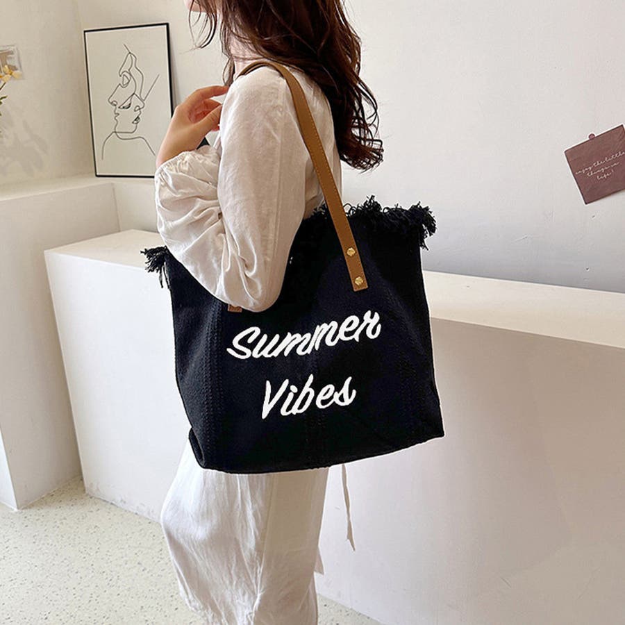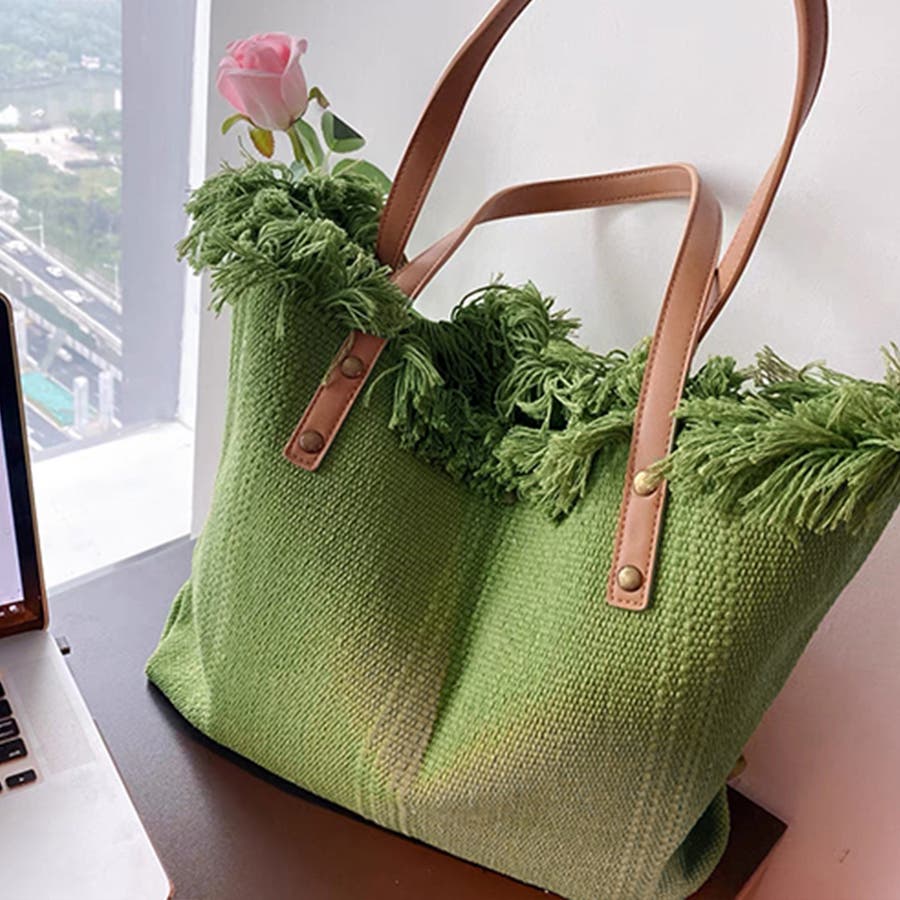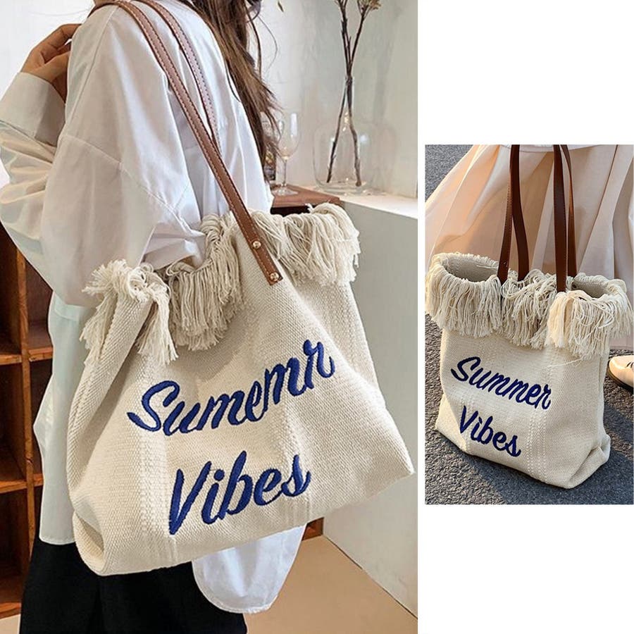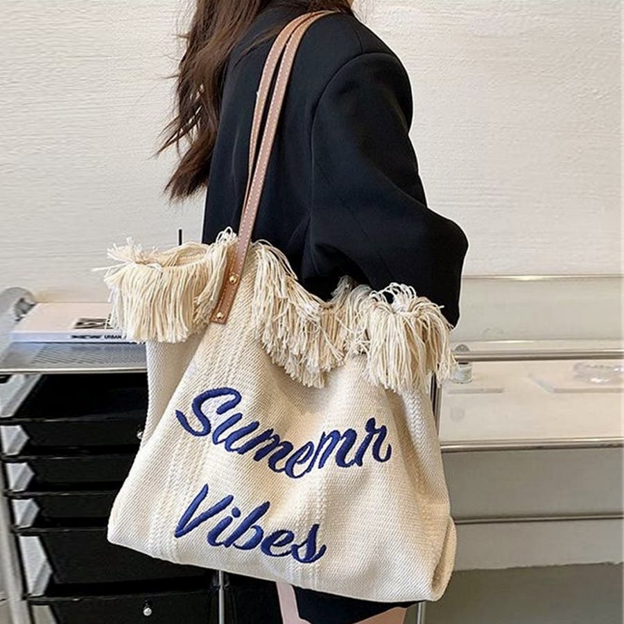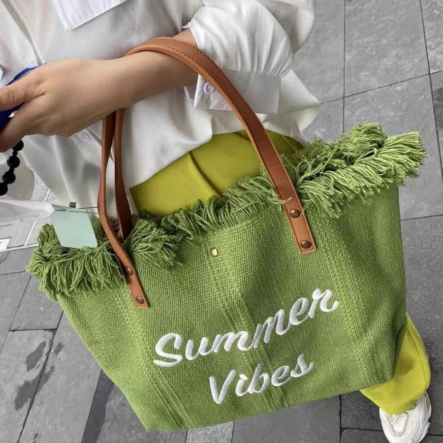 フリンジ キャンバストートバッグ 大容量