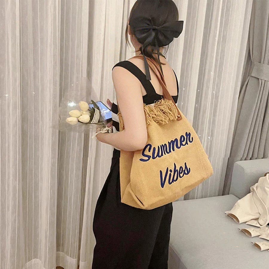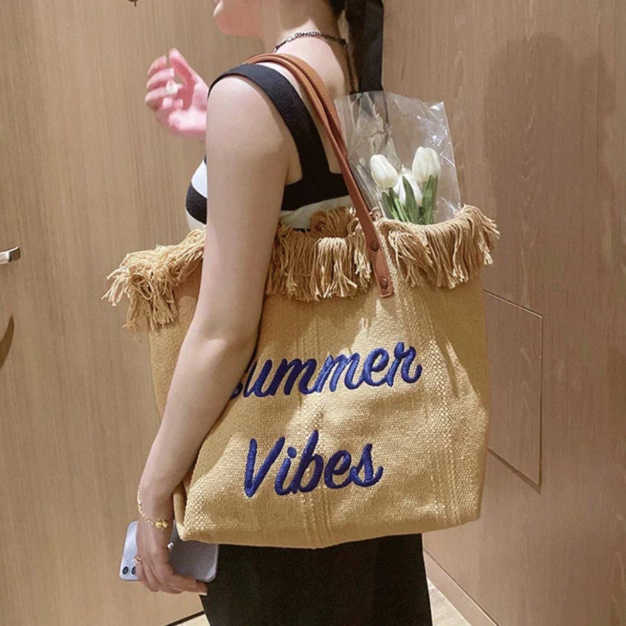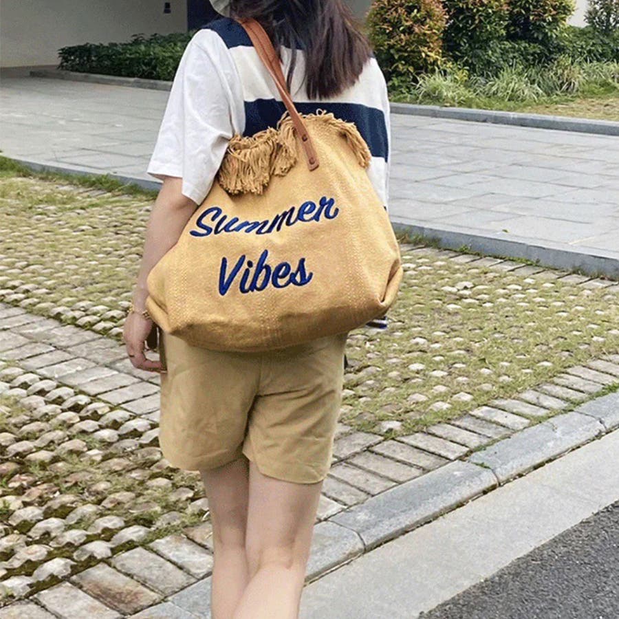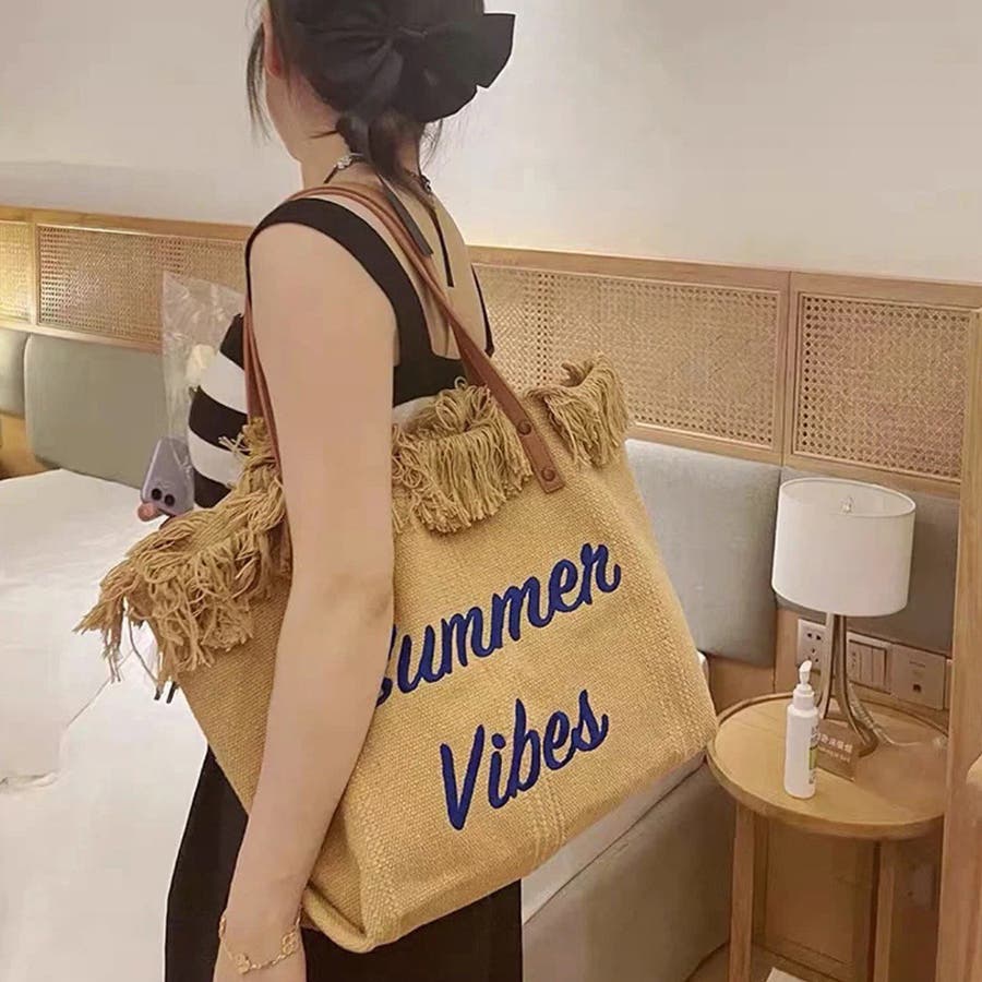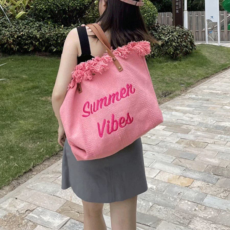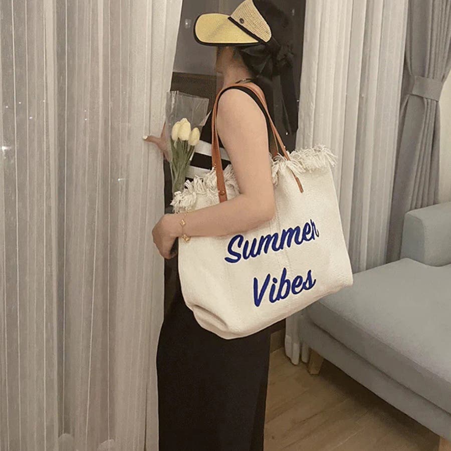フリンジ キャンバストートバッグ 大容量