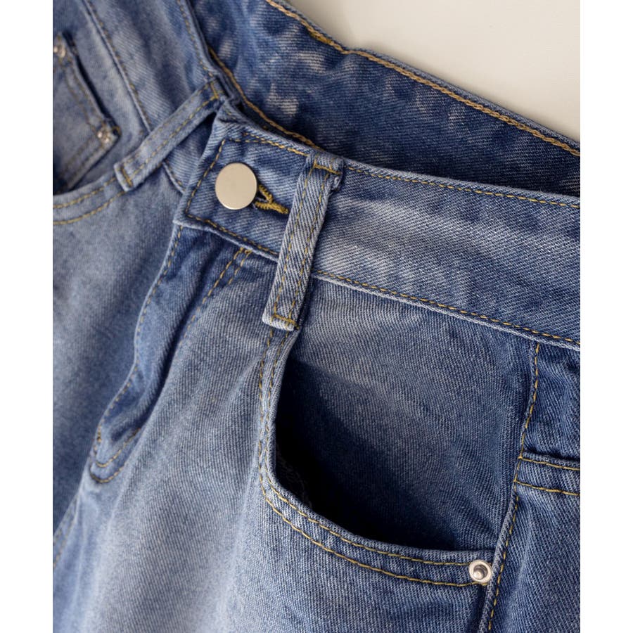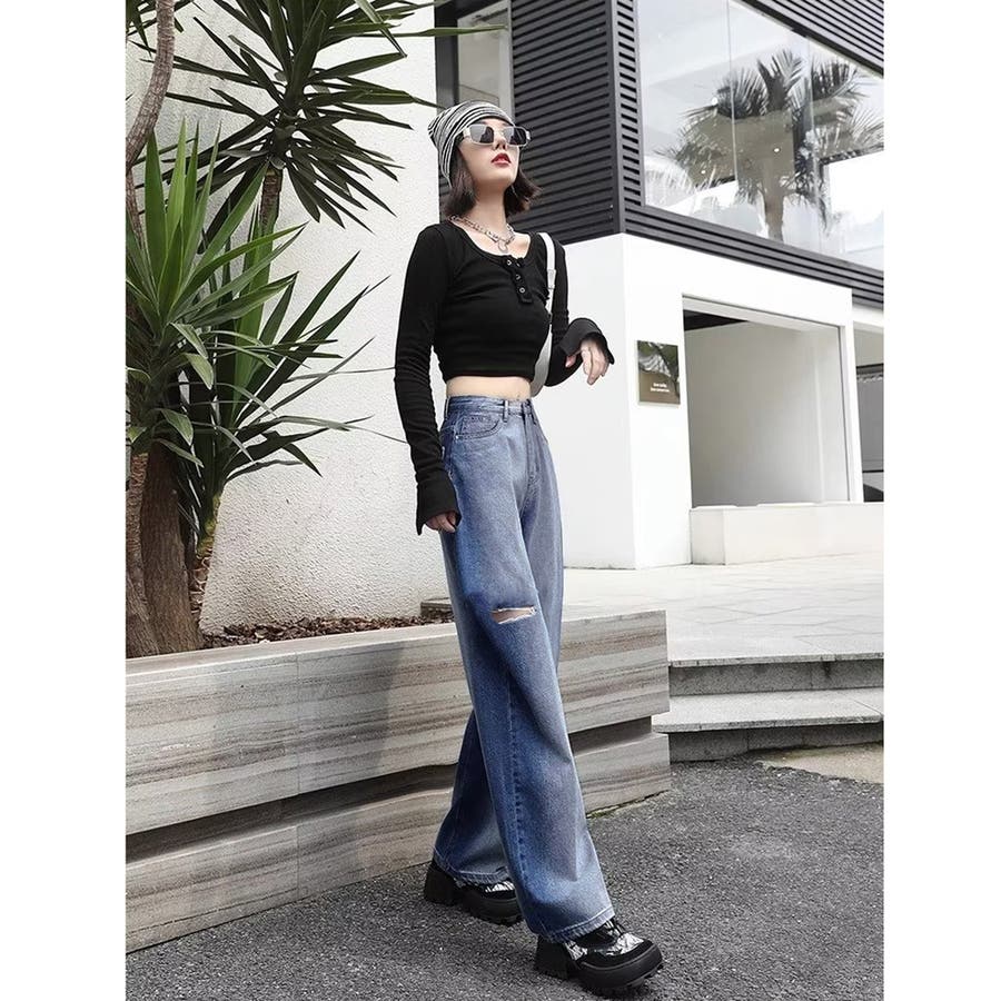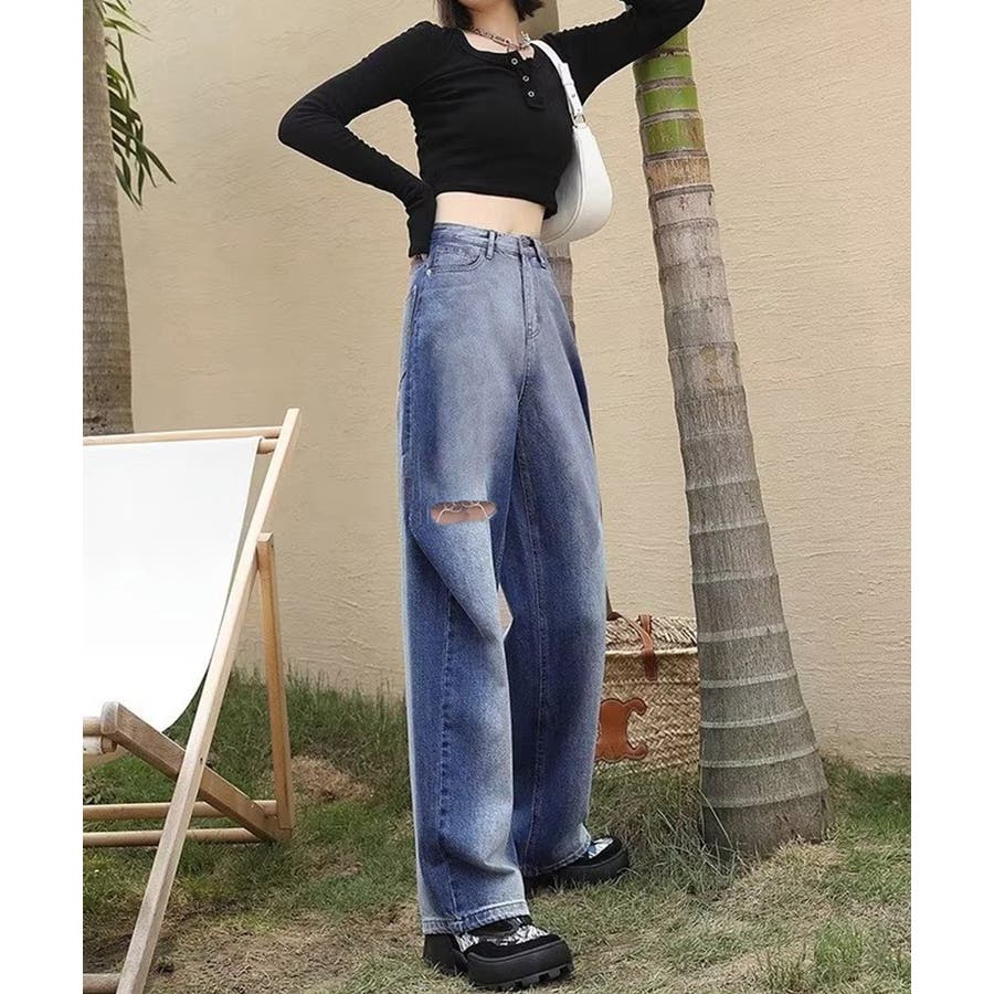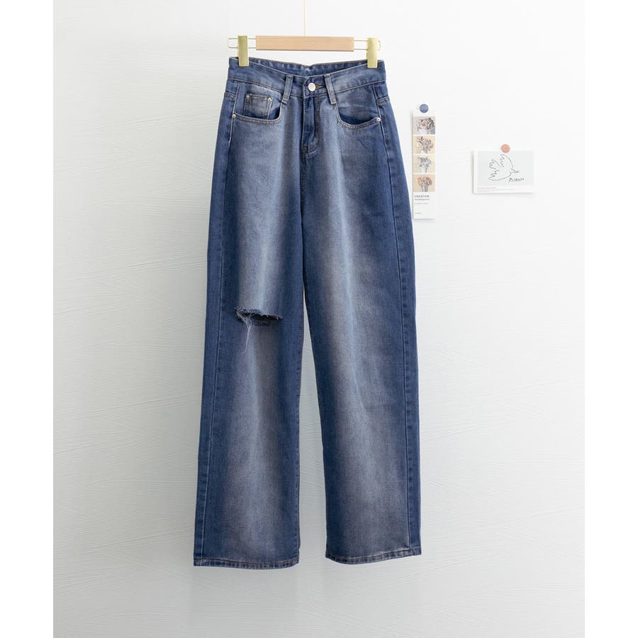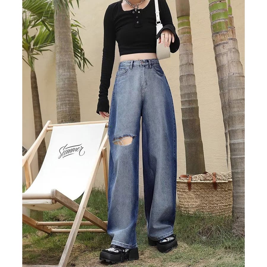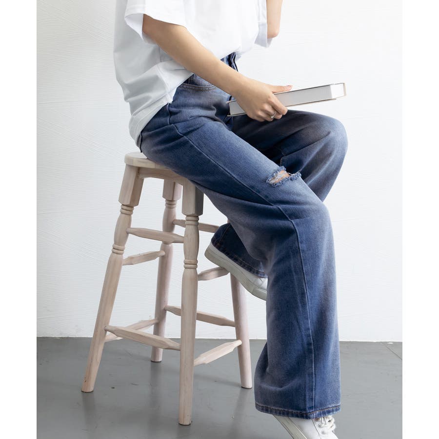 デニムワイドパンツ サイドダメージ韓国風