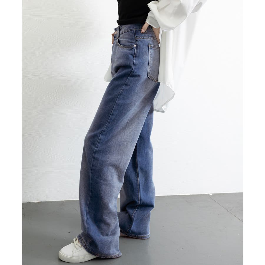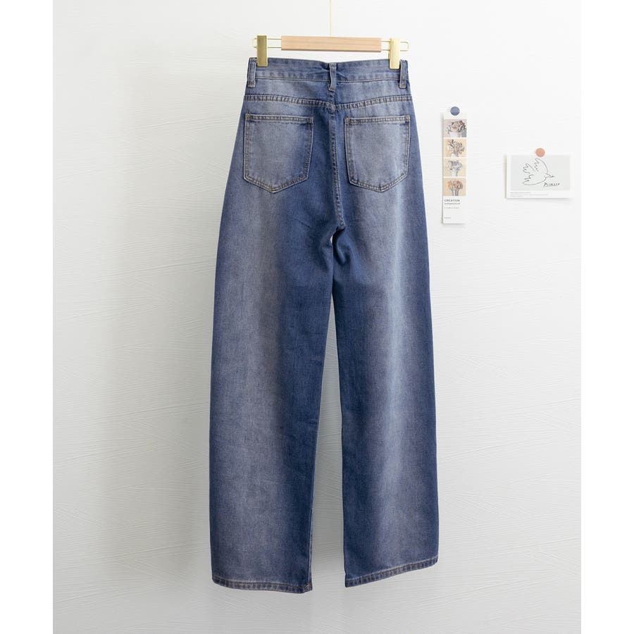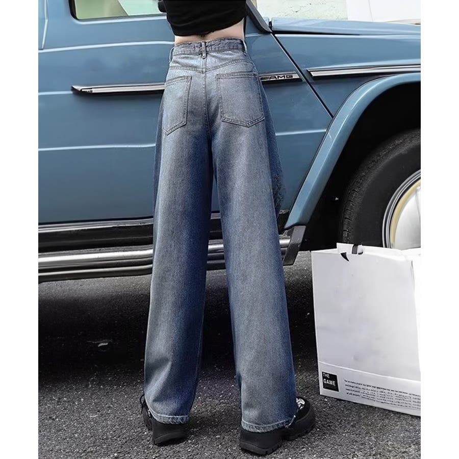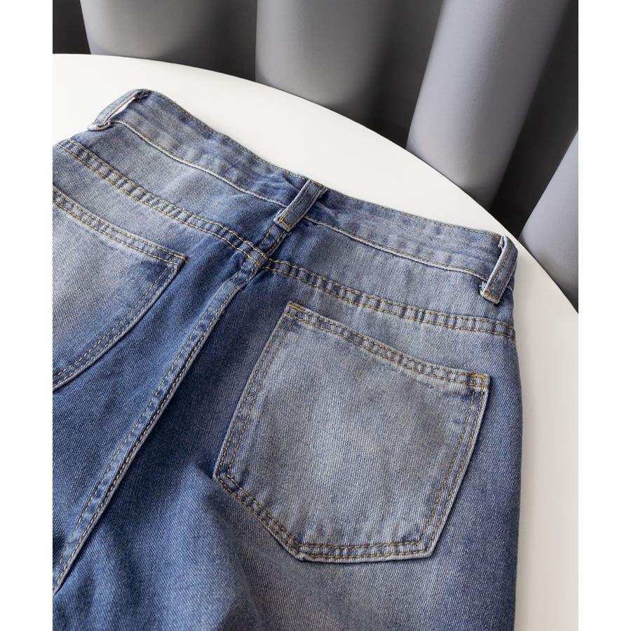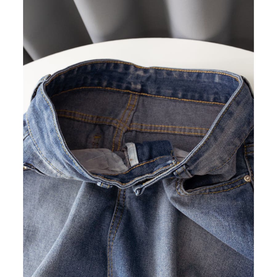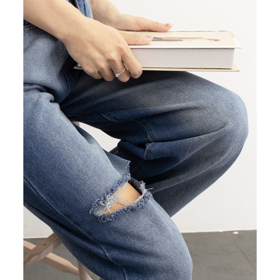 デニムワイドパンツ サイドダメージ韓国風
