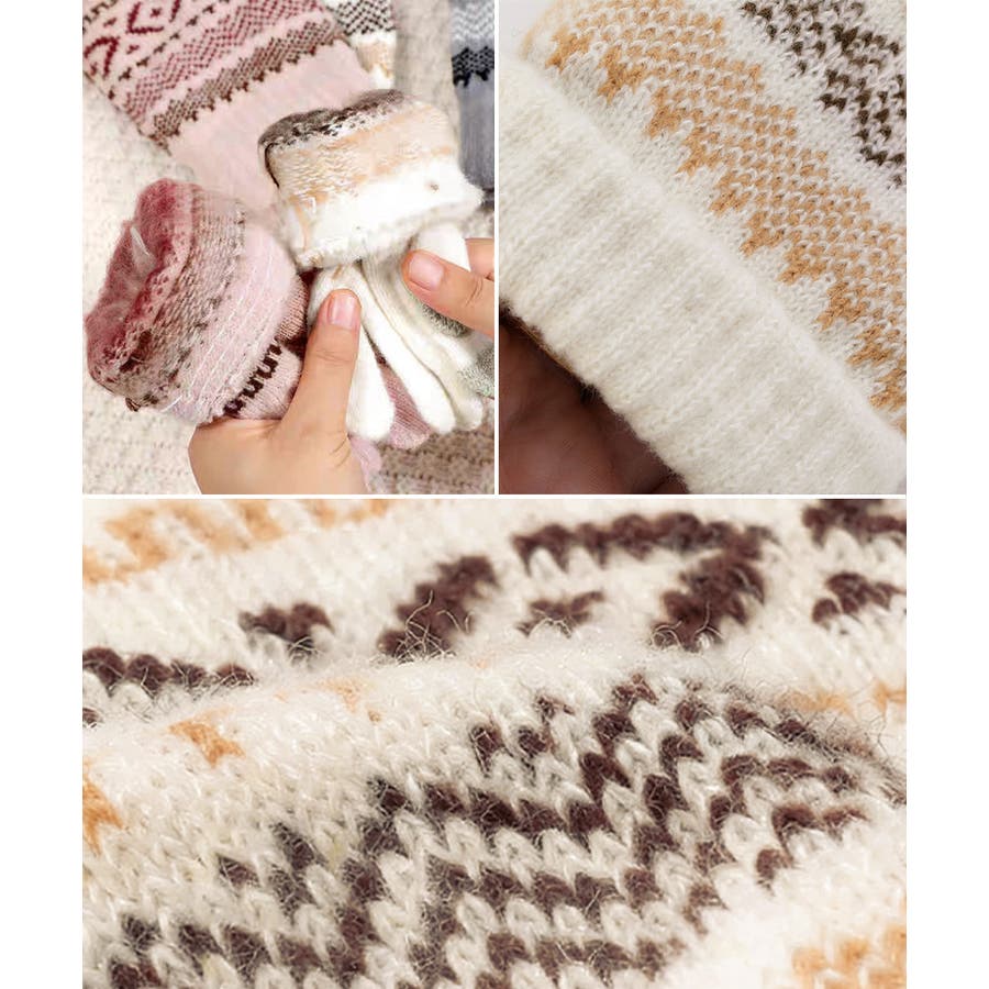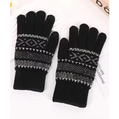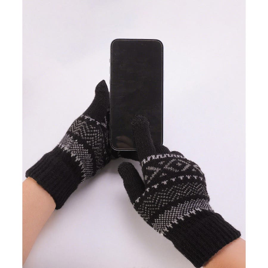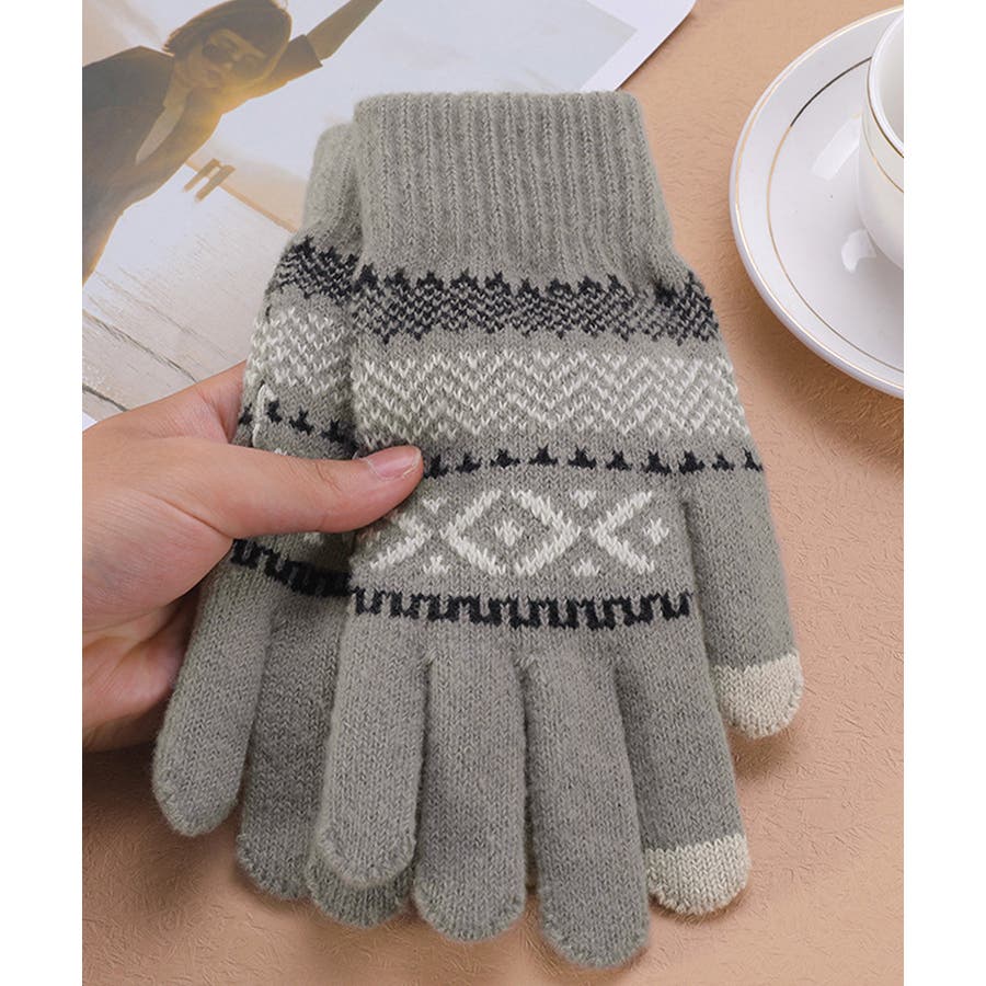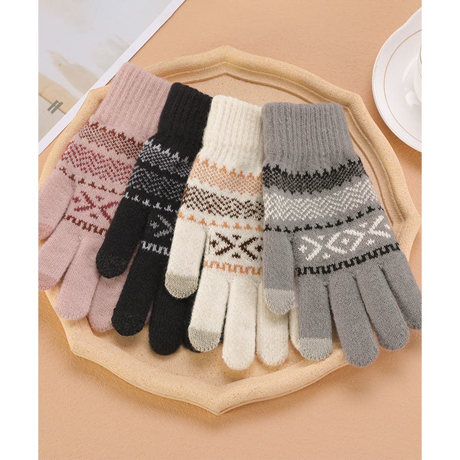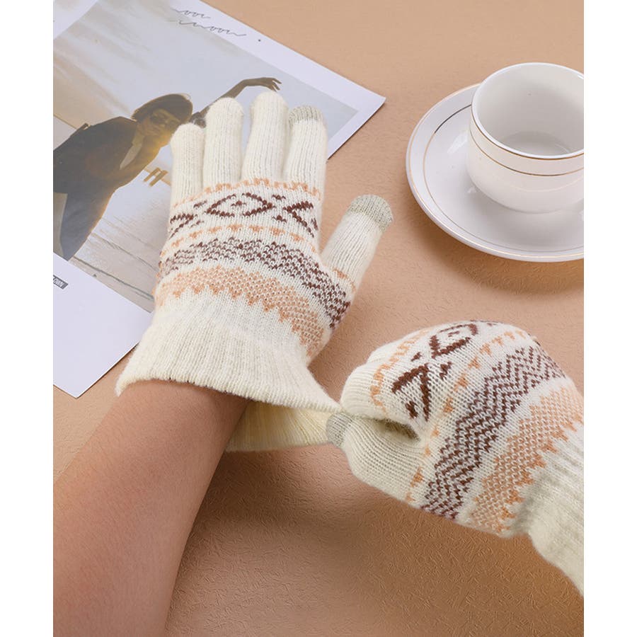 裏微起毛 暖かい手袋 レディース 北欧風 5本指ニットグローブ タッチパネル対応 ニット手袋 あったか 幾何学模様手袋冬