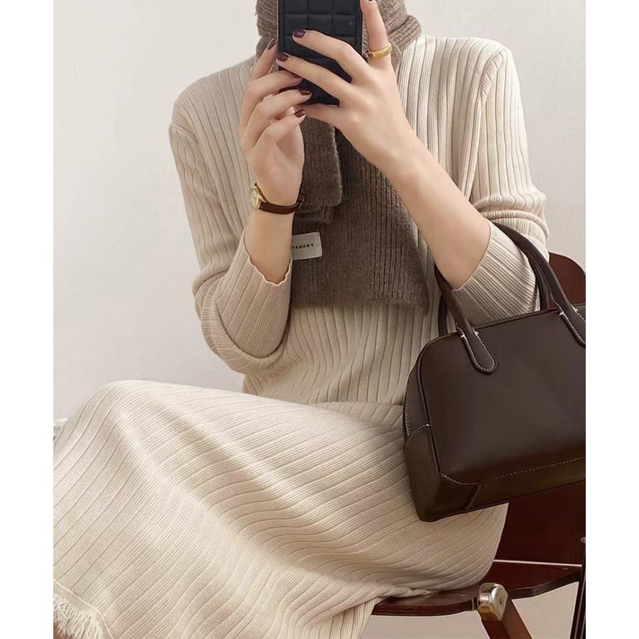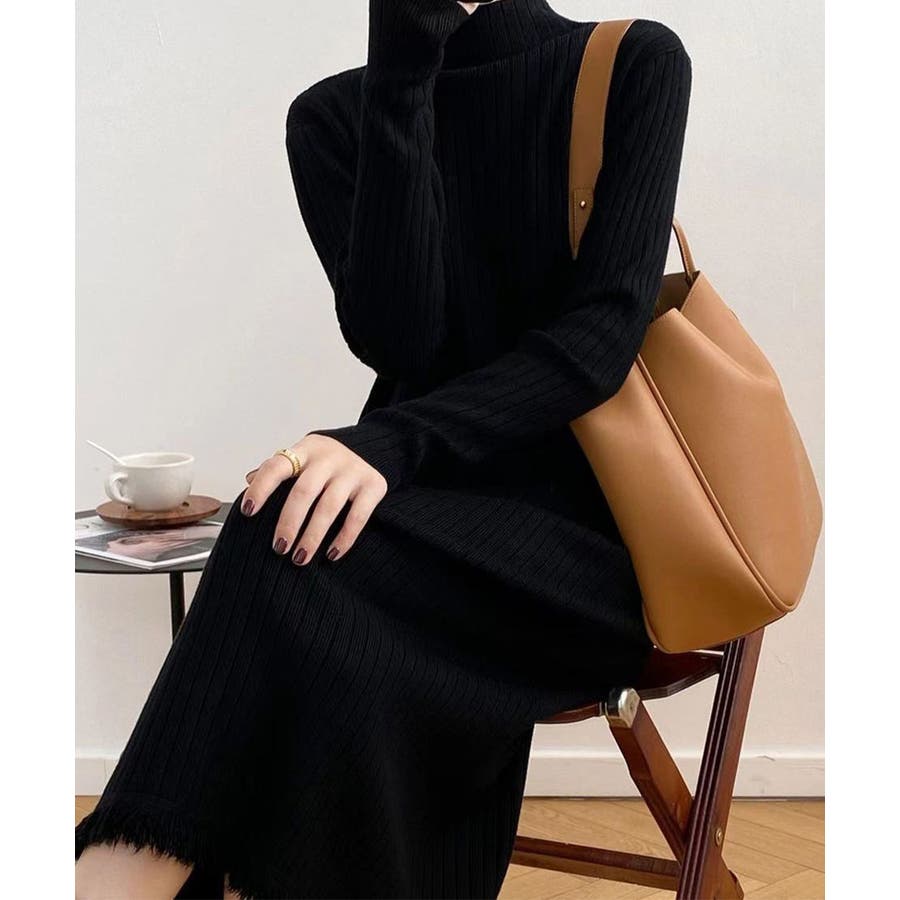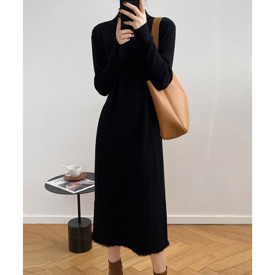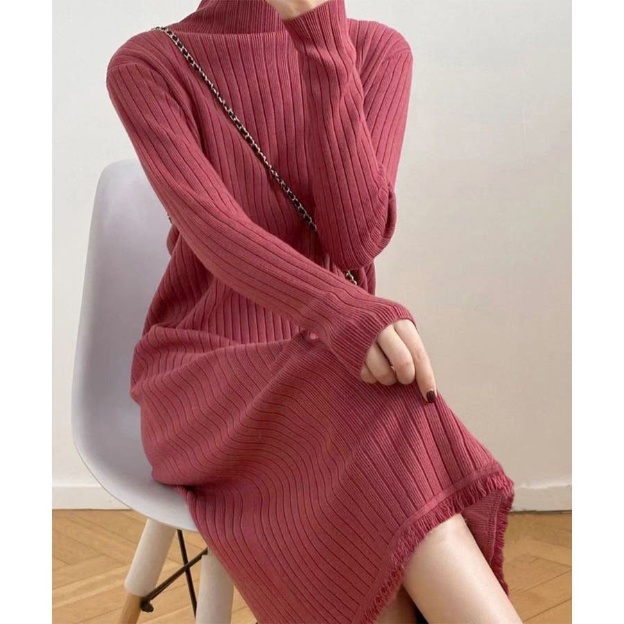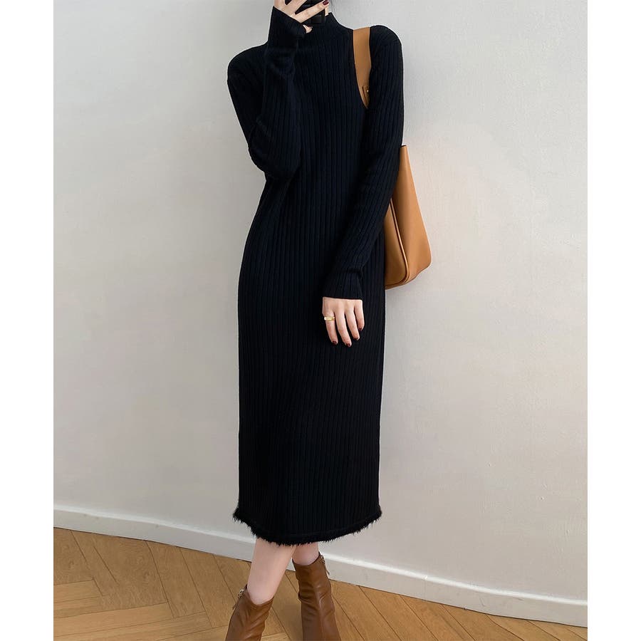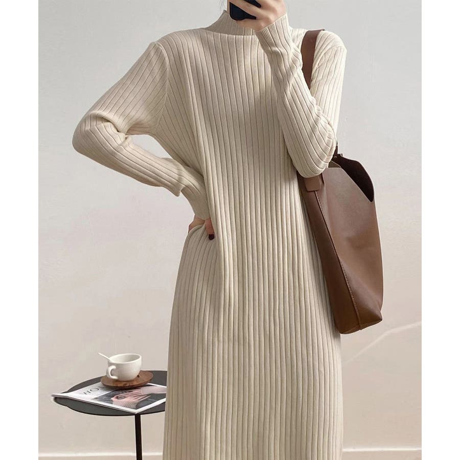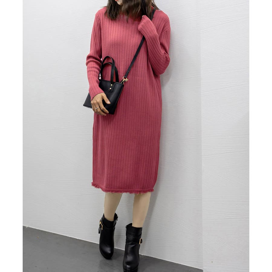 きれいめワンピース セーターワンピース 無地リブワンピ韓国