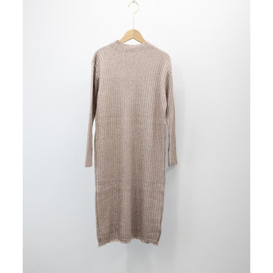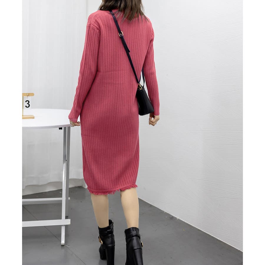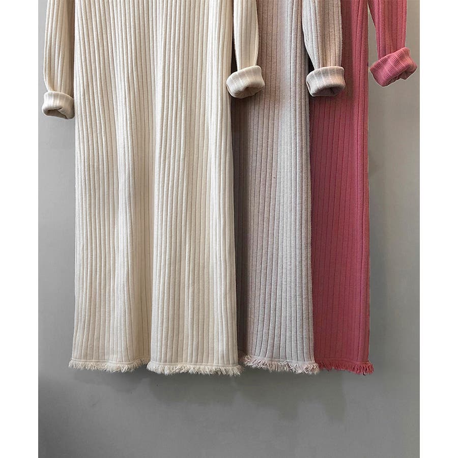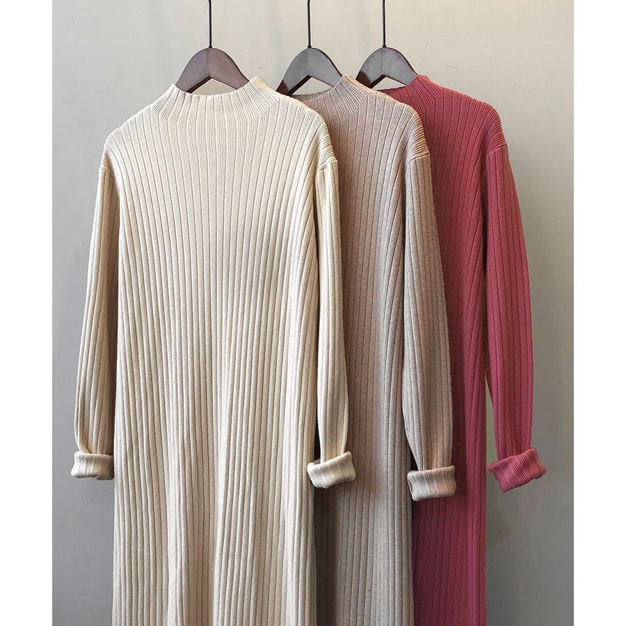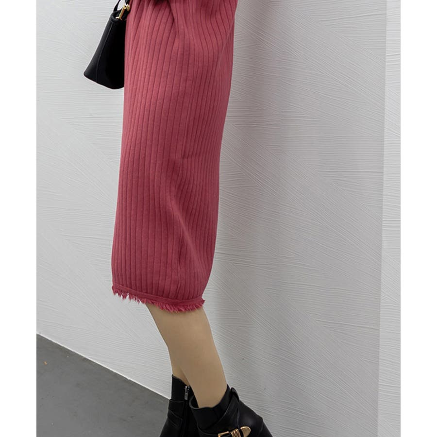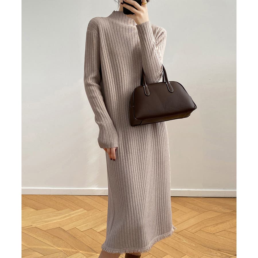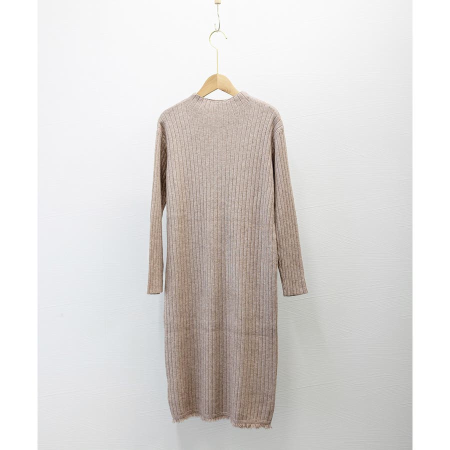 リラックスな雰囲気と女性らしさを兼ね備えたリブニットワンピース