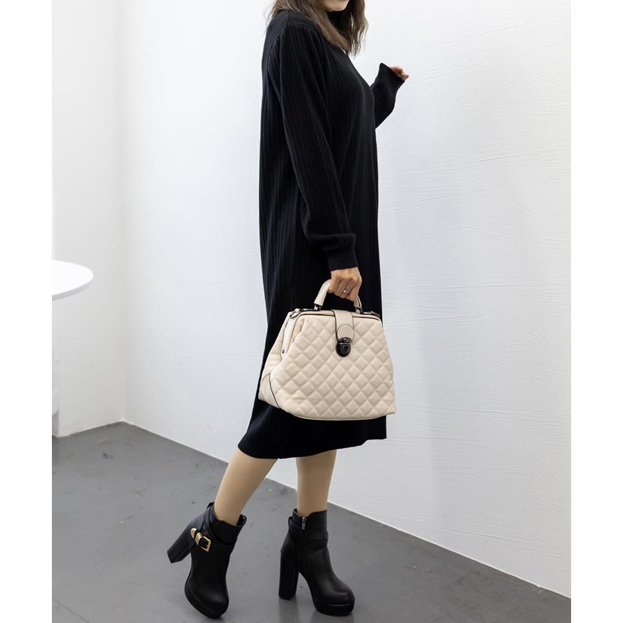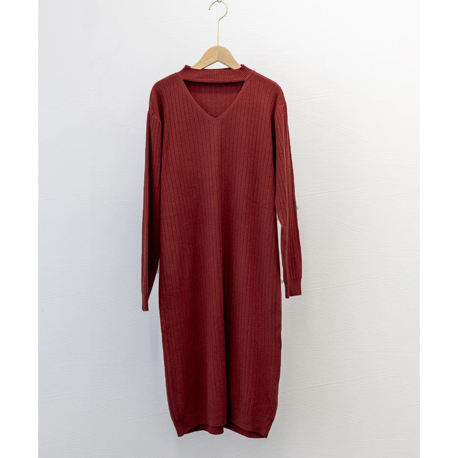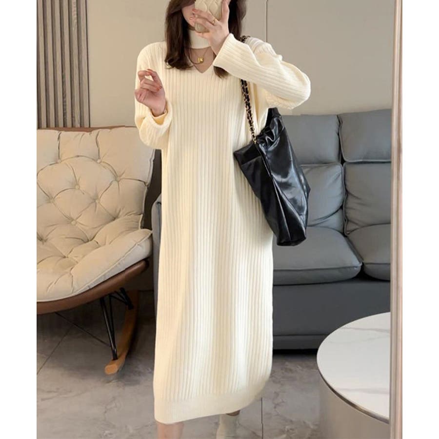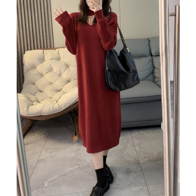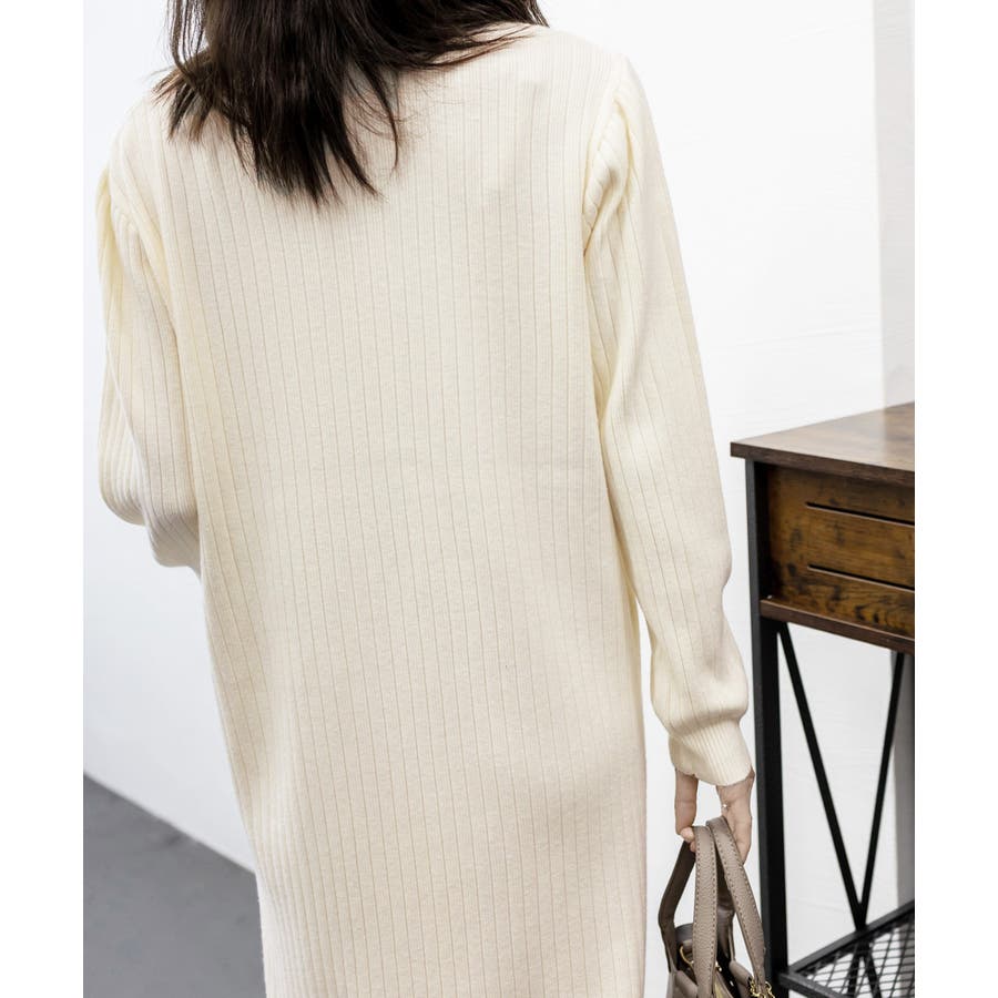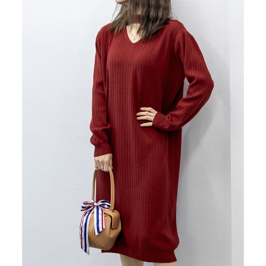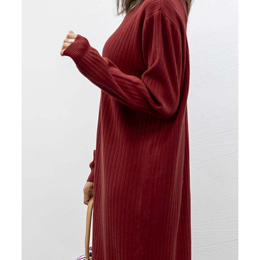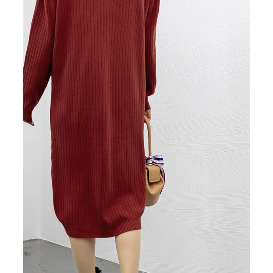 立体感のあるリブ生地を使用、体のラインを拾わず体型カバーするニットワンピース