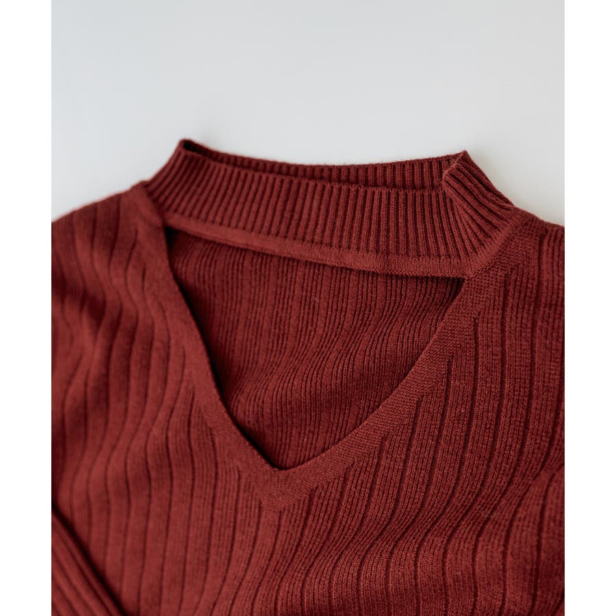 Vネックにチョーカーデザインを加え、デコルテを美しく魅せてシンプルさに遊び心満載