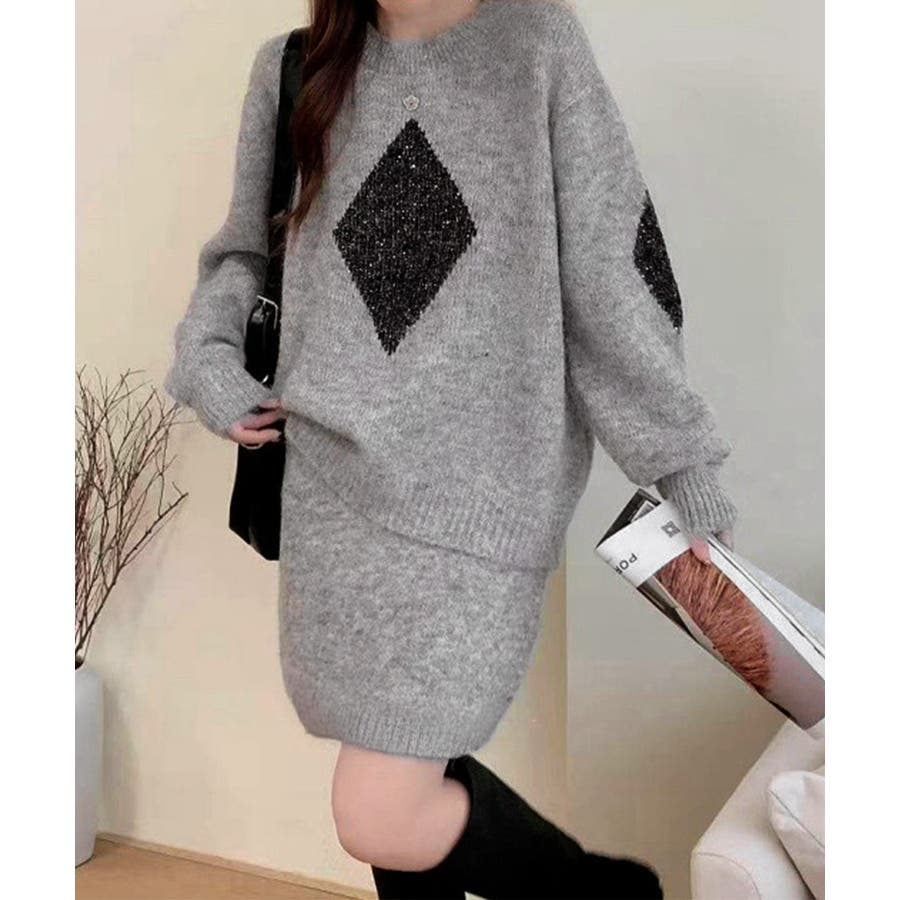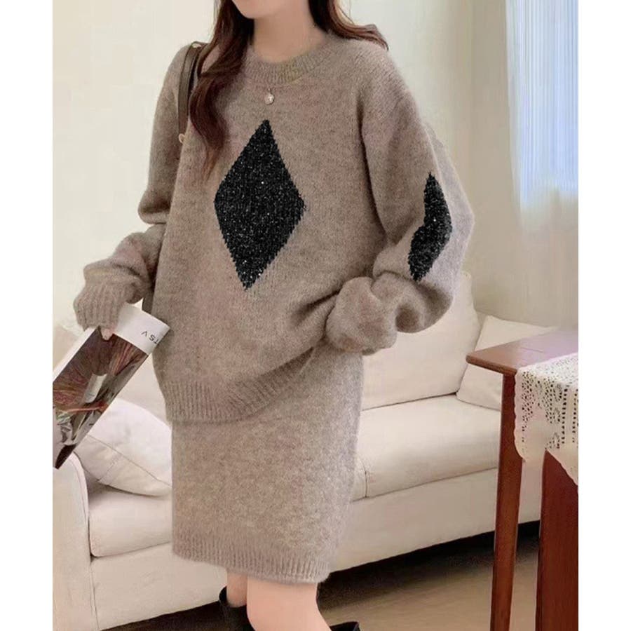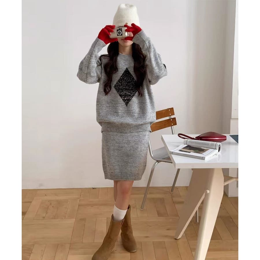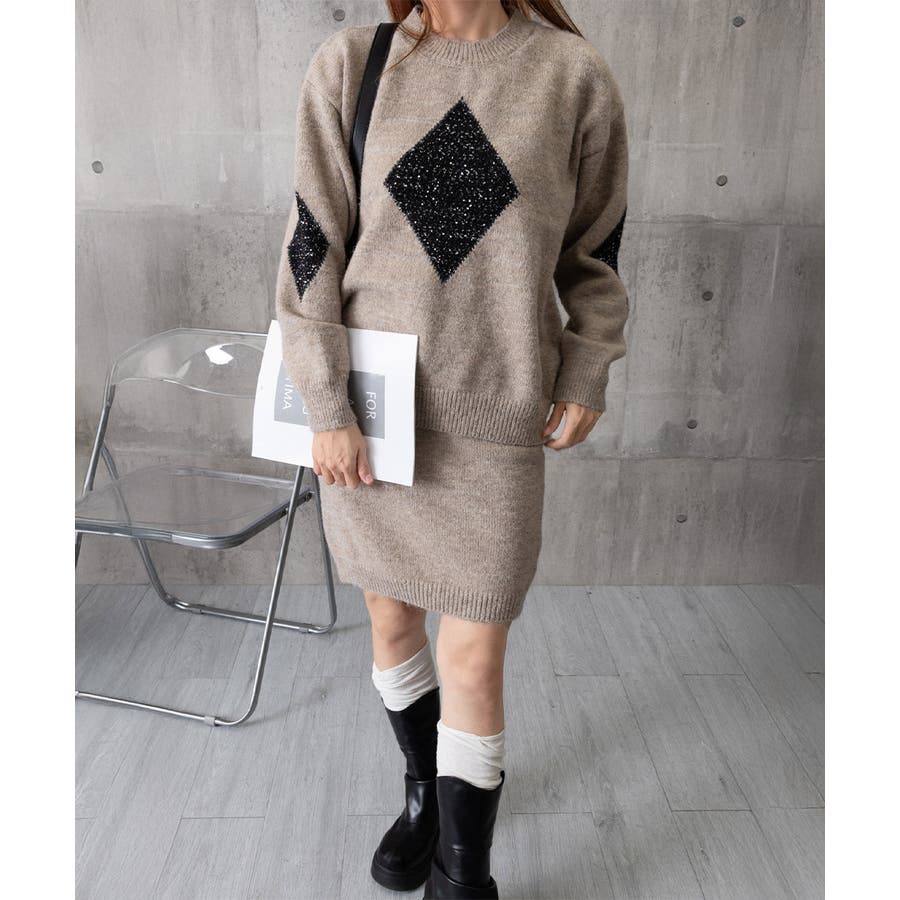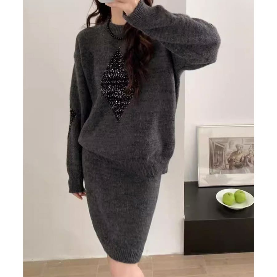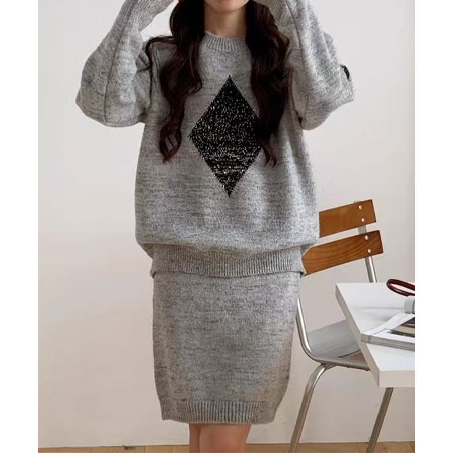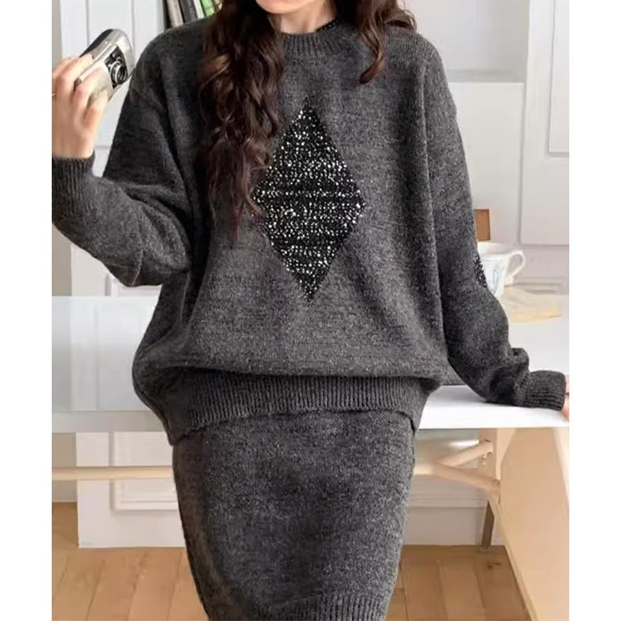 スパンコールニットセットアップ きれいめ