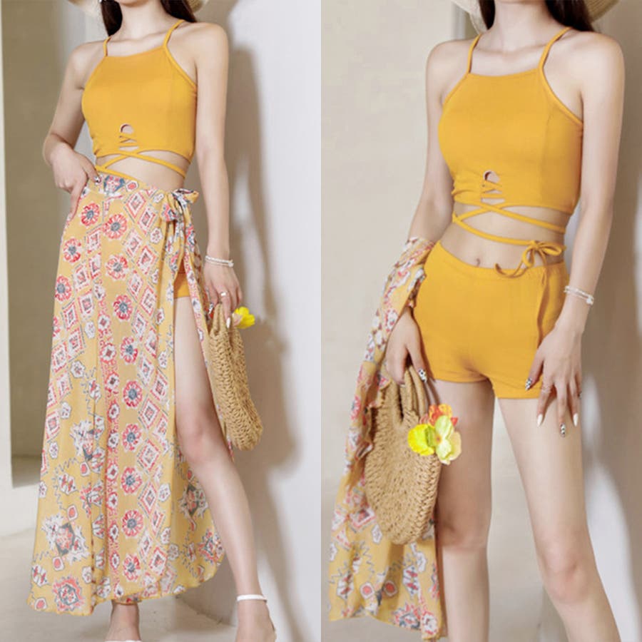 露出が少なくてもセクシーに魅せてくれるパレオ付水着3点セット
