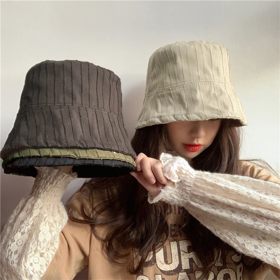 リバーシブルハット 日よけ帽子 漁師帽 リゾートコーデ