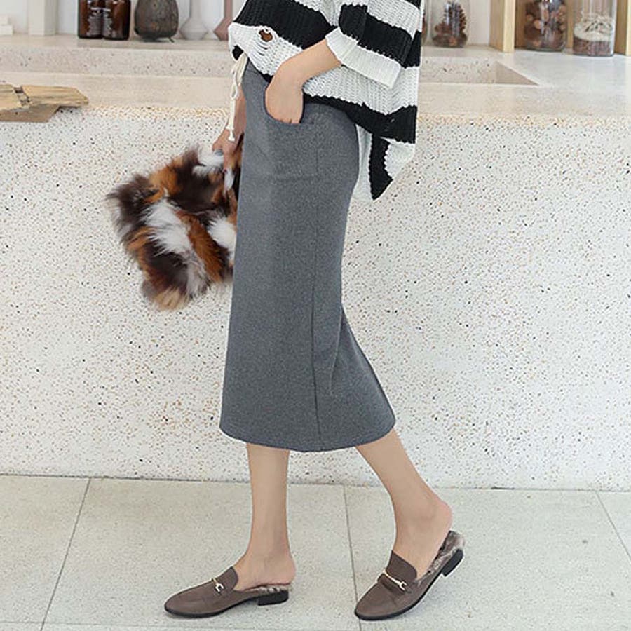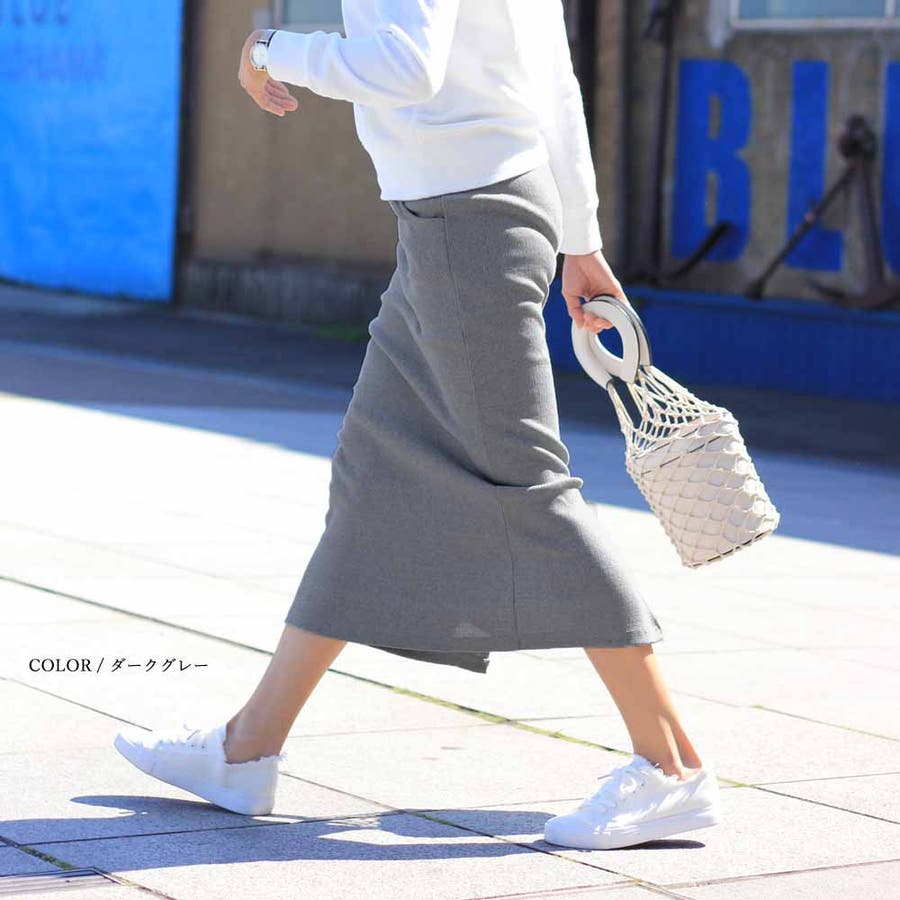 程よい厚みのリブ素材がロングシーズン着用を可能にするロング丈タイトスカート