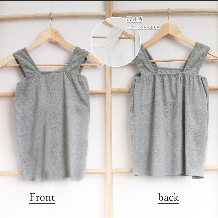 レーストップスやシアーシャツでも、太めの肩ひもでブラ紐を隠して着られるタンクトップ