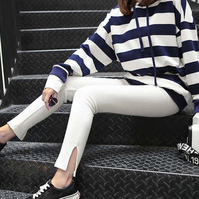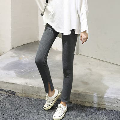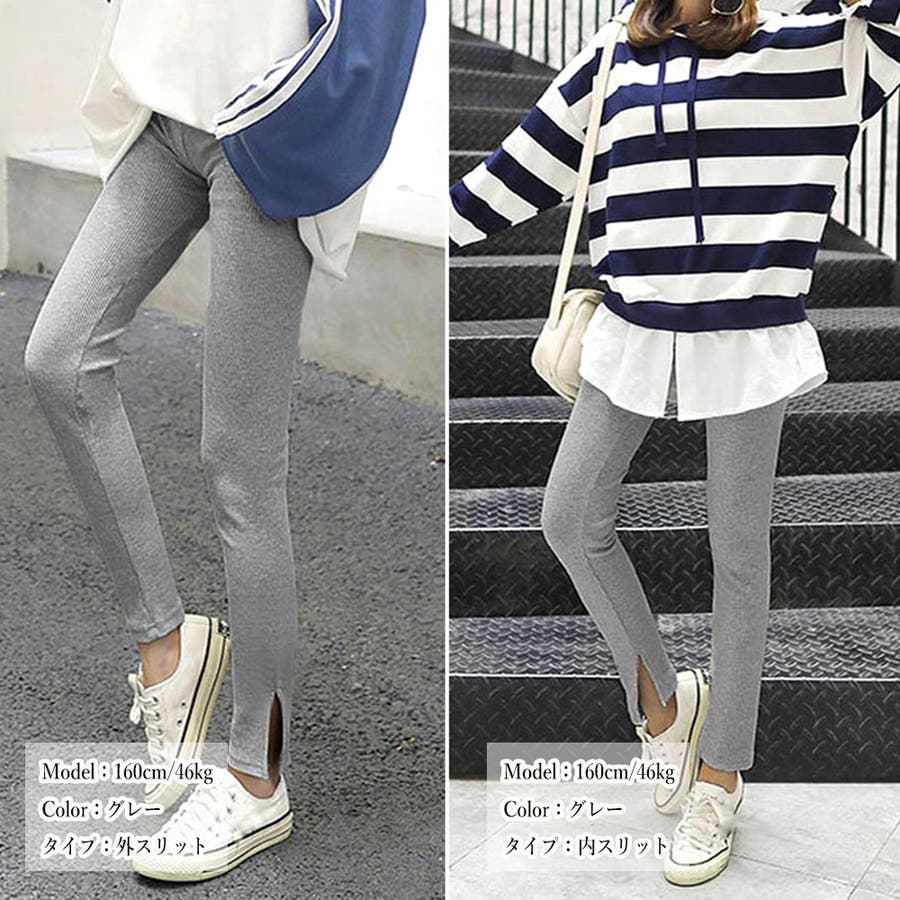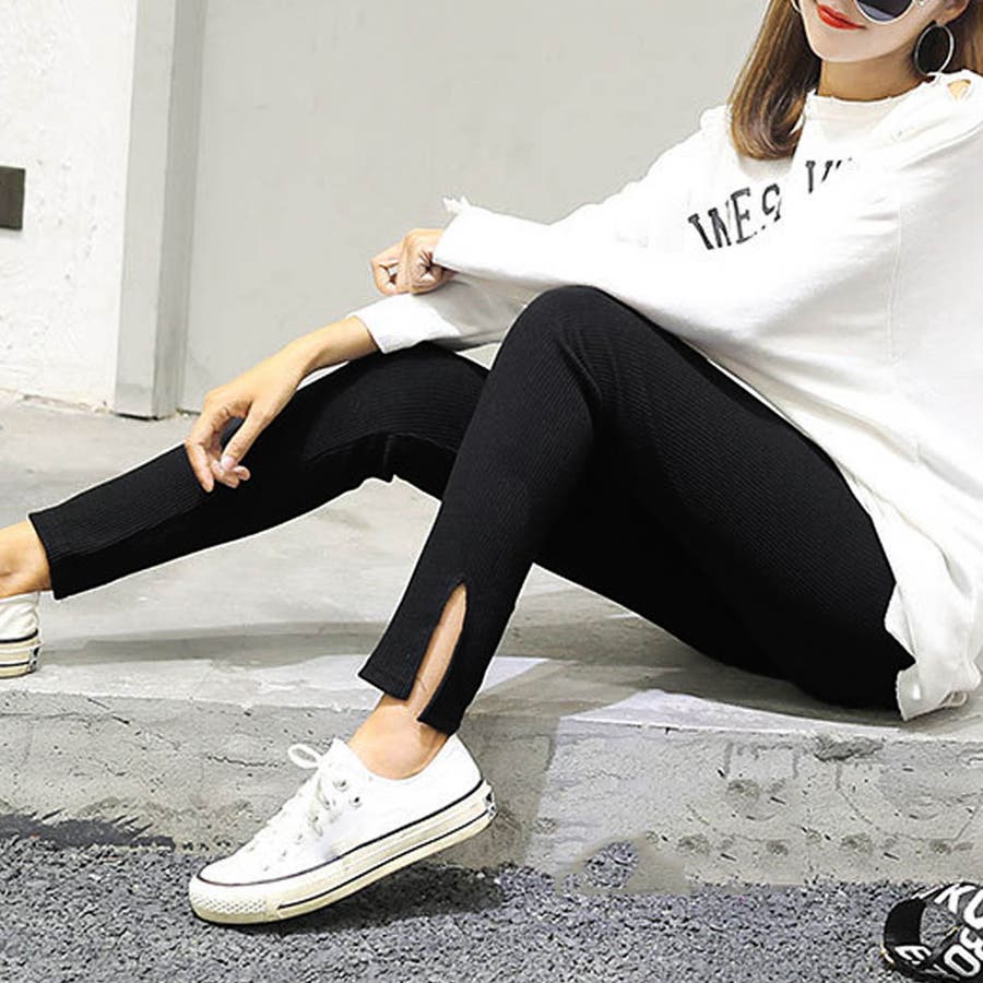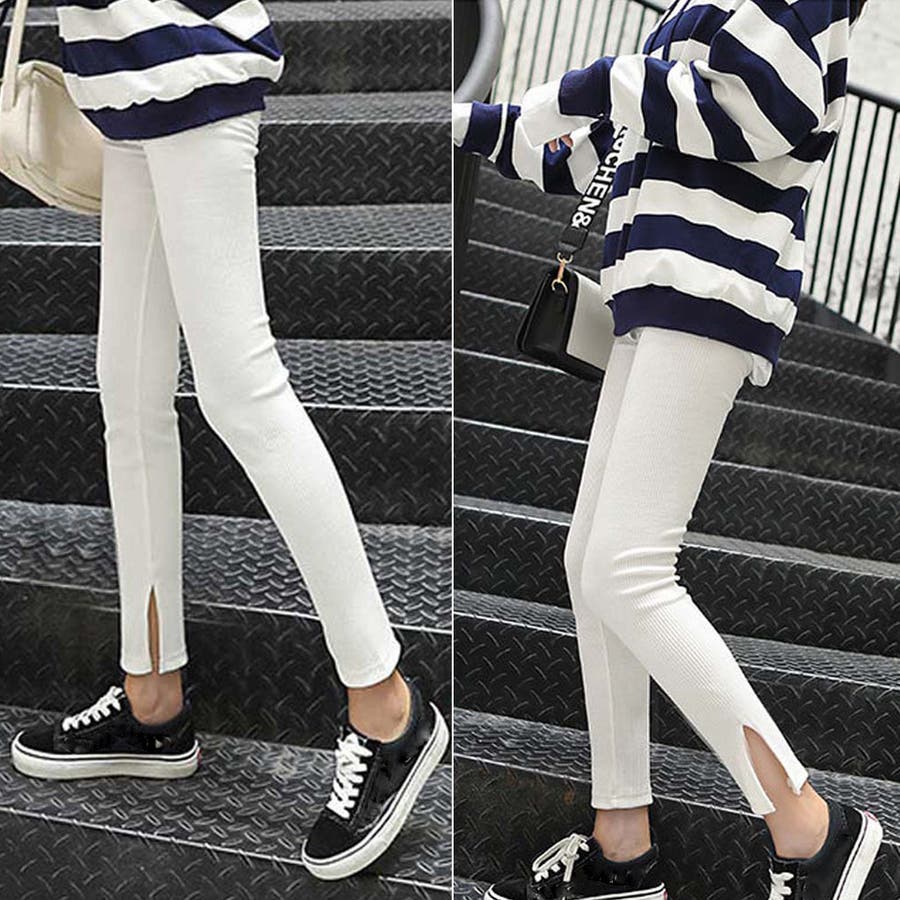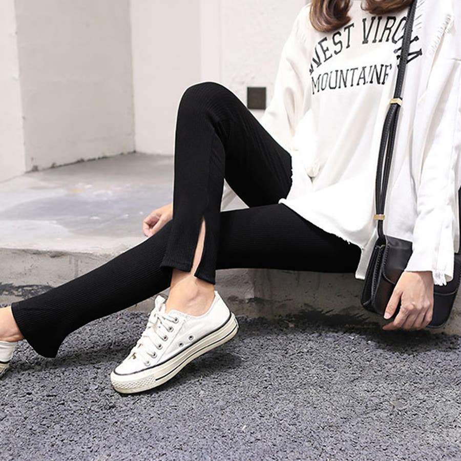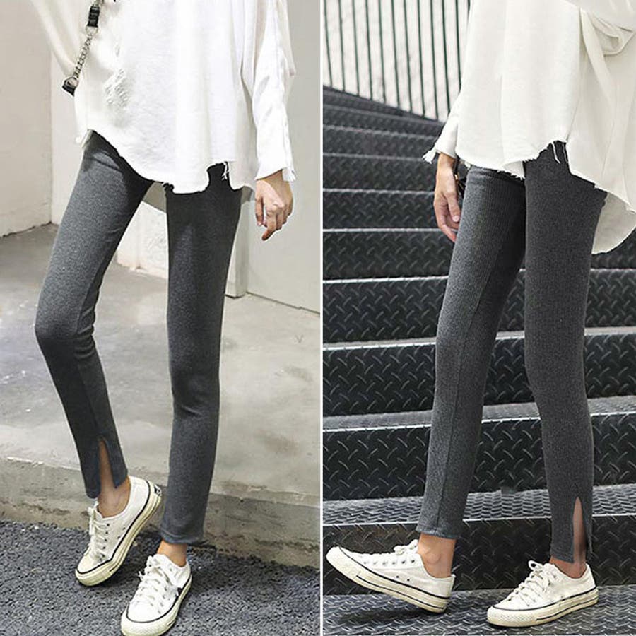 韓国 オルチャン 韓国ファッション 韓国風 韓国系 かわいい 可愛い カジュアル 人気 安い 洋服 レディース 通販 ファッションサイドスリット リブ レギンス ボトムス 万能 ママコーデ ブラック グレー ホワイト ベージュ 伸縮 ストレッチオフィスカジュアル 量産型 ホーム 中学生 高校生