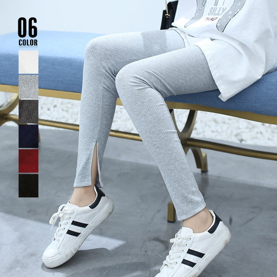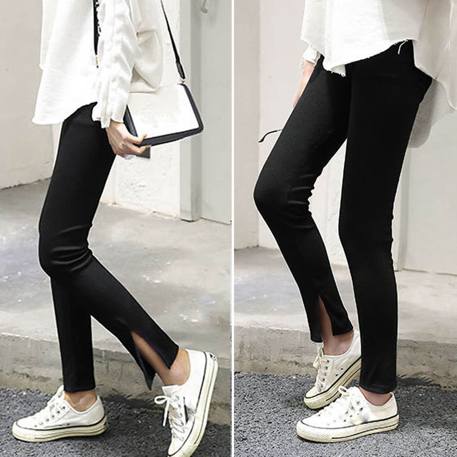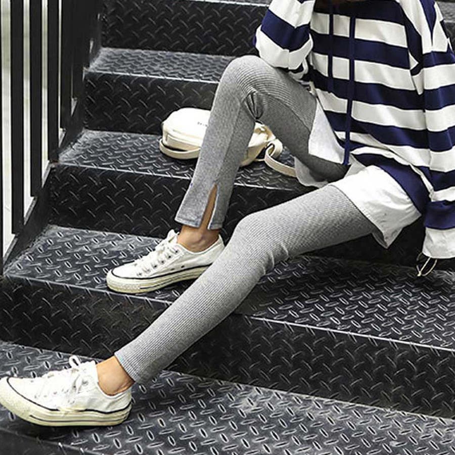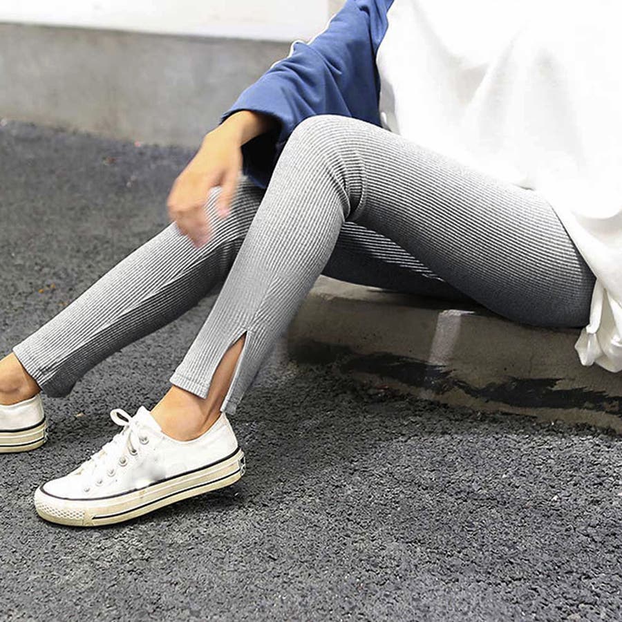 ストレッチサイドスリットリブレギンス 春 春服