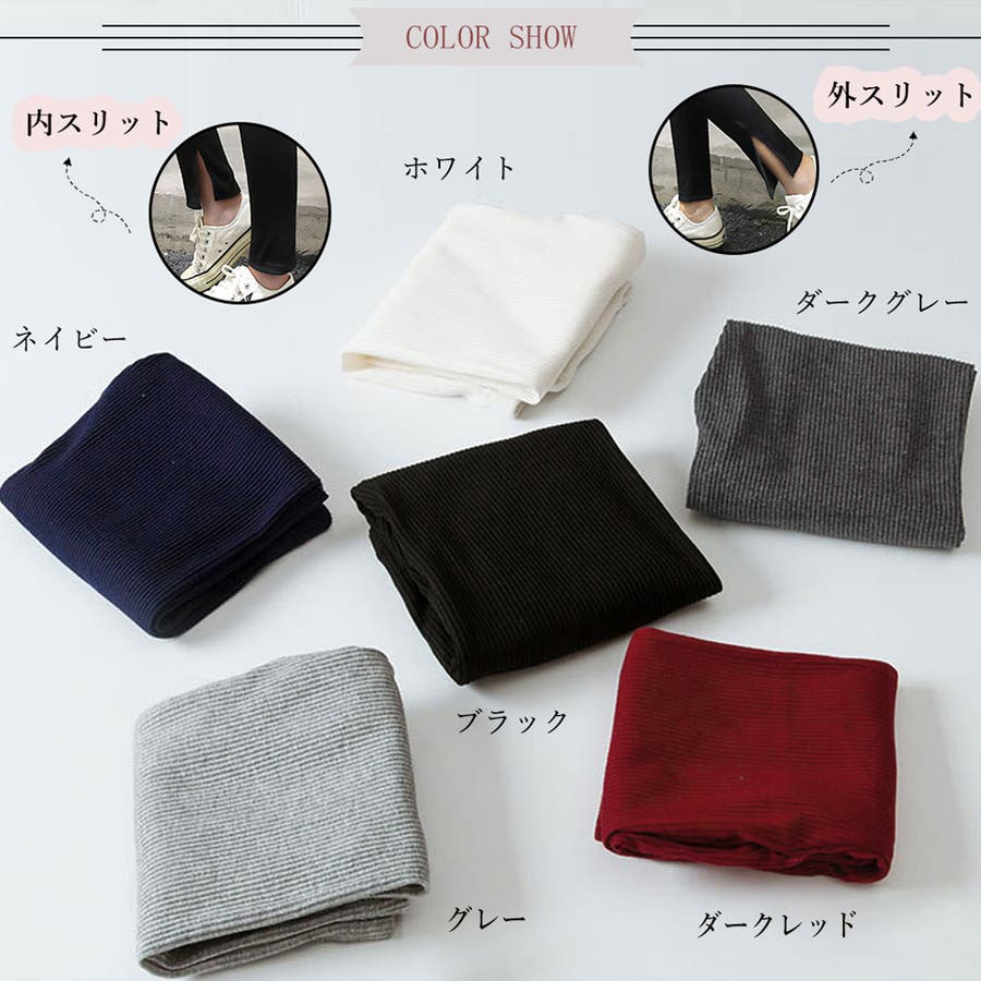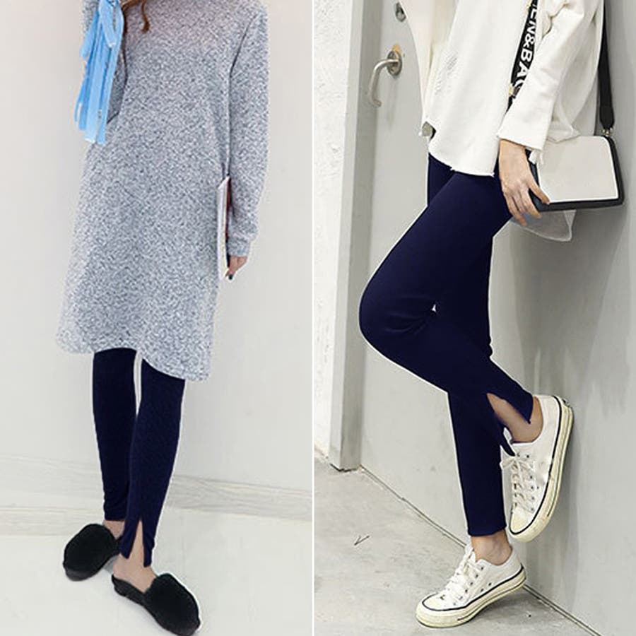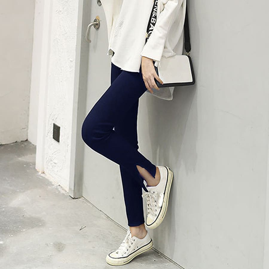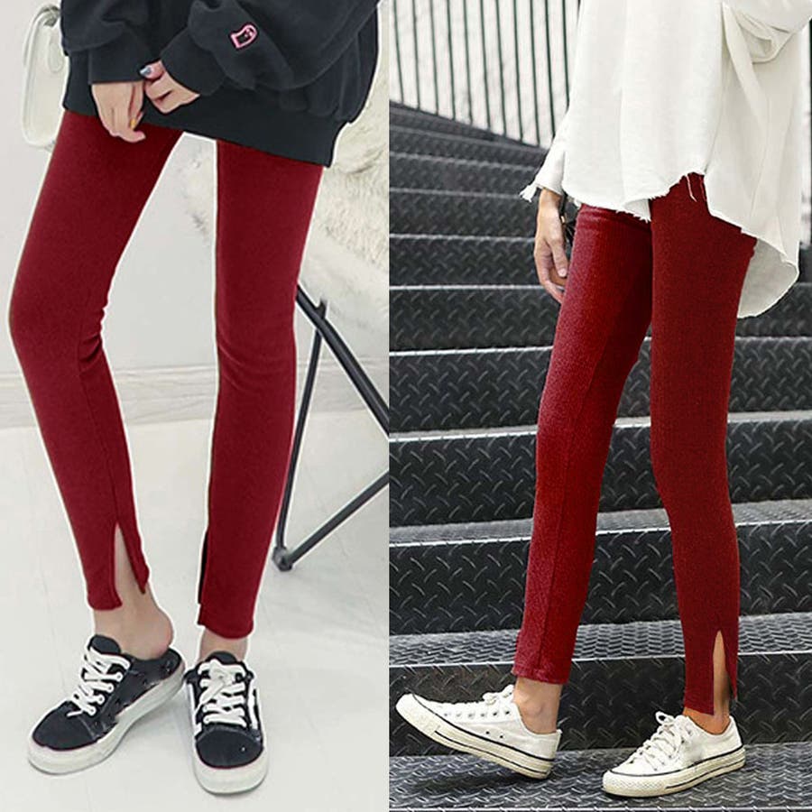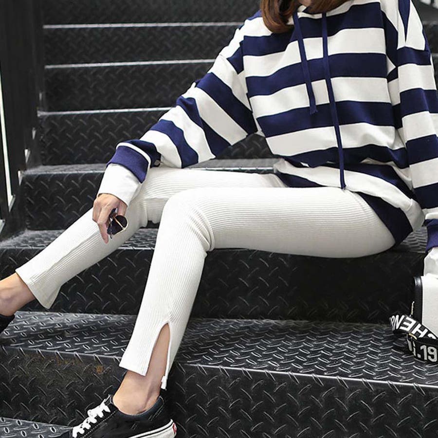 ストレッチサイドスリットリブレギンス 春 春服
