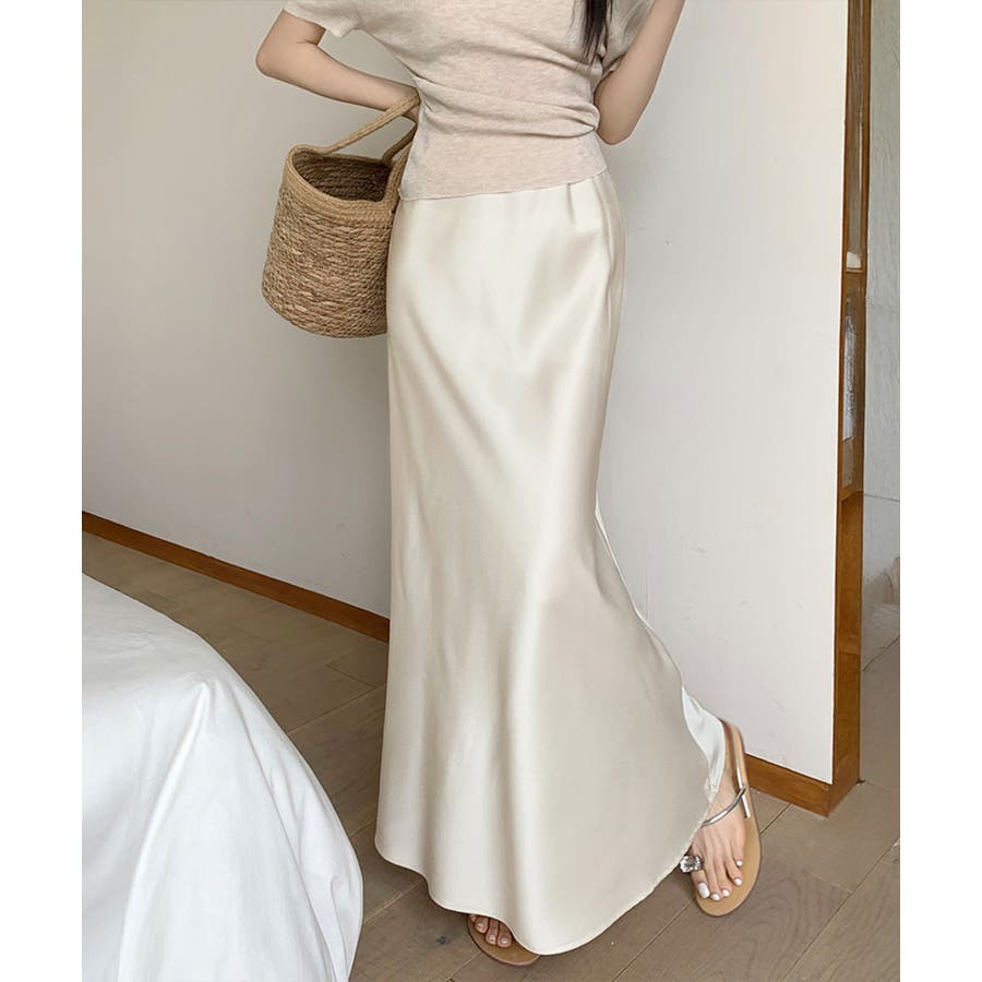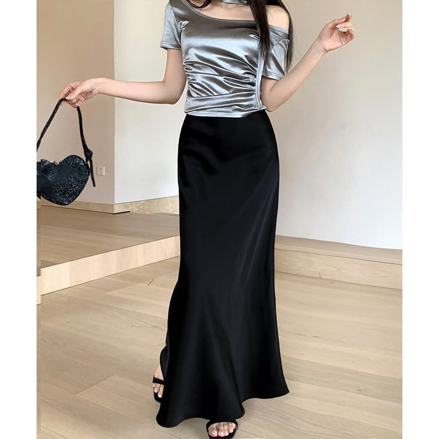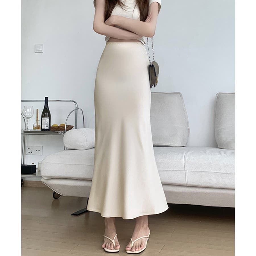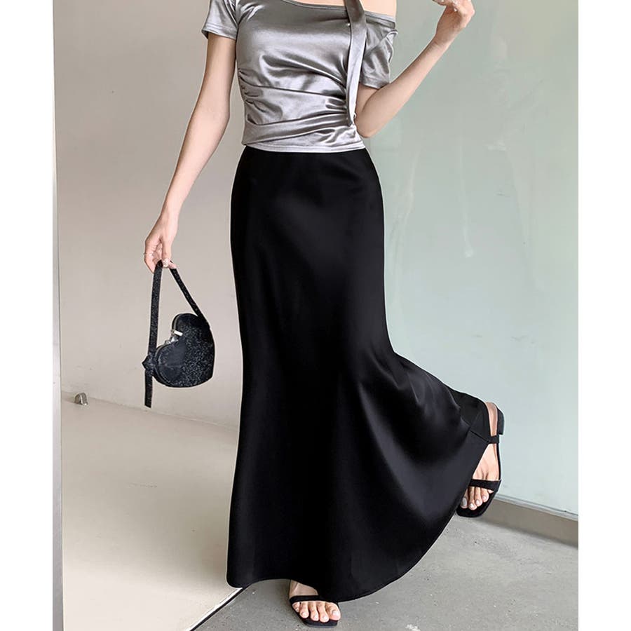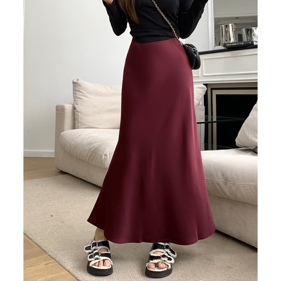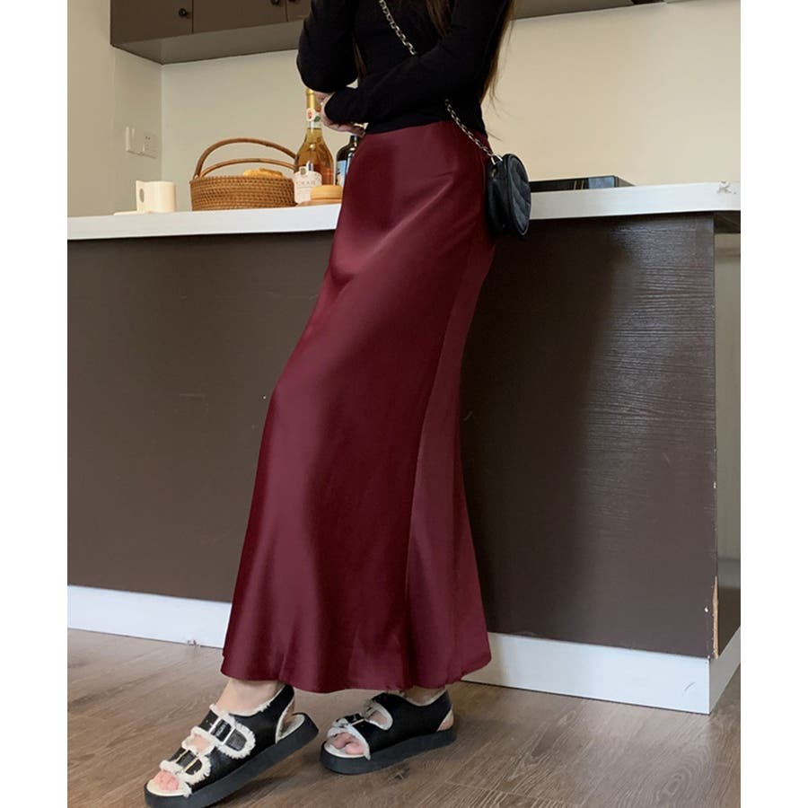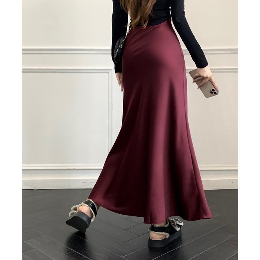 滑らかな光沢素材で高貴な印象を与えてくれるサテンスカート
