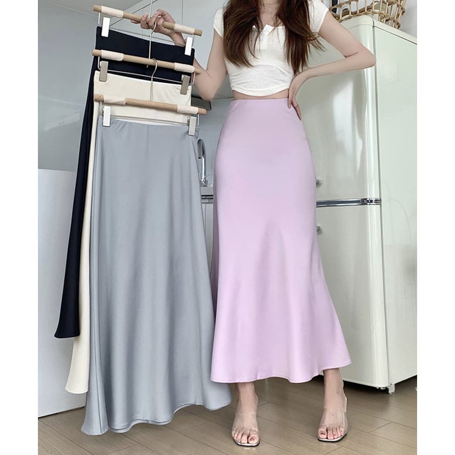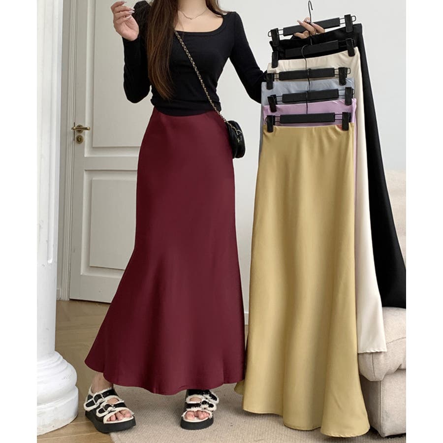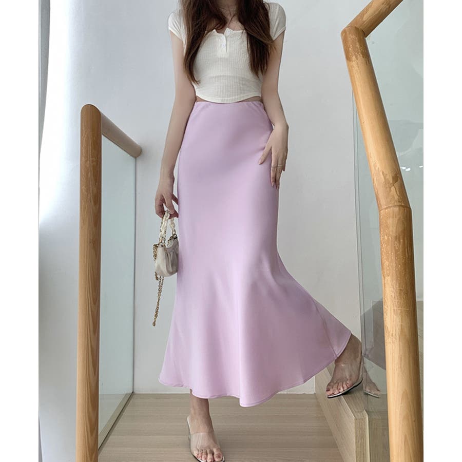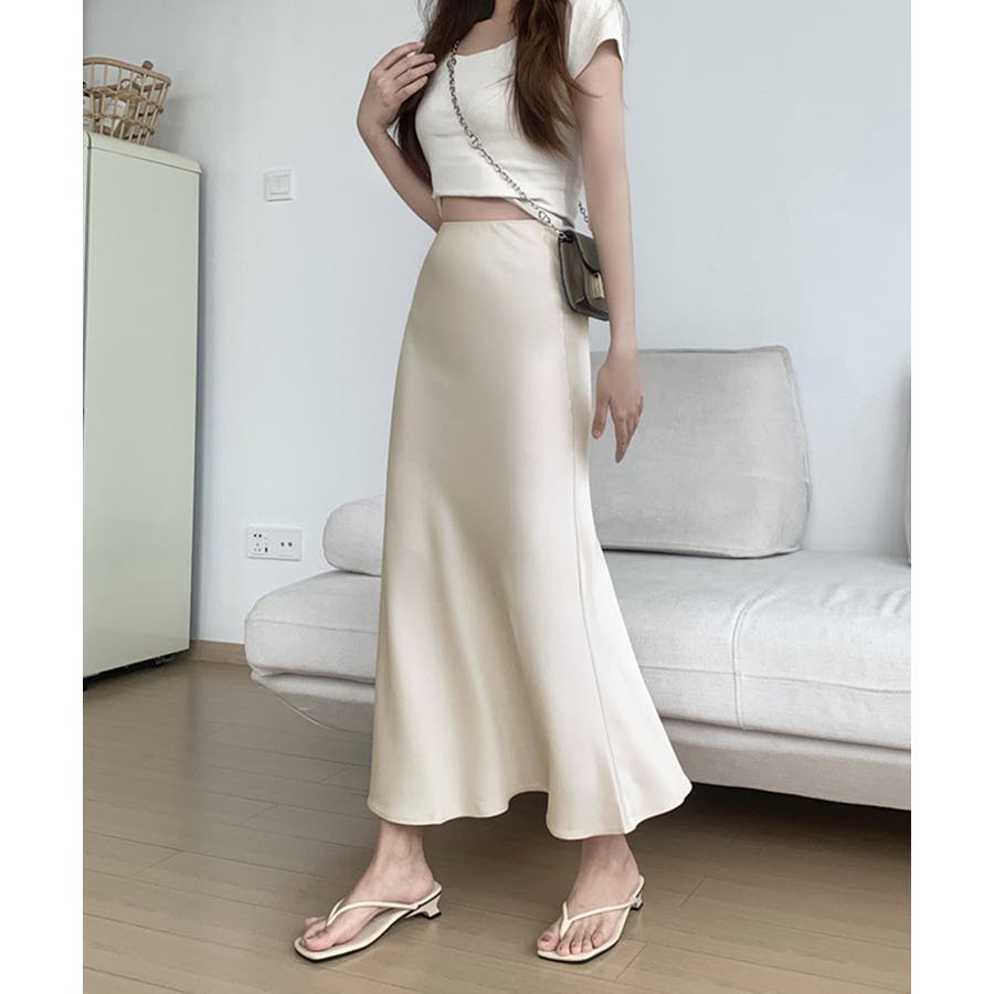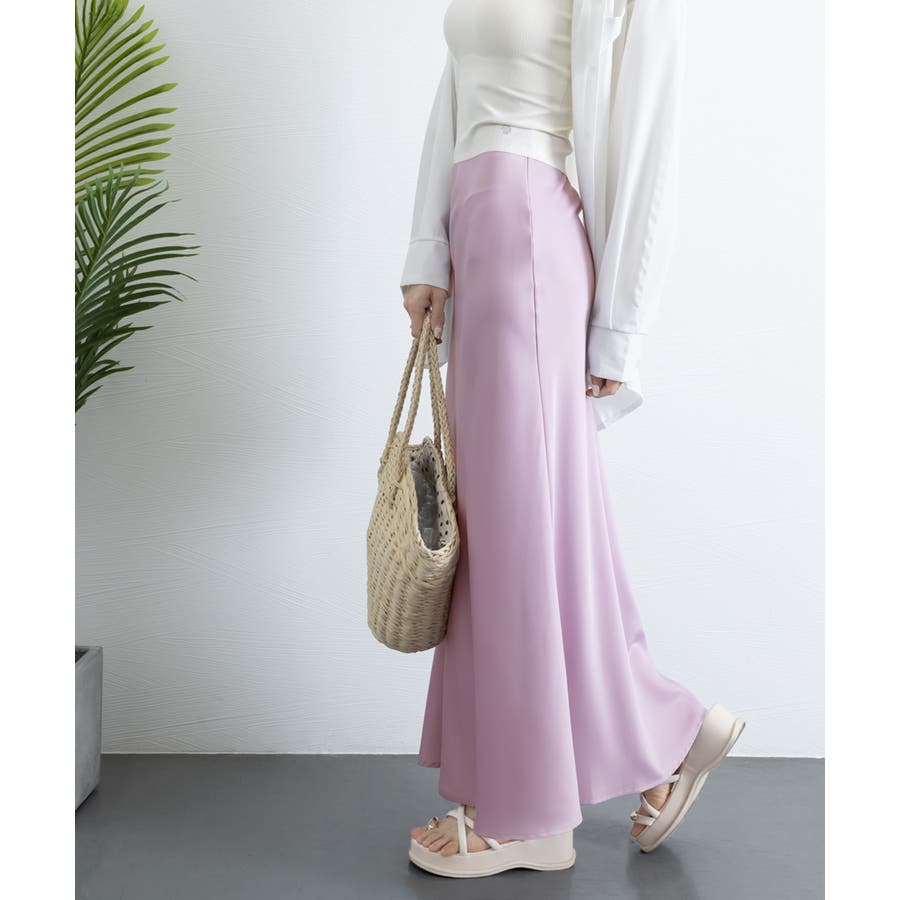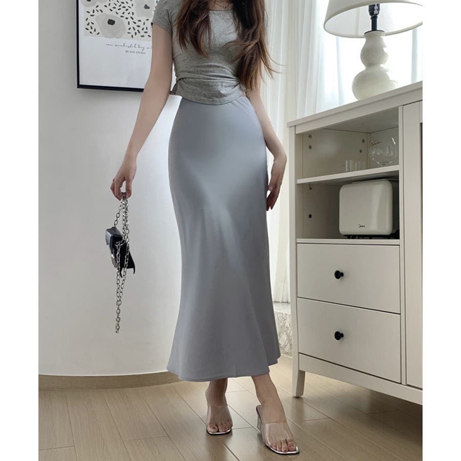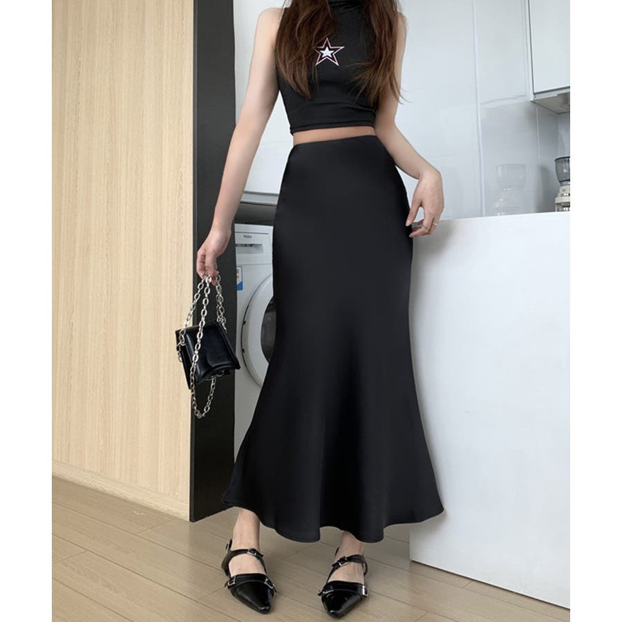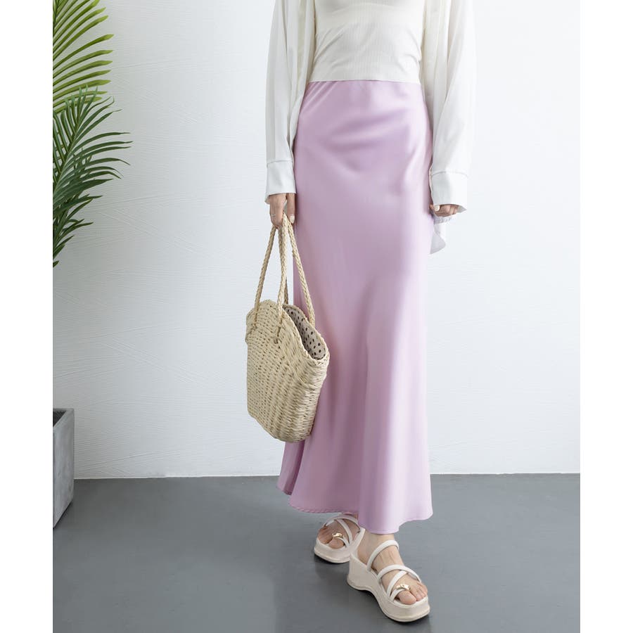 滑らかな光沢素材で高貴な印象を与えてくれるサテンスカート