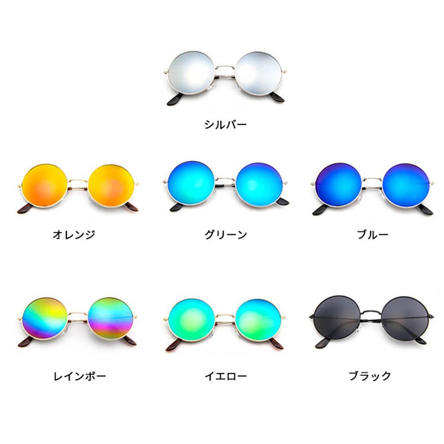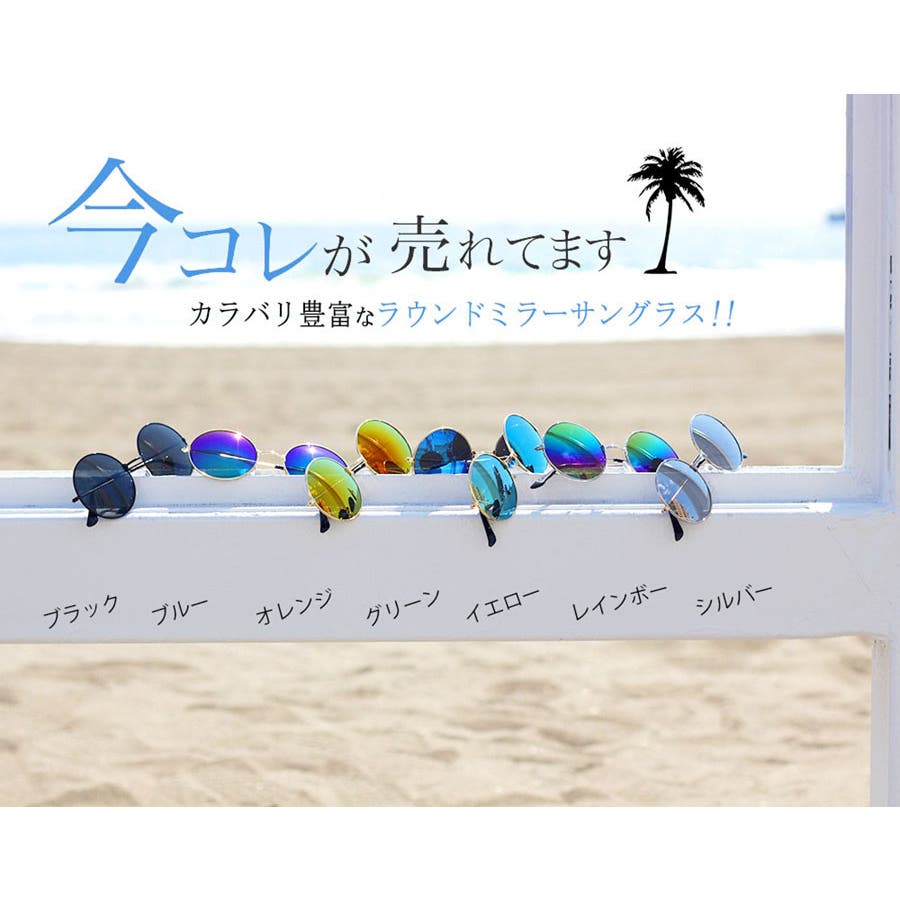 服のカラーと合わせた統一感ある着こなしもおすすめ。夏の紫外線対策としてオシャレ丸型ミラーサングラスは女子の必需品♪
