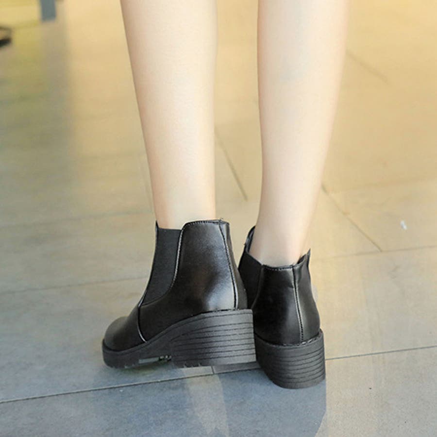 疲れない ブーツ黒 通勤通学 シューズ 大人厚底ブーツ秋冬