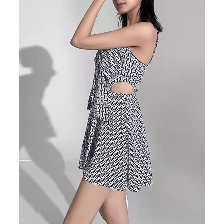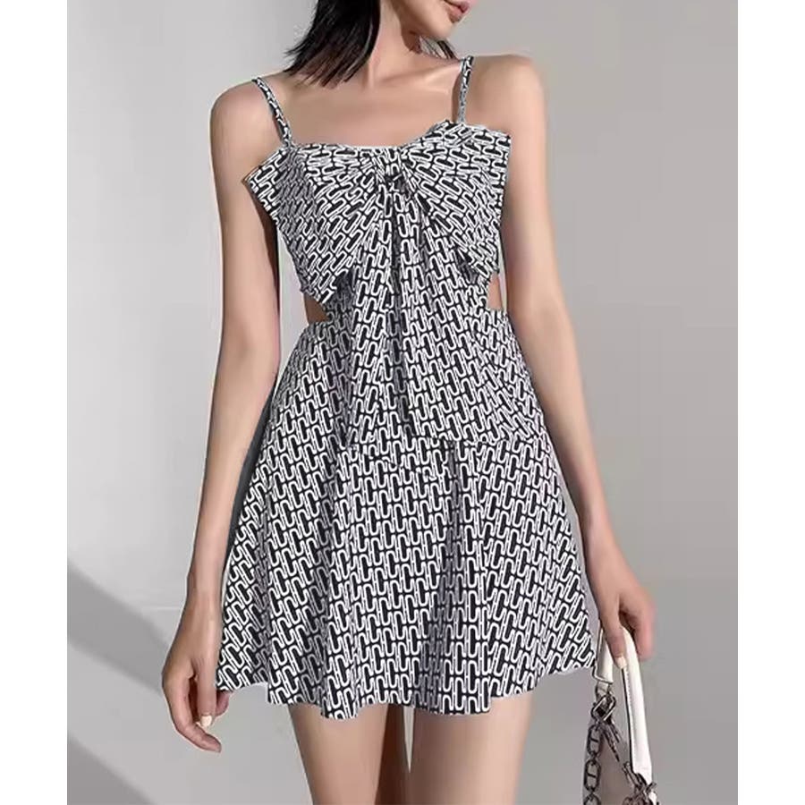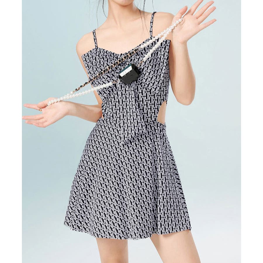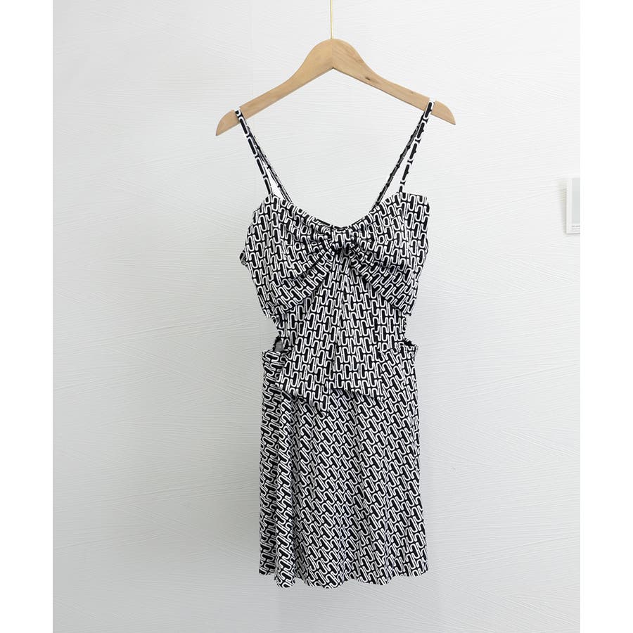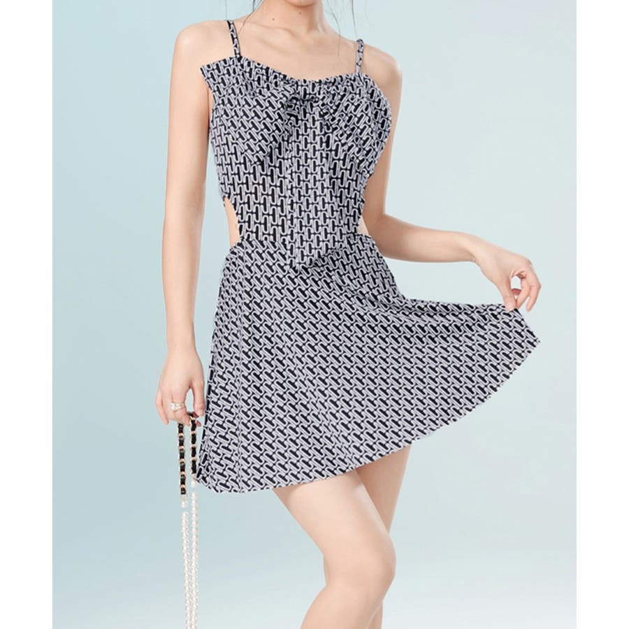 大人かわいい体型カバーとお洒落な肌チラ見せが特徴の総柄ワンピース水着
