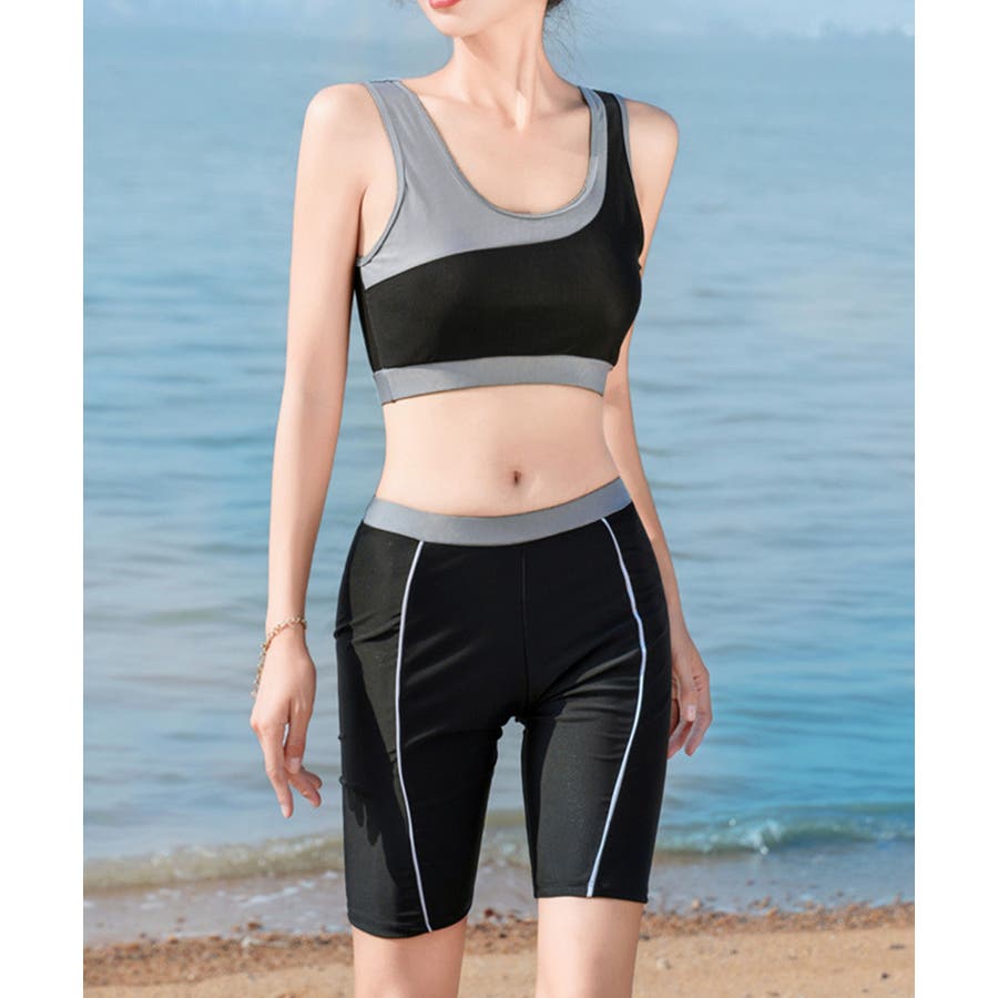 動きやすくて着心地が良いスポブラとショートパンツ、日焼け対策ワイドTシャツの3点水着セット