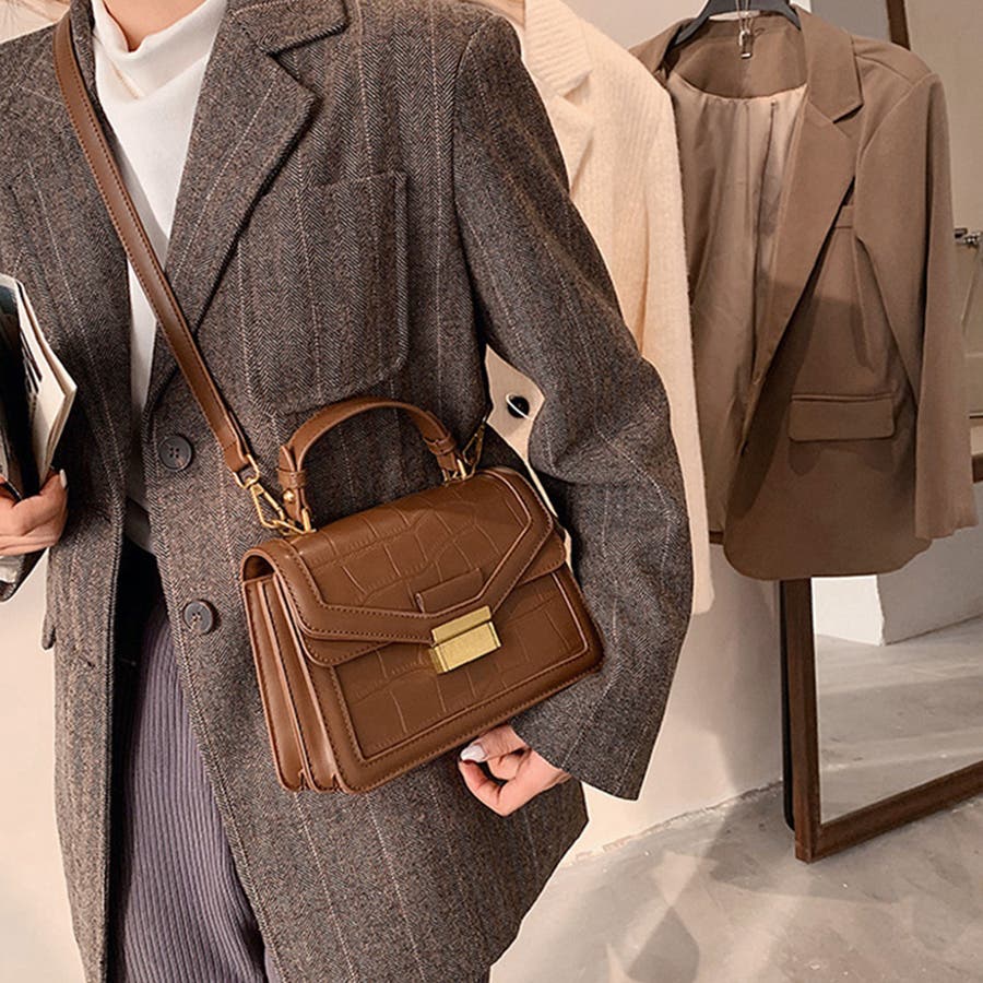 程よいツヤで高級感のある素材にクロコダイル模様の型押しDesignをプラス、プレーンでシンプルながらもほかとひと味違うレディースショルダーバッグ