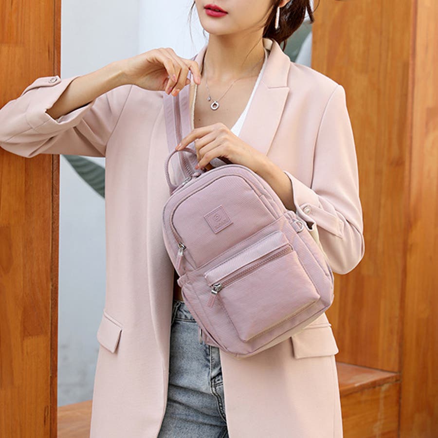 コンパクトサイズながらもポケットが多い上にマチ広なので見た目以上の収納力、通学通勤や普段のお出掛けなど、荷物の多いママさんのマザーズリュックとしてもおすすめ