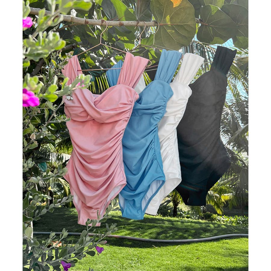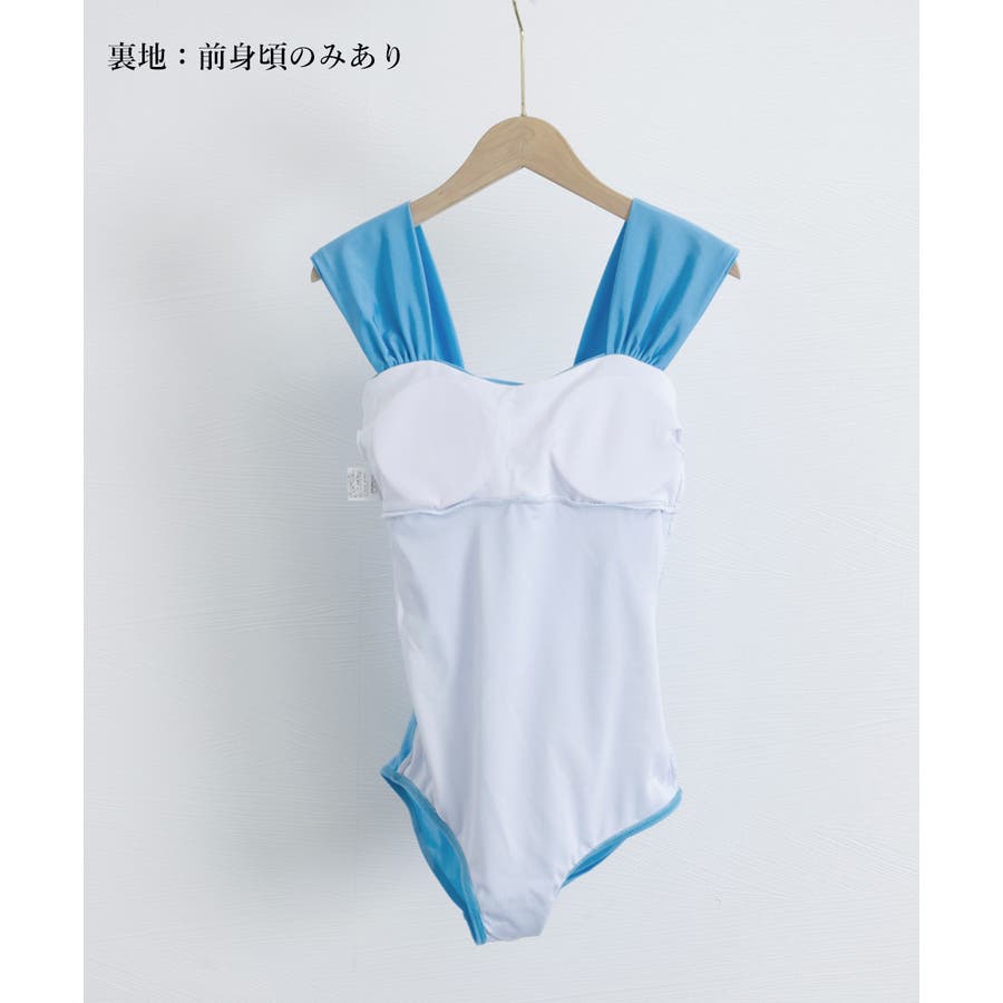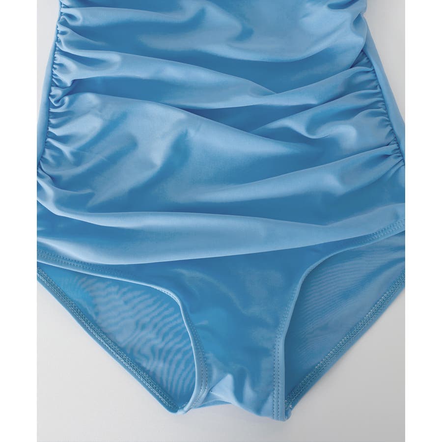 胸元のカシュクールデザインが胸元を美しく強調しつつ、女性らしい大人可愛い水着ワンピース