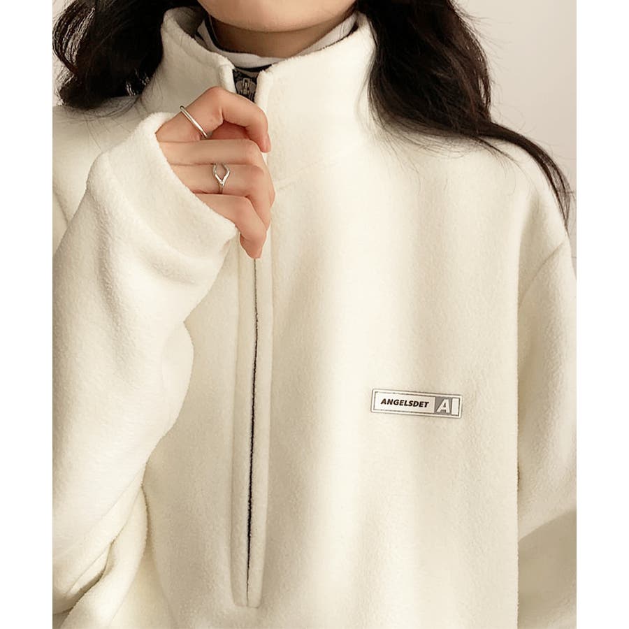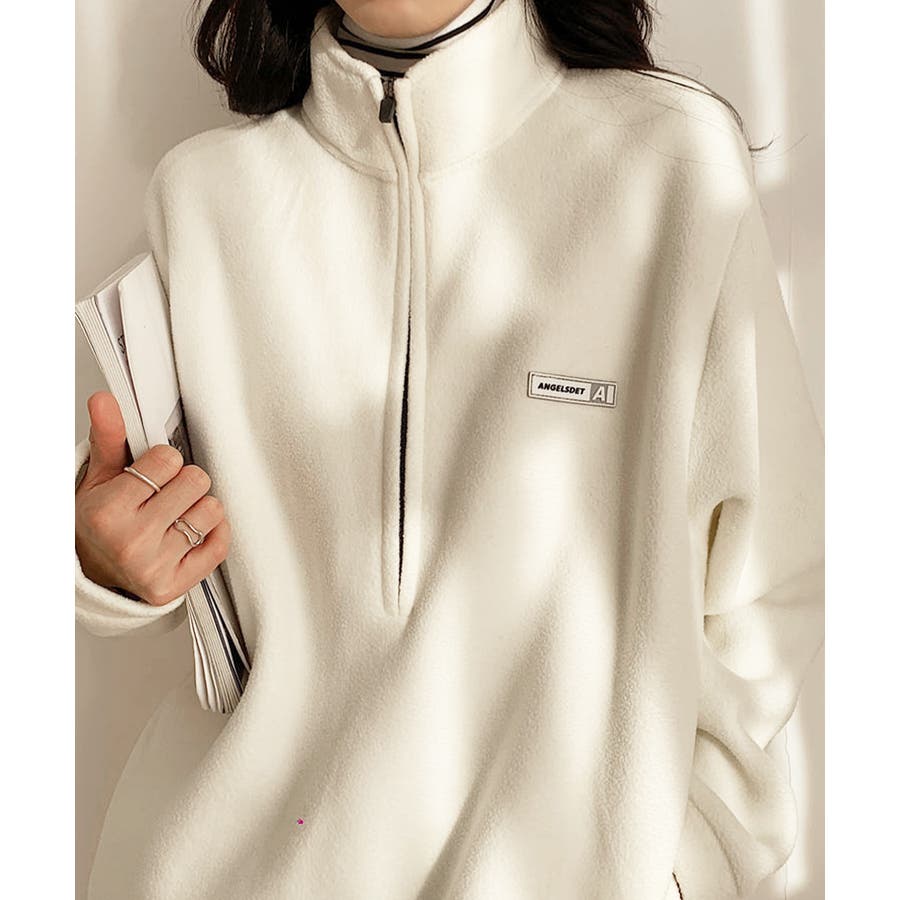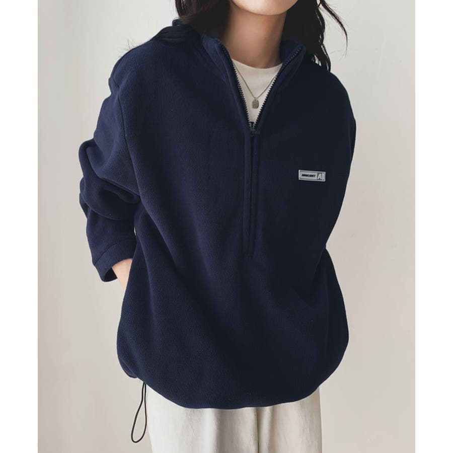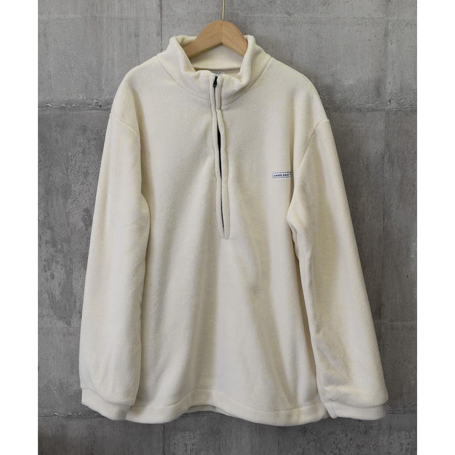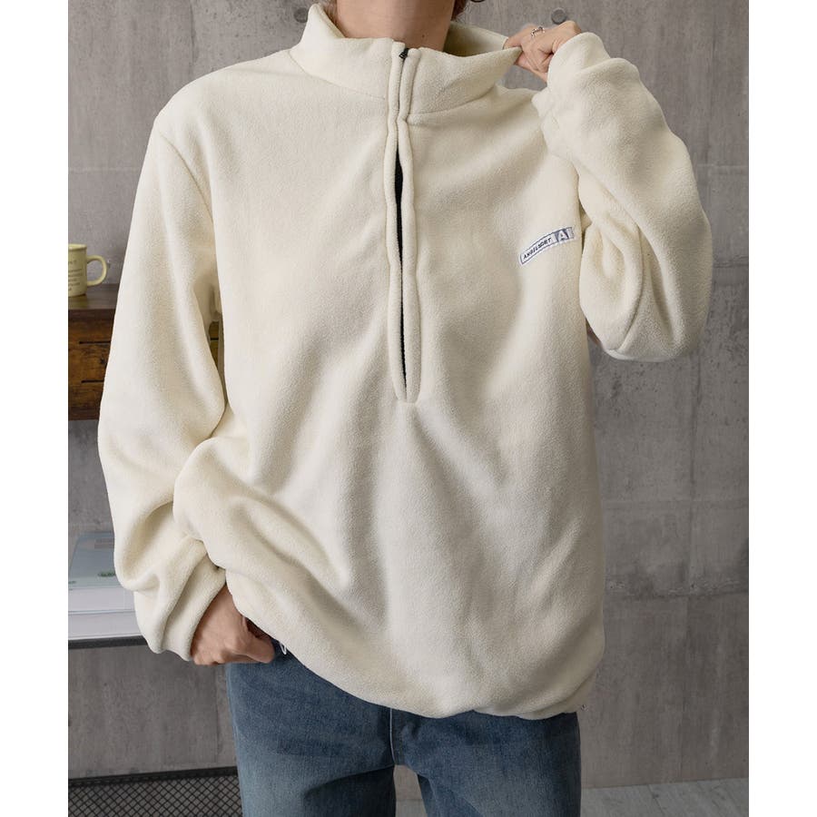柔らかい起毛フリース仕上げのハーフジッププルオーバー。