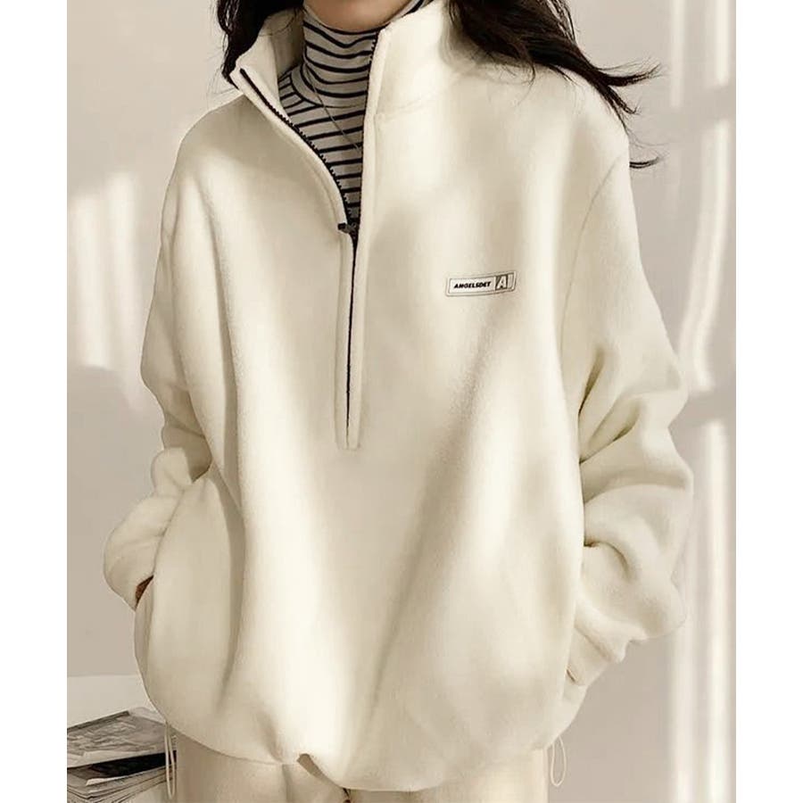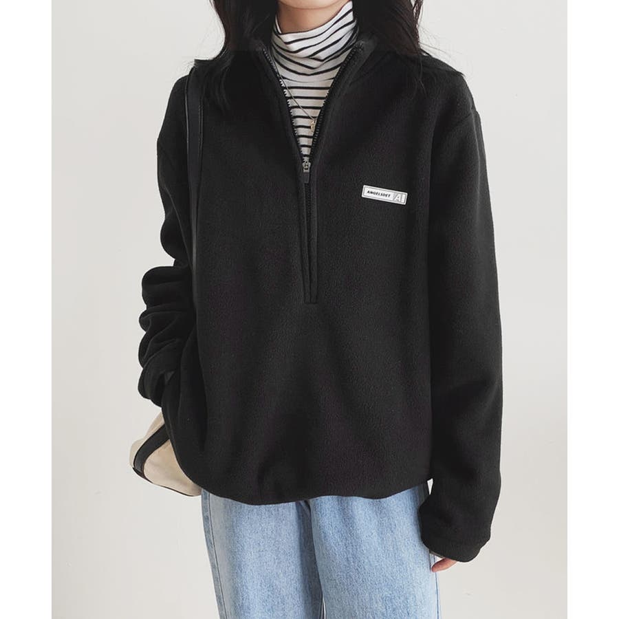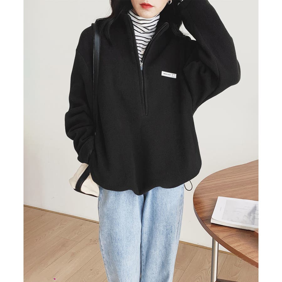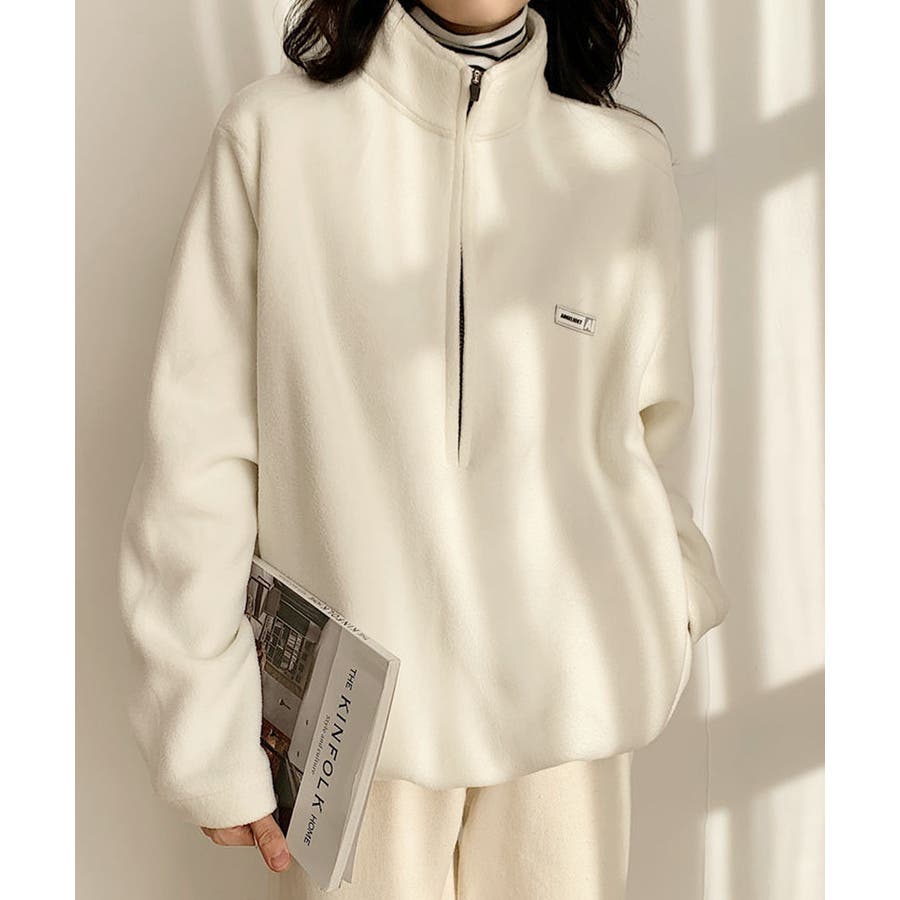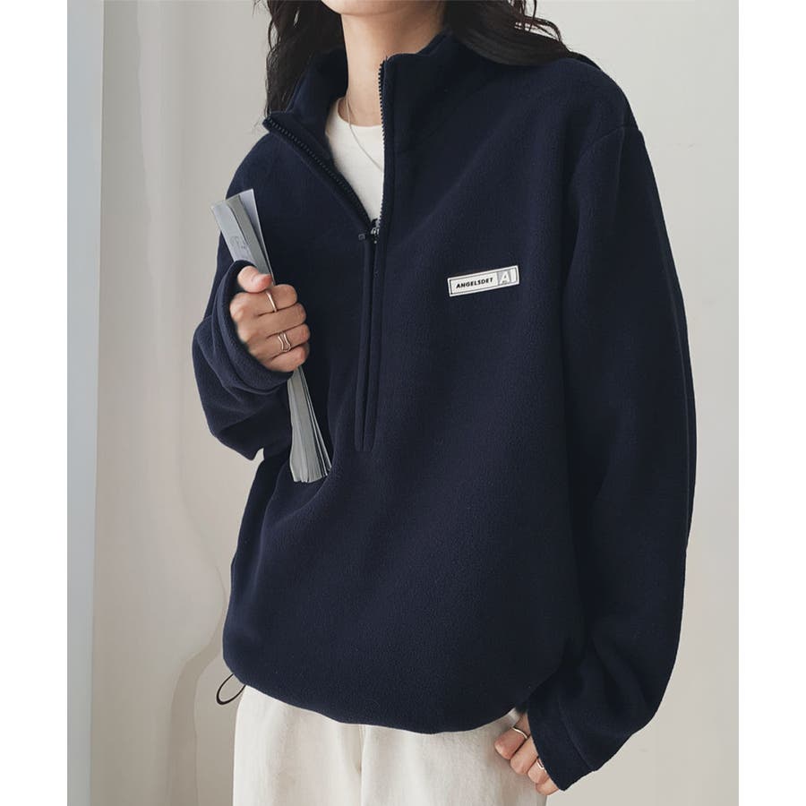 柔らかい起毛フリース仕上げのハーフジッププルオーバー。