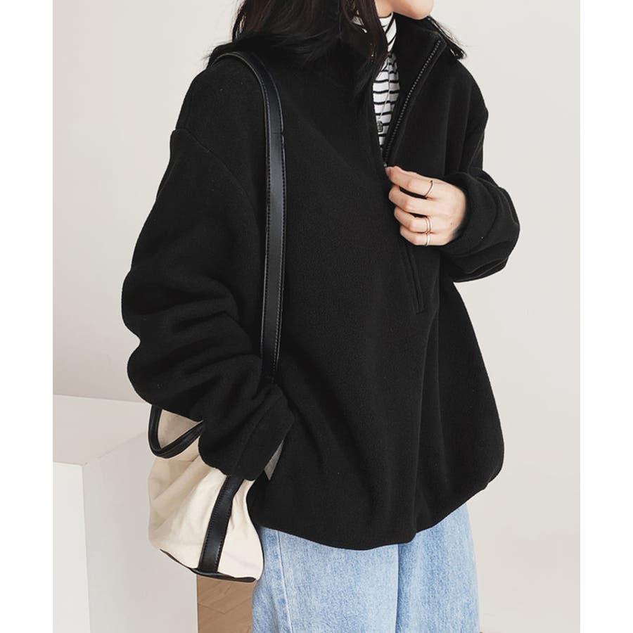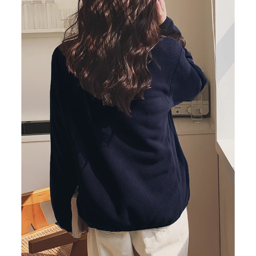 ライトな着心地で暖かいフリース生地で、寒い季節に活躍間違いなしのアイテム。