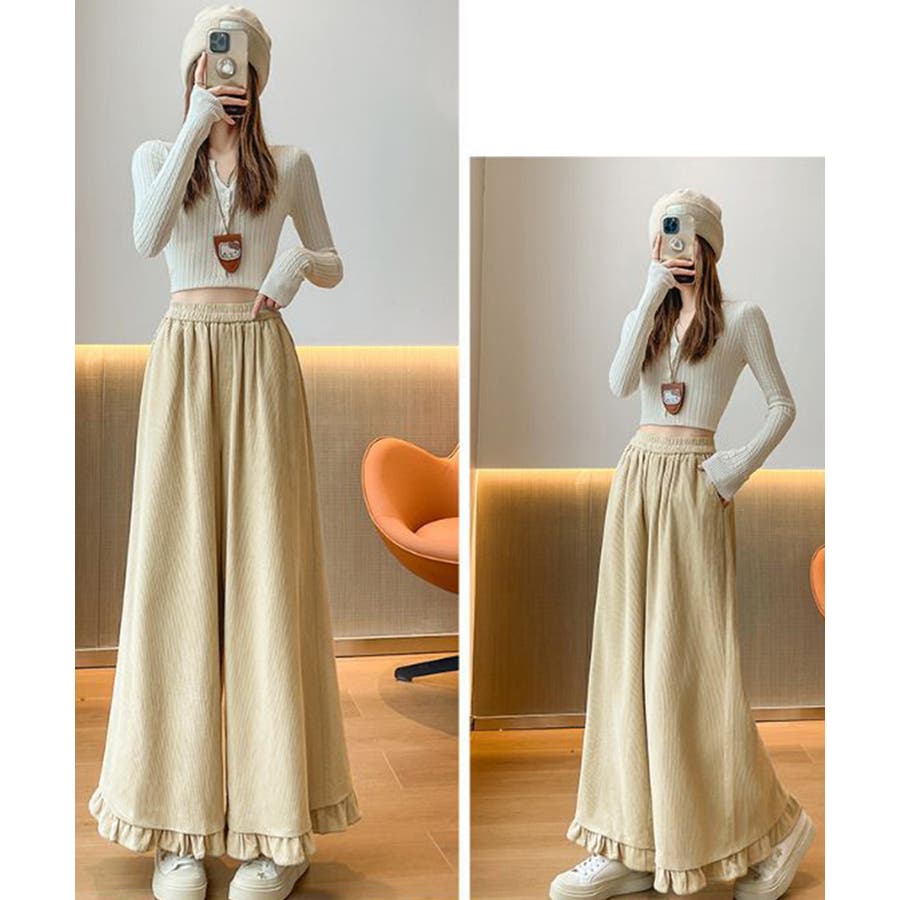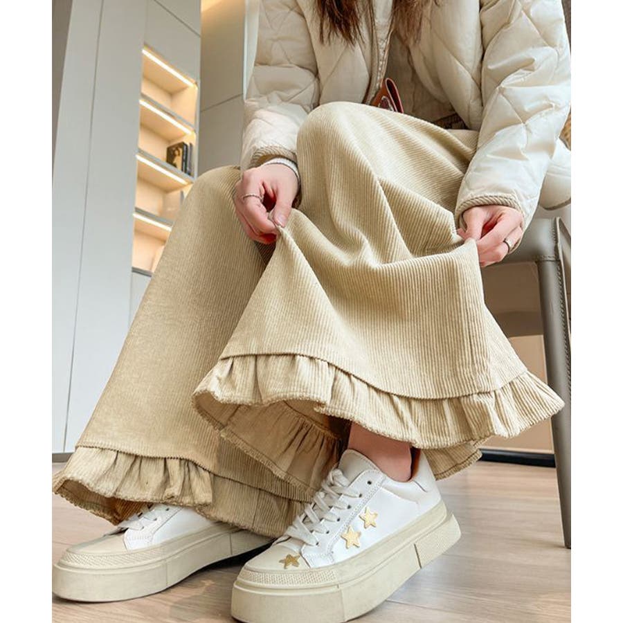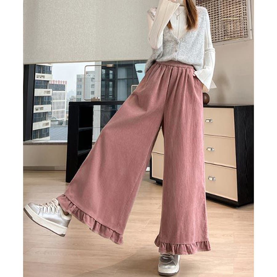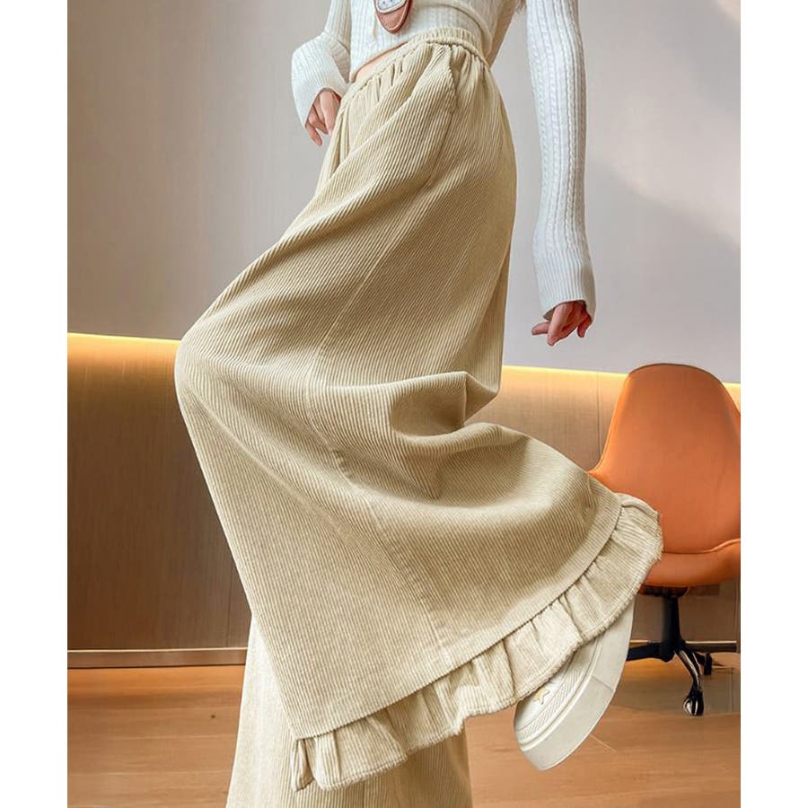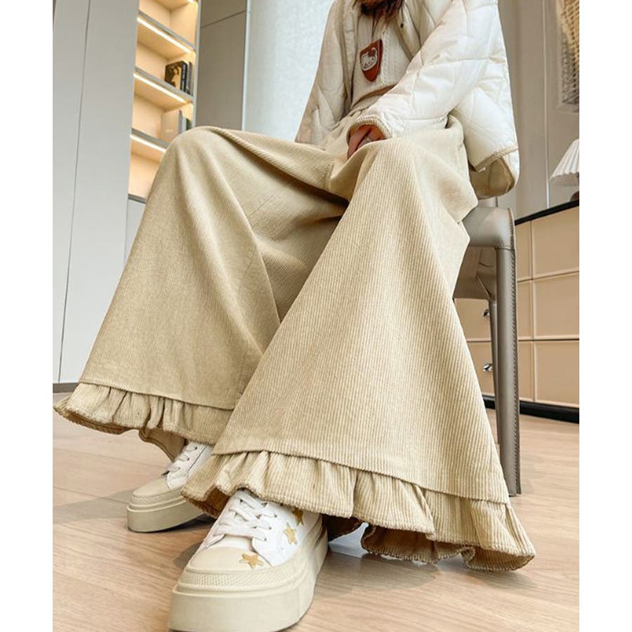 フリル裾ワイドパンツ コーデュロイパンツ