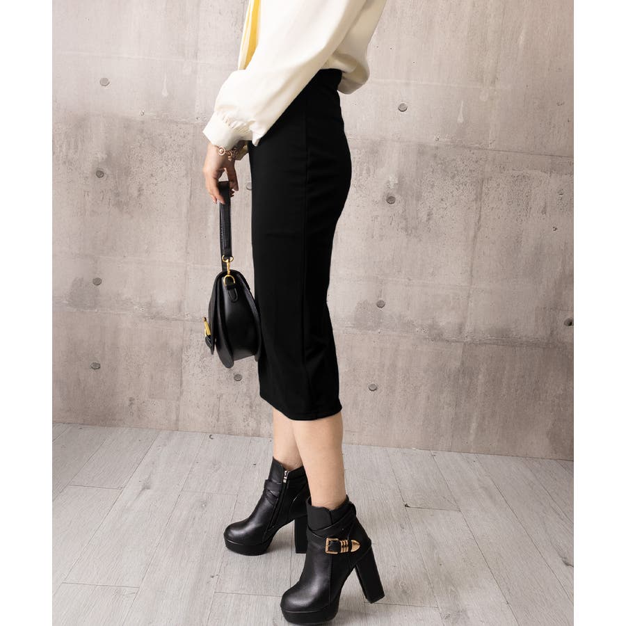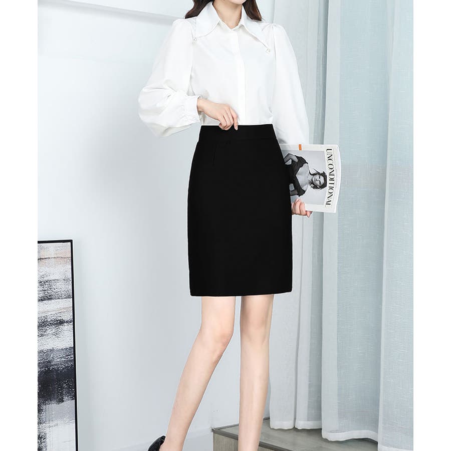通勤スタイルに活躍する、ハイウエストデザインのレディースタイトスカート。