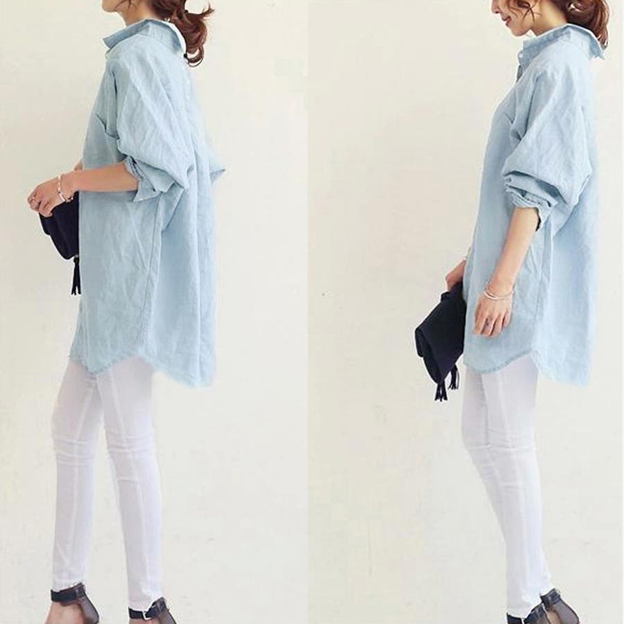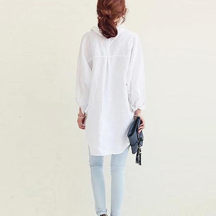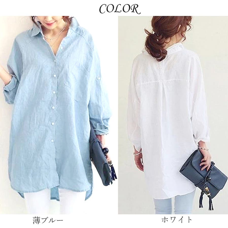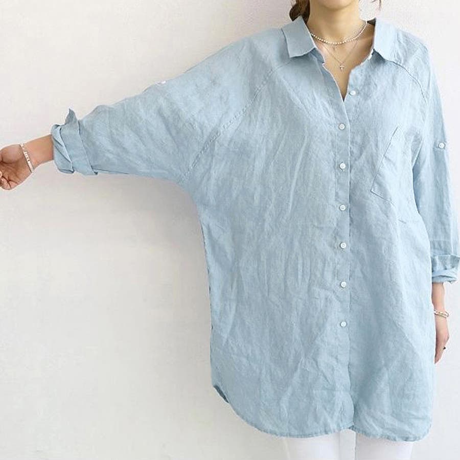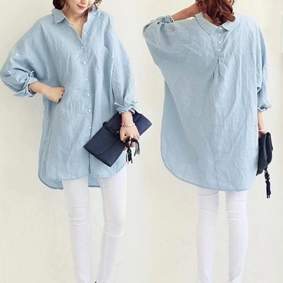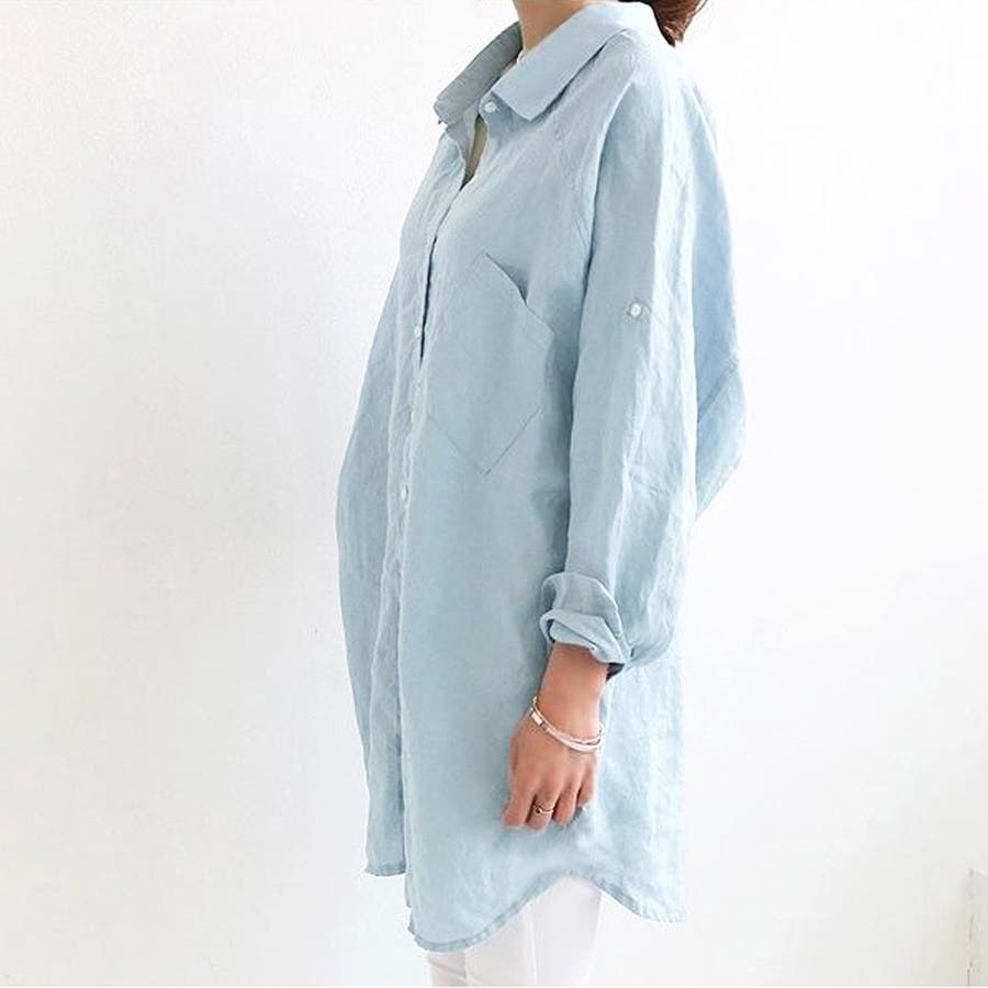 レディース 体型カバー 薄手 綿麻風ブラウス ゆったり 長袖シャツ カジュアル トップス 無地 羽織り通勤 30代