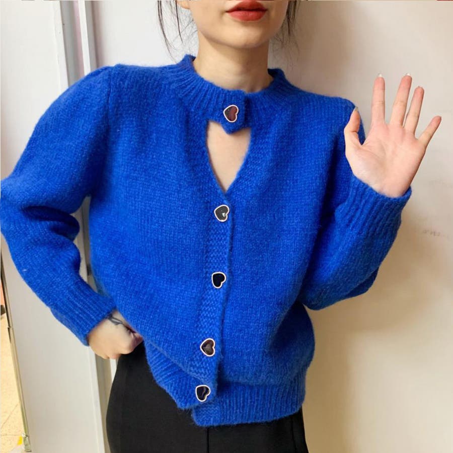 ニットカットソー ニットウエア暖かい 秋服 ハートボタン