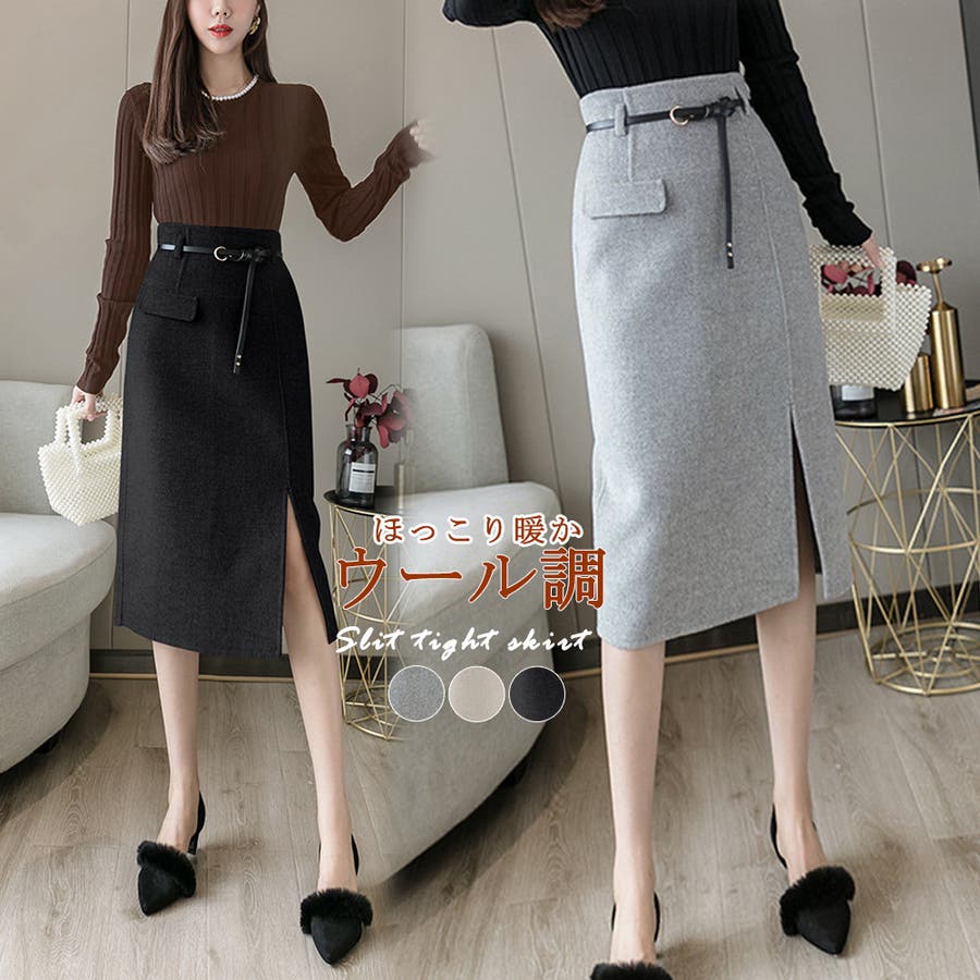 ウールライク タイトスカート 韓国 秋冬