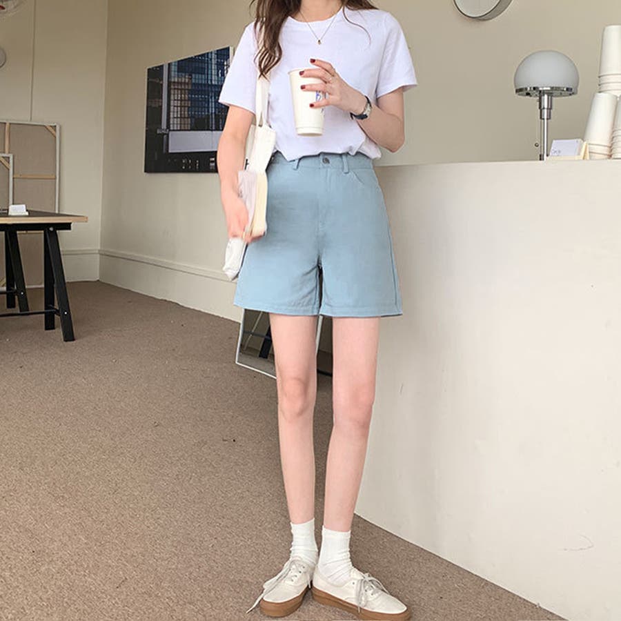 ミニ丈パンツ細見え お洒落 大人可愛い ワイドショーパン