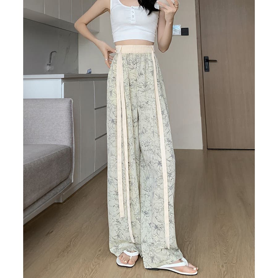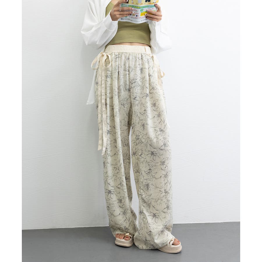 ボトムス春夏軽やか 薄手パンツ 涼しげ 楽チンパンツ 花柄