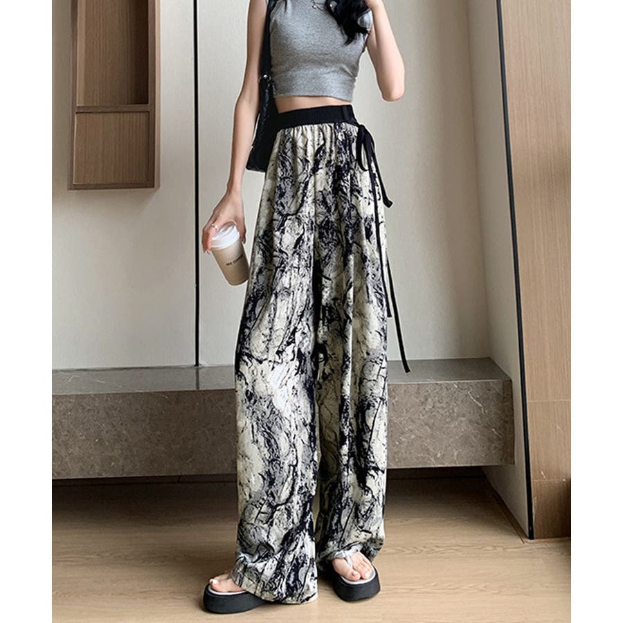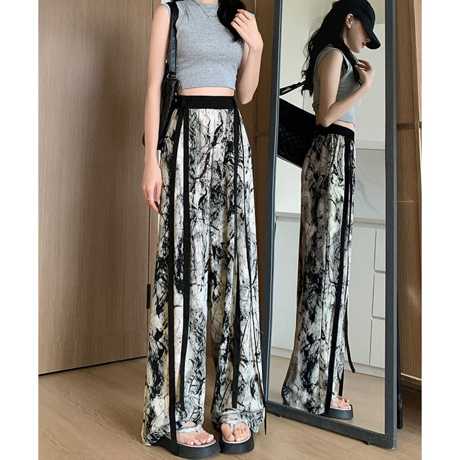すらりとしたシルエットで脚を長く見せてくれる総柄ワイドパンツ