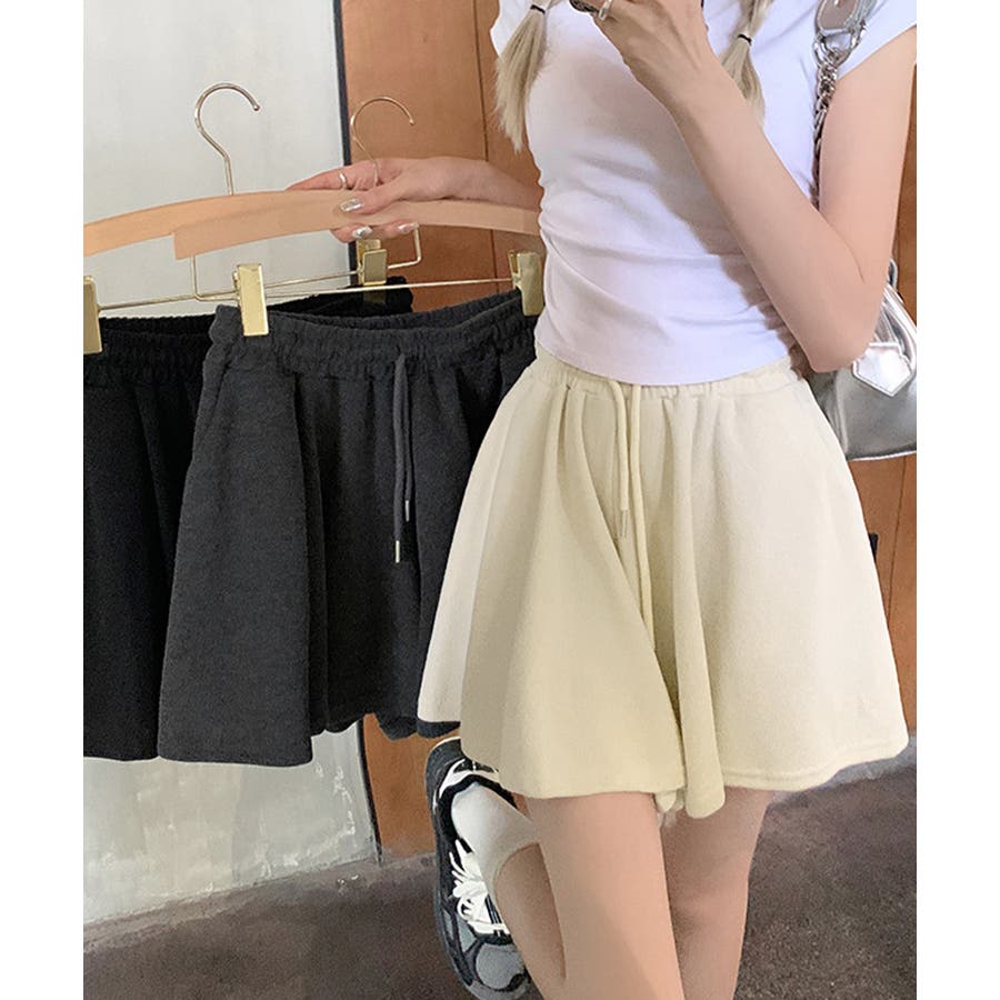 ハイウエストデザインで、ショート丈のトップスとも相性が抜群