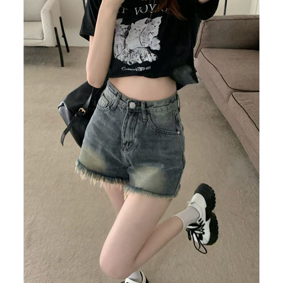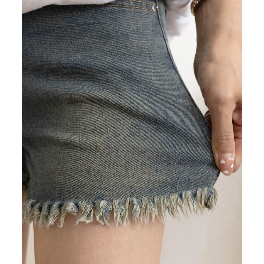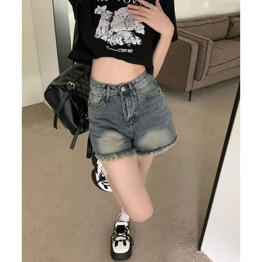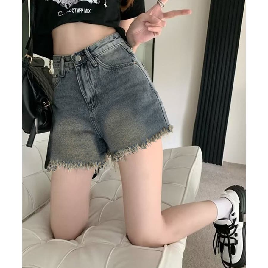 裾フリンジデニムショーパン 美脚脚長ジーパン おしゃれ アメカジホットパンツ細見え美尻ジーンズ レトロ短パン オルチャン