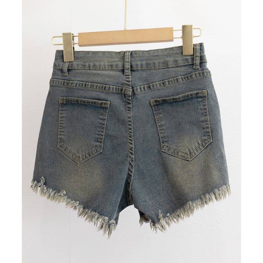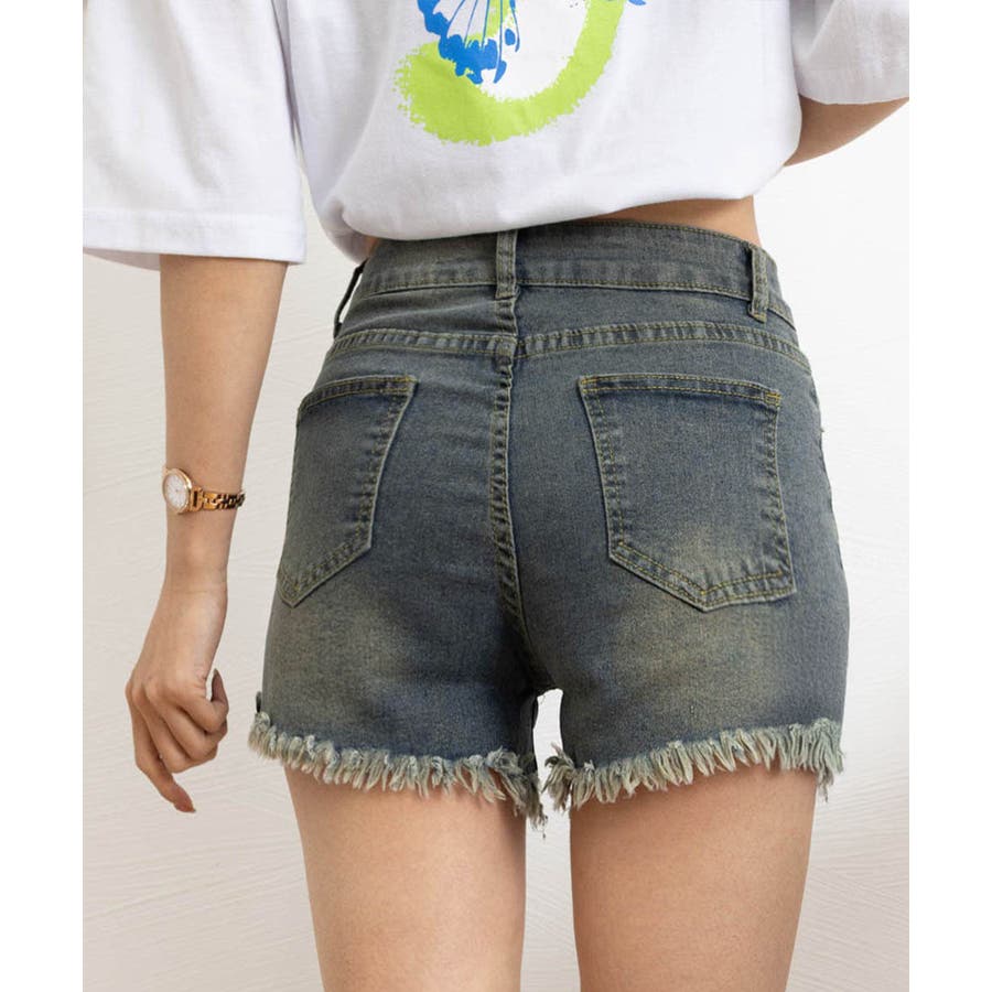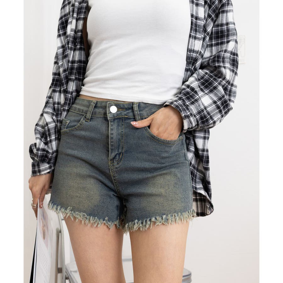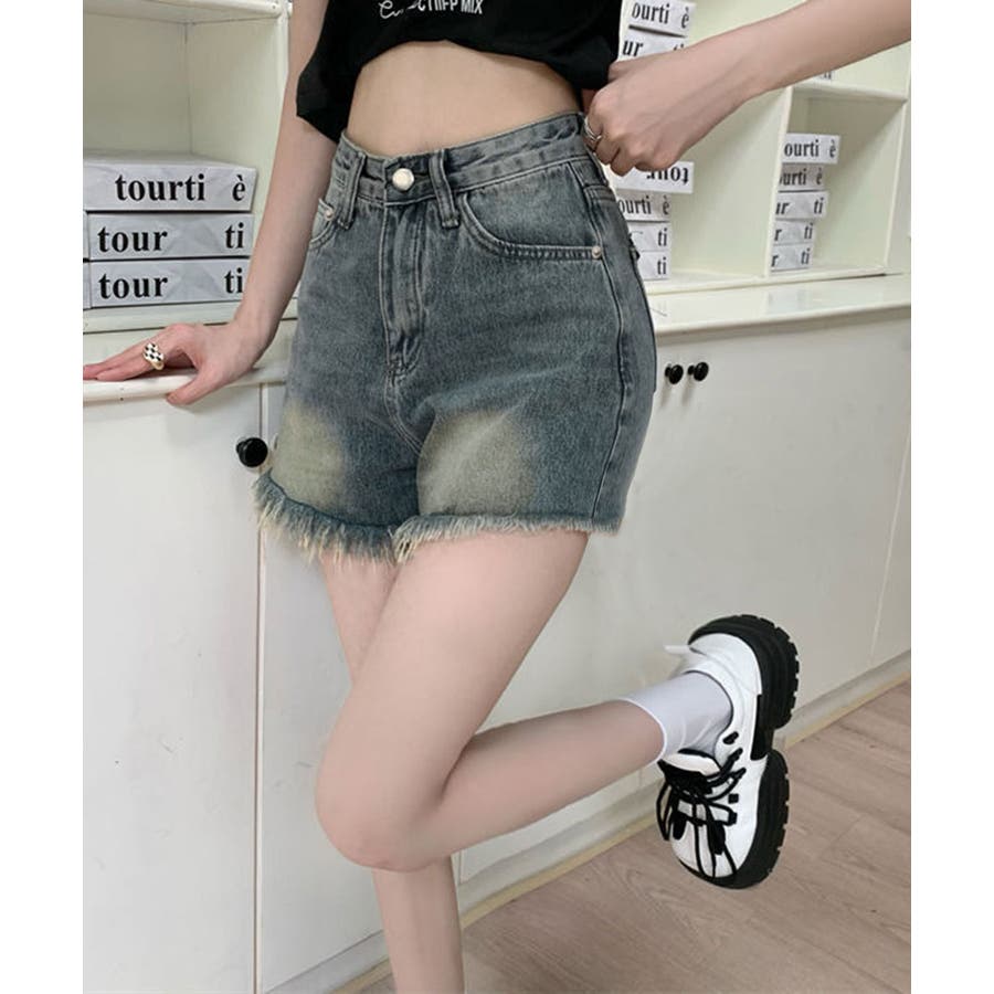 裾フリンジデニムショーパン 美脚脚長ジーパン おしゃれ アメカジホットパンツ細見え美尻ジーンズ レトロ短パン オルチャン