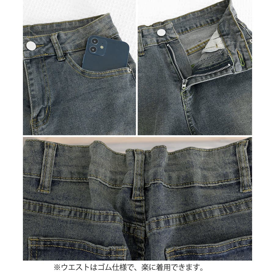 ハイウエストデザインで、脚を長く細く見せてくれるショート丈デニムパンツ