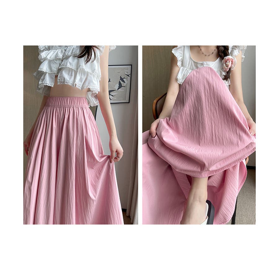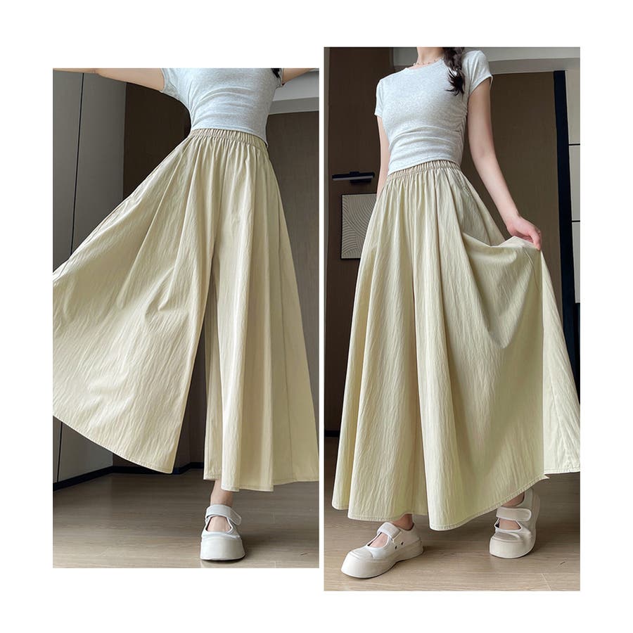 スカーチョゆったり 体型カバーボトムス Aラインパンツ無地