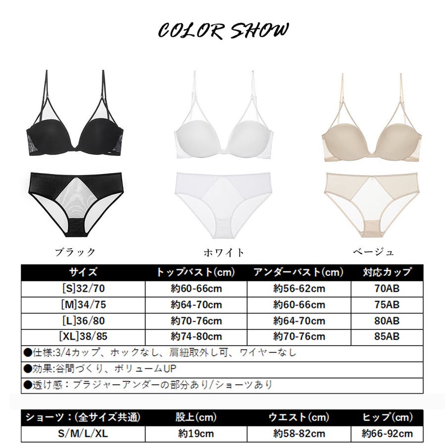 快適ブラ かわいい 寄せ上げ下着セット 谷間ブラシースルー