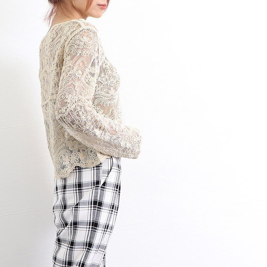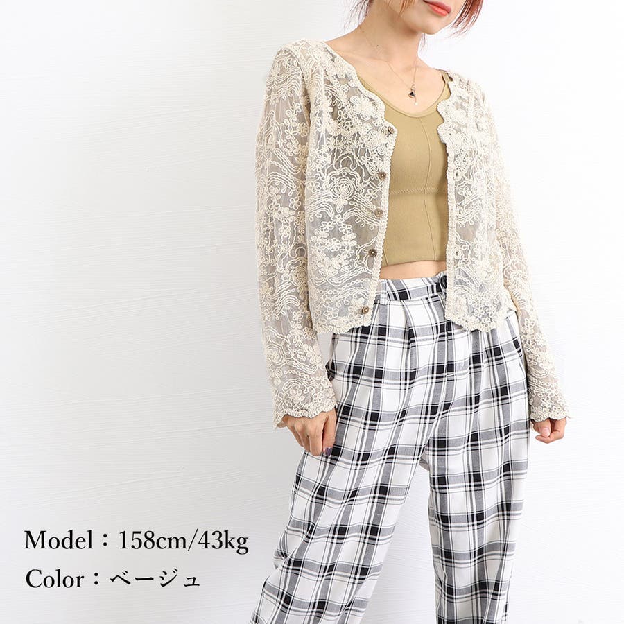 凹凸感と透け感が可愛いレース素材でナチュラルな雰囲気たっぷりな1枚。